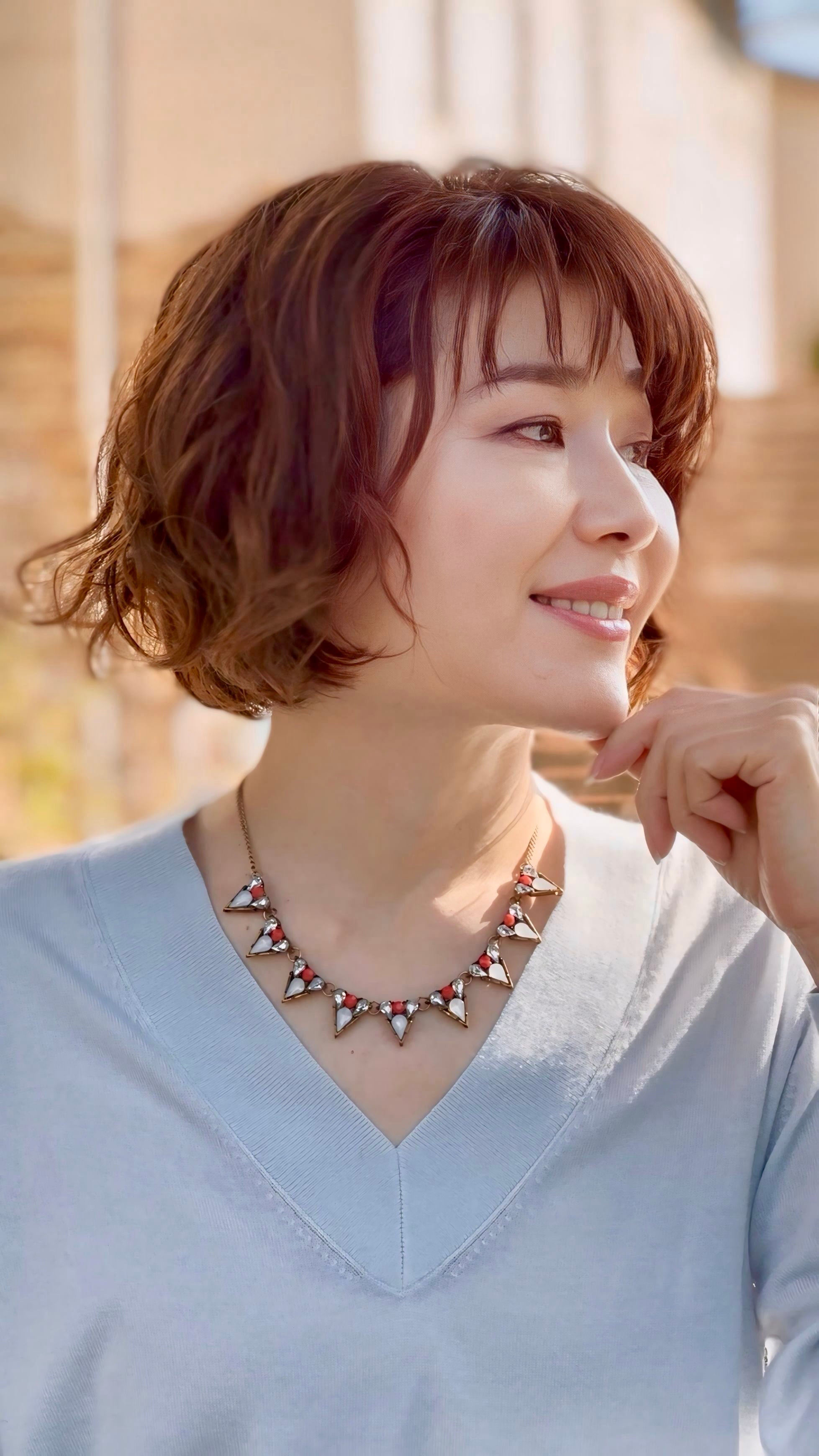華やかさはしっかりありながら、品よくまとまるのがこのネックレスの魅力です。