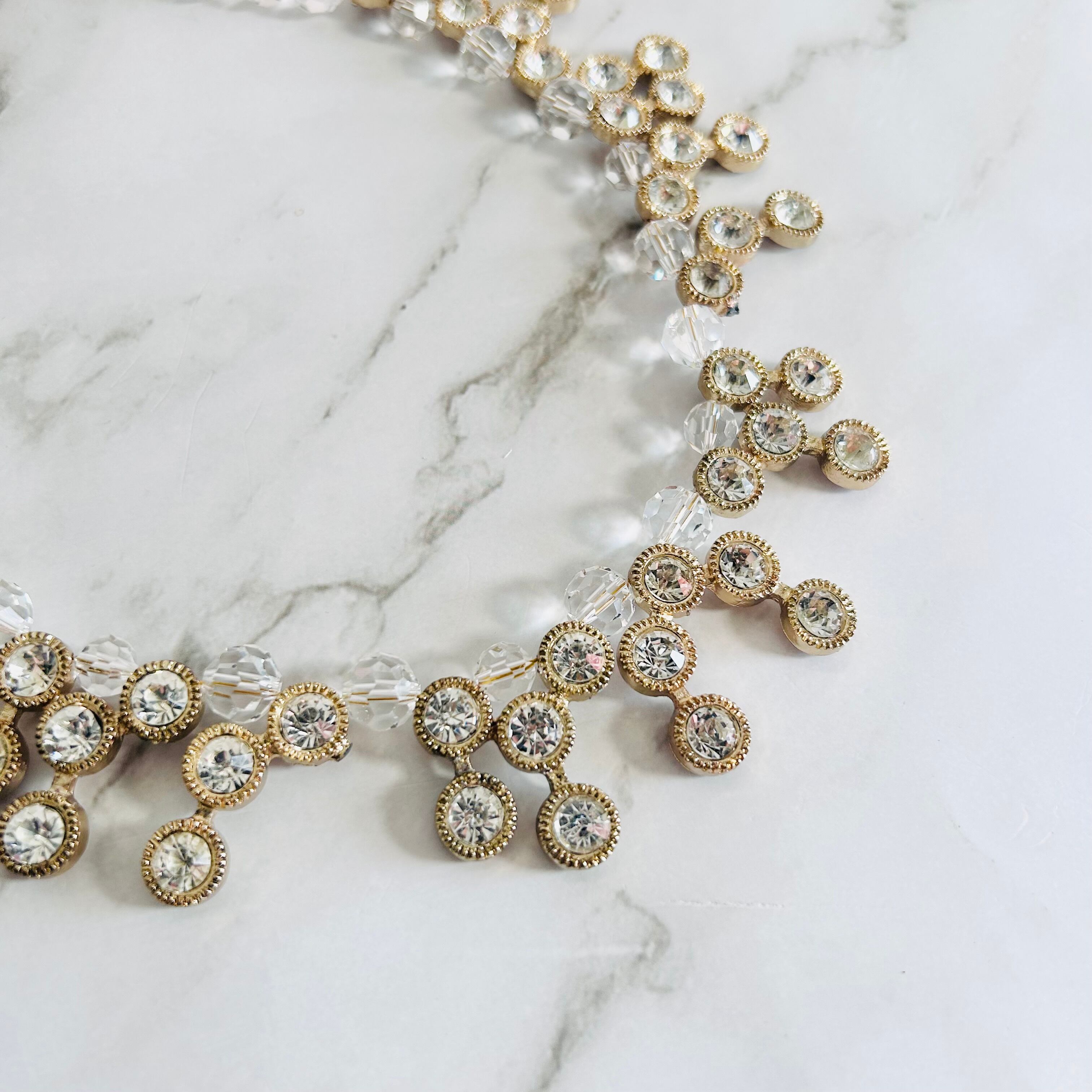 透明感あふれるクリスタルビーズと、繊細なビジューを組み合わせた華やかなネックレスです。