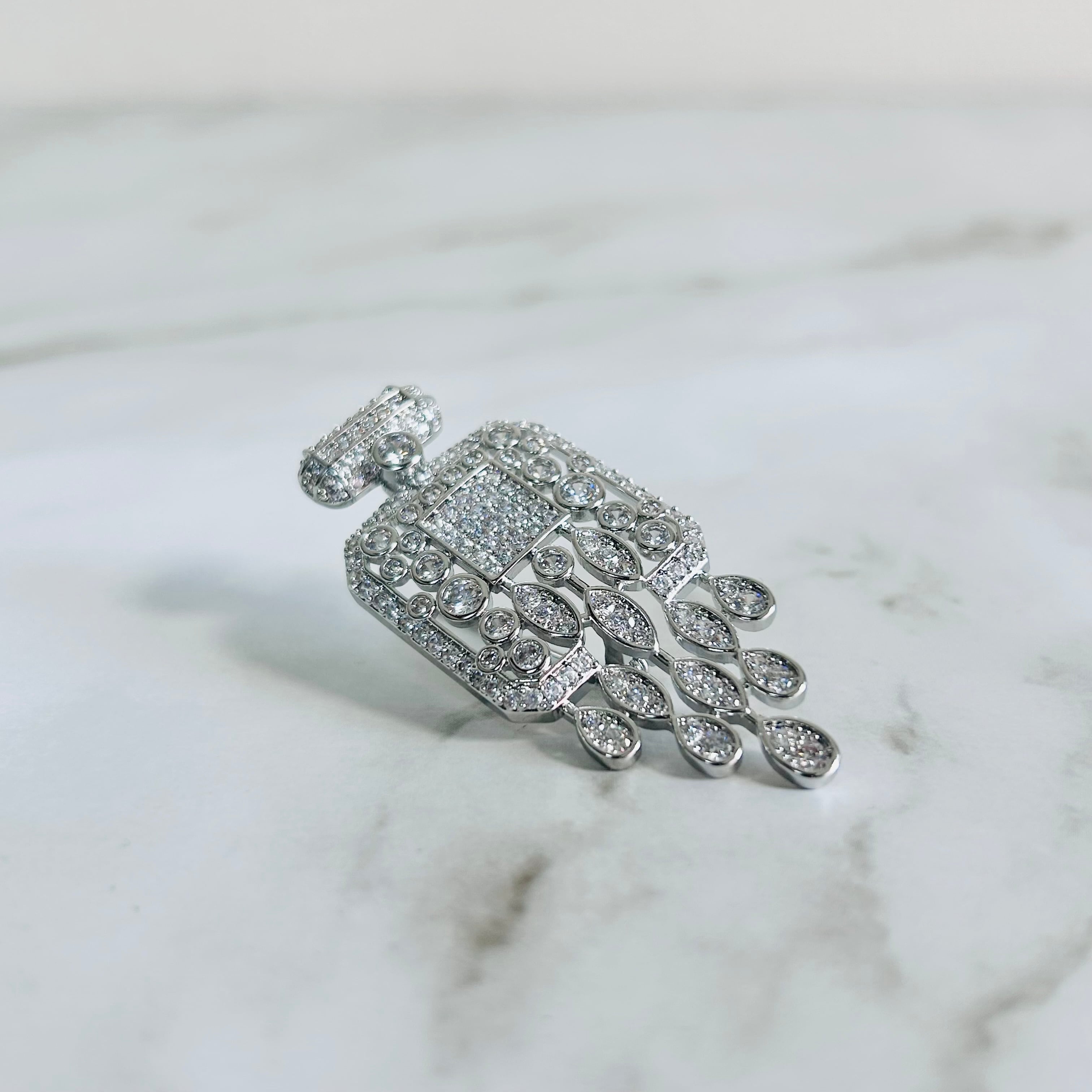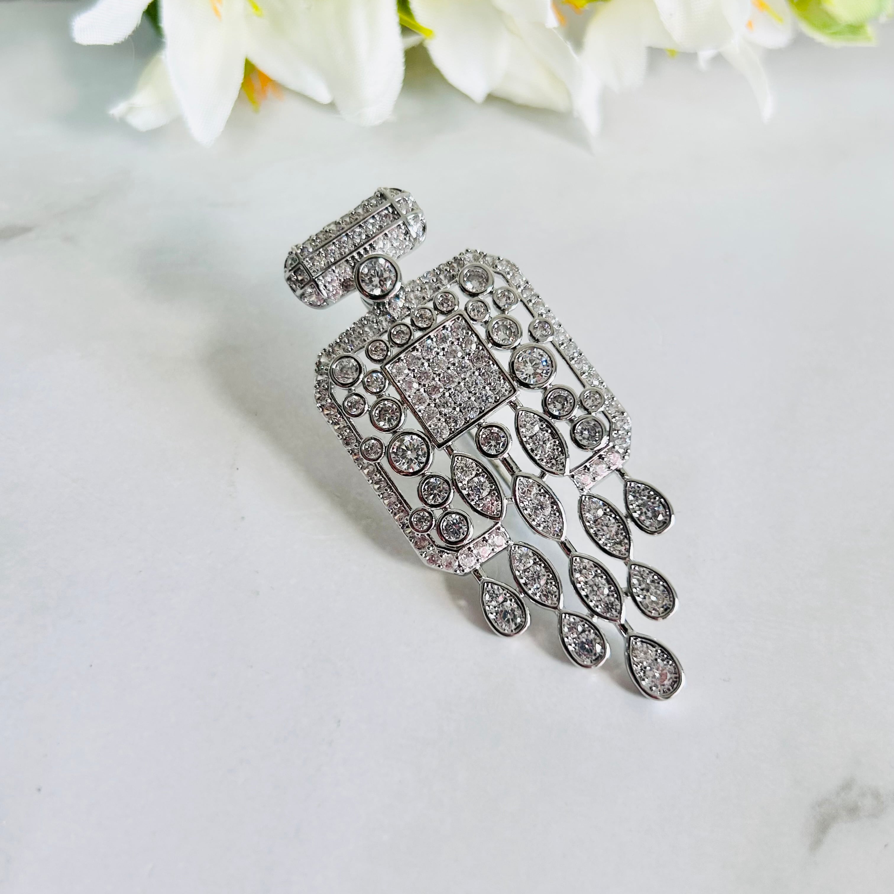 シルバーカラーの繊細なフレームに、大小さまざまなビジューを贅沢にあしらった、気品漂うブローチです。