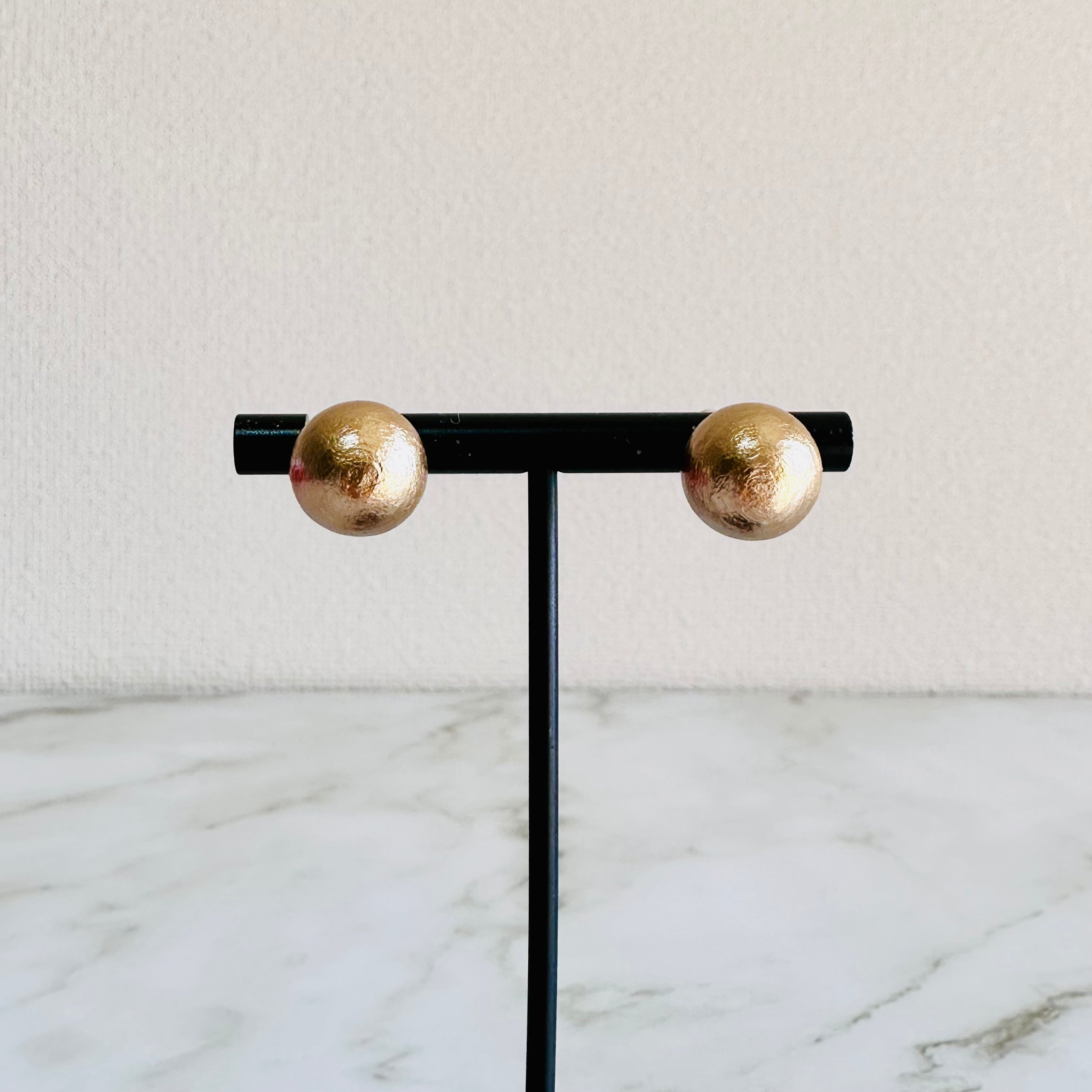 やわらかな光沢を持つブロンズカラーのコットンパールを使用した、上品なピアス/イヤリングです。