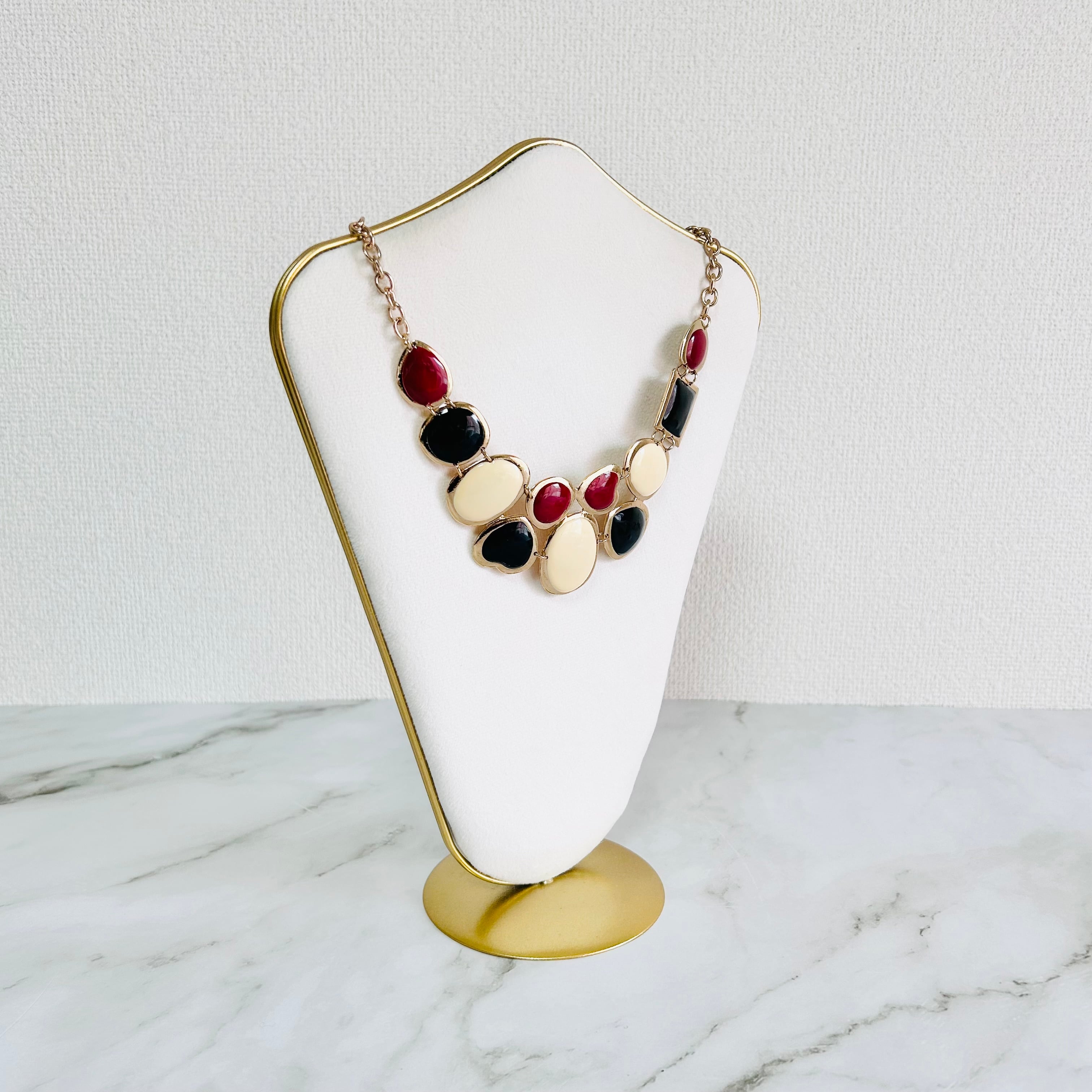 美しい色のコントラストが際立つ、大人の装いを引き立てるネックレスです。