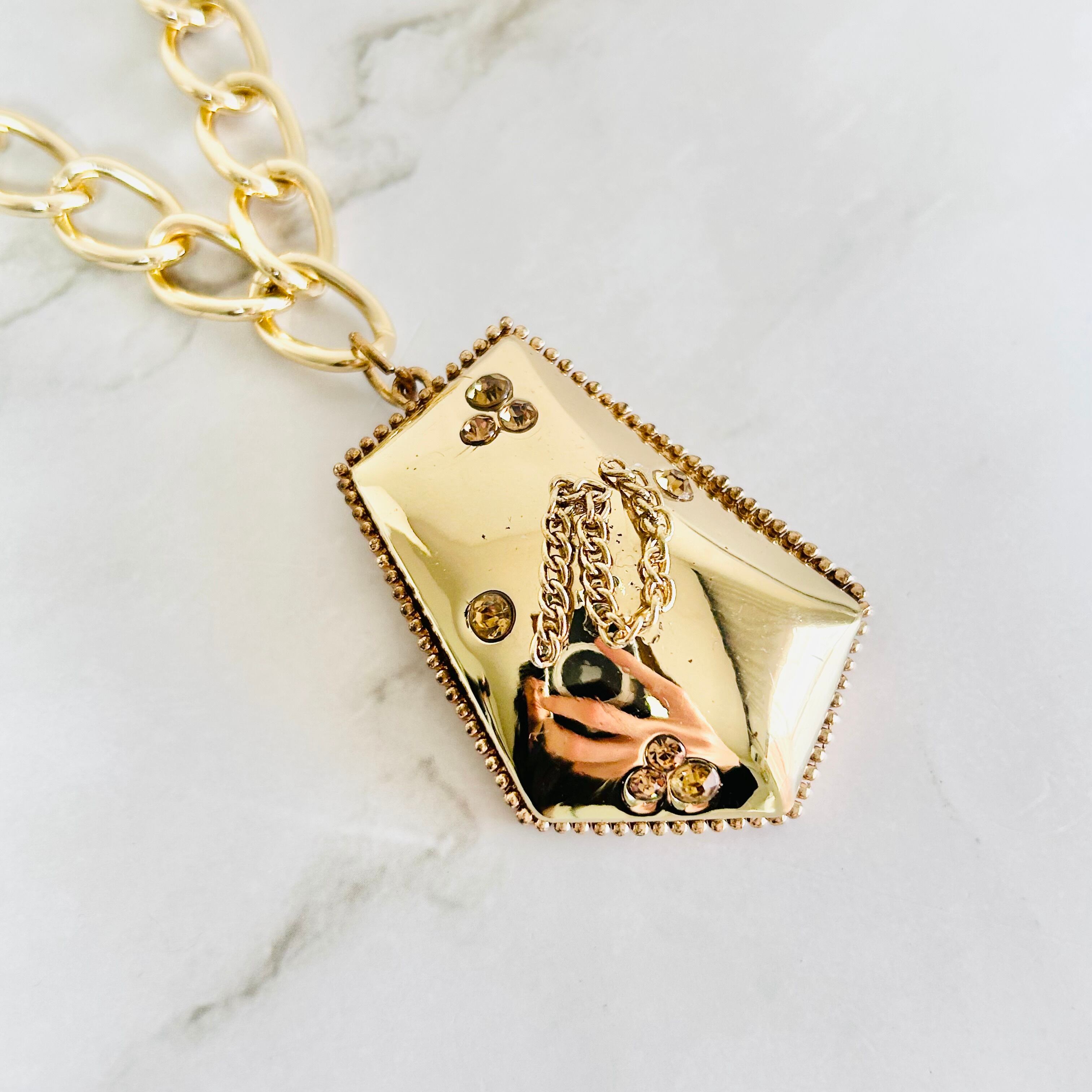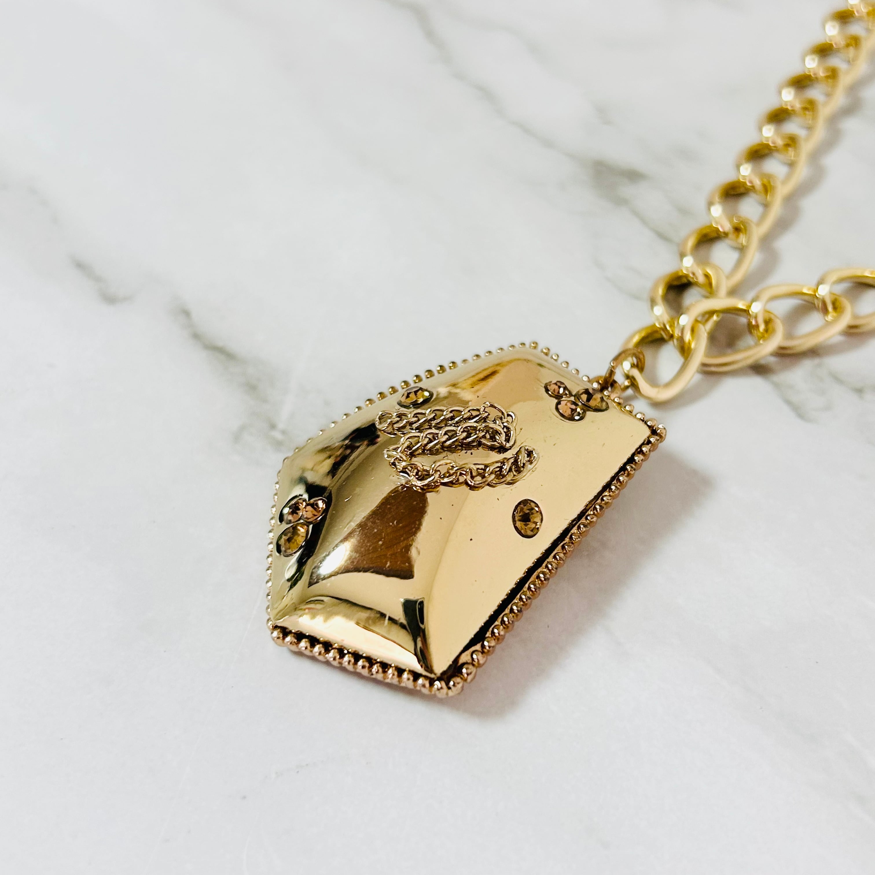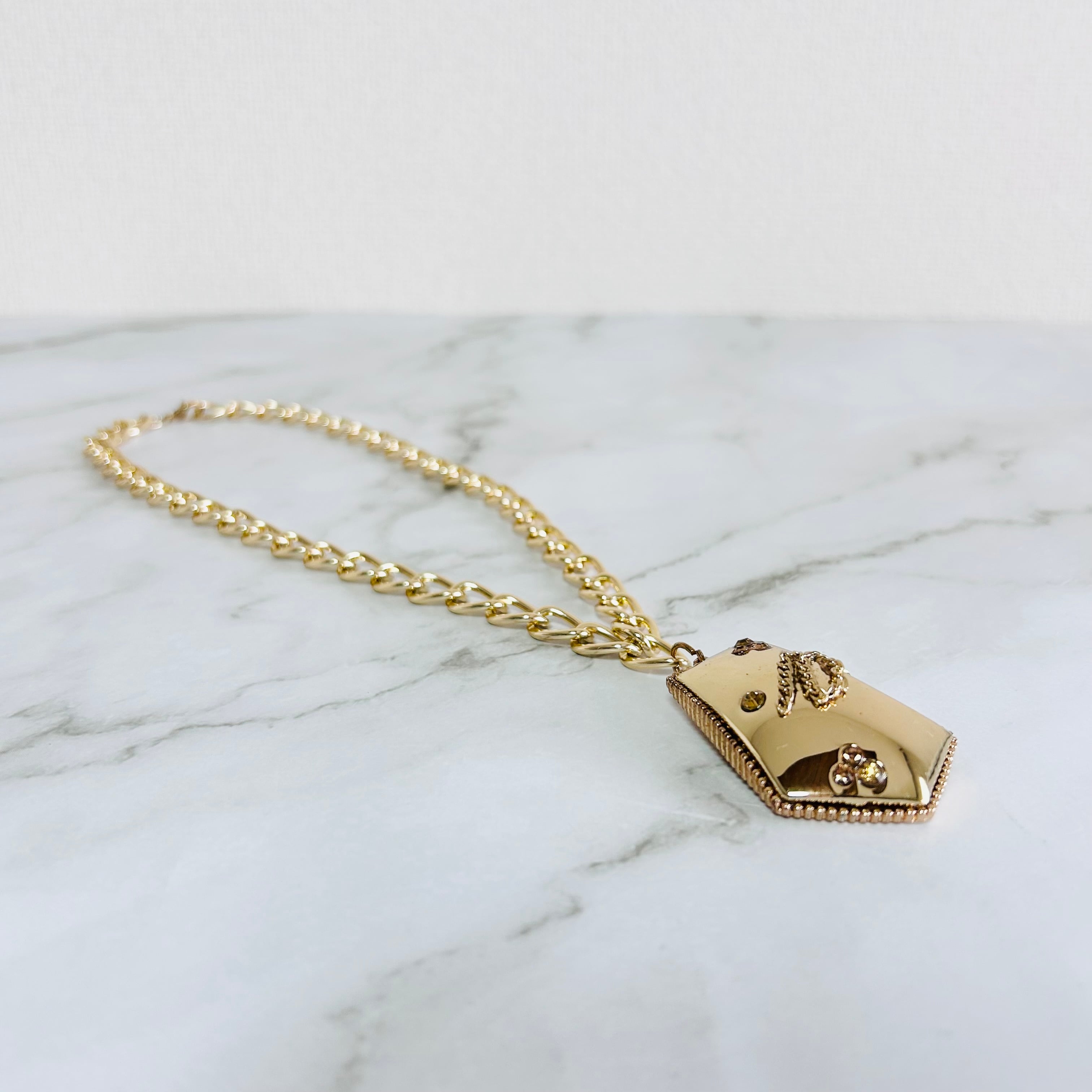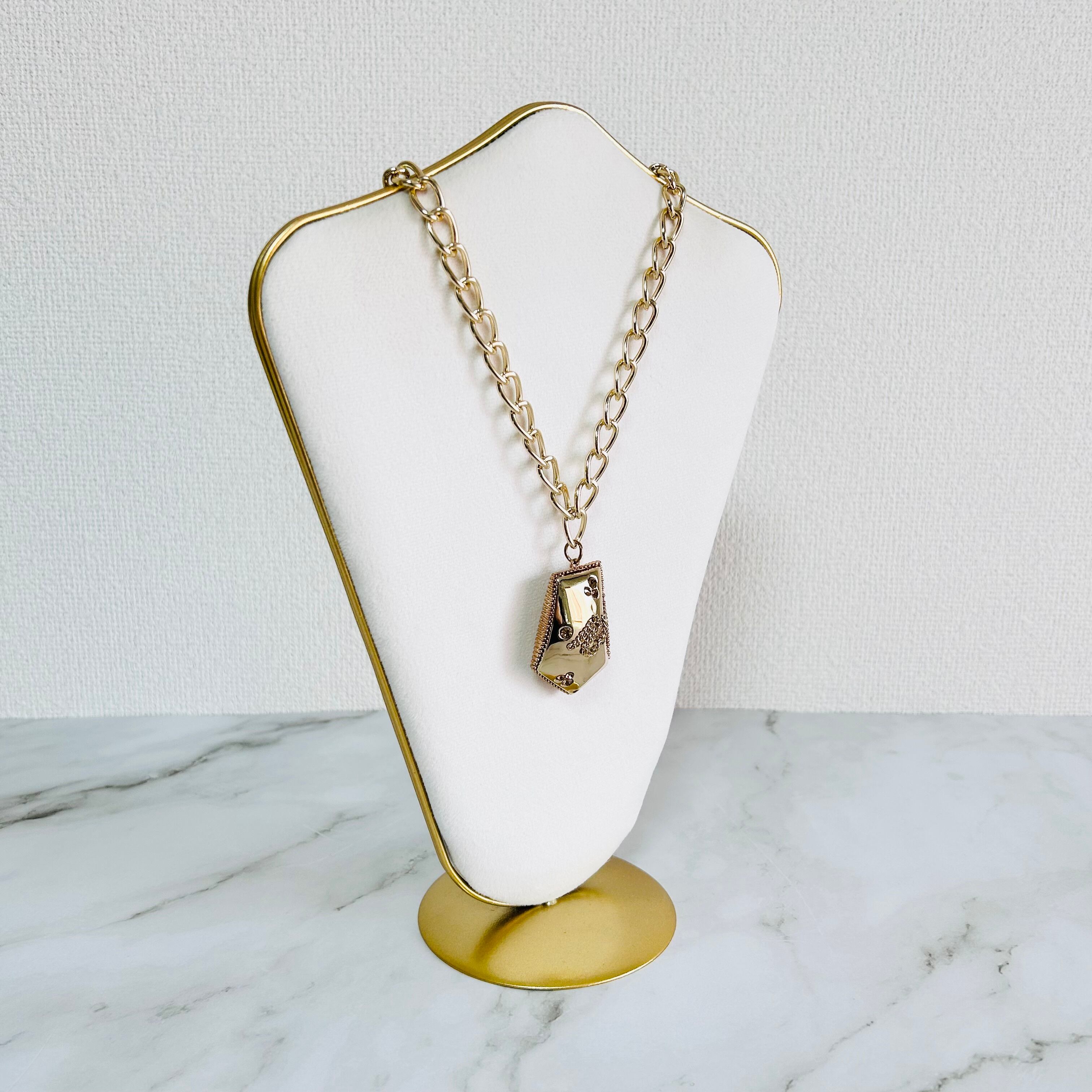 存在感のあるチェーンに、印象的なモチーフが輝くネックレス。