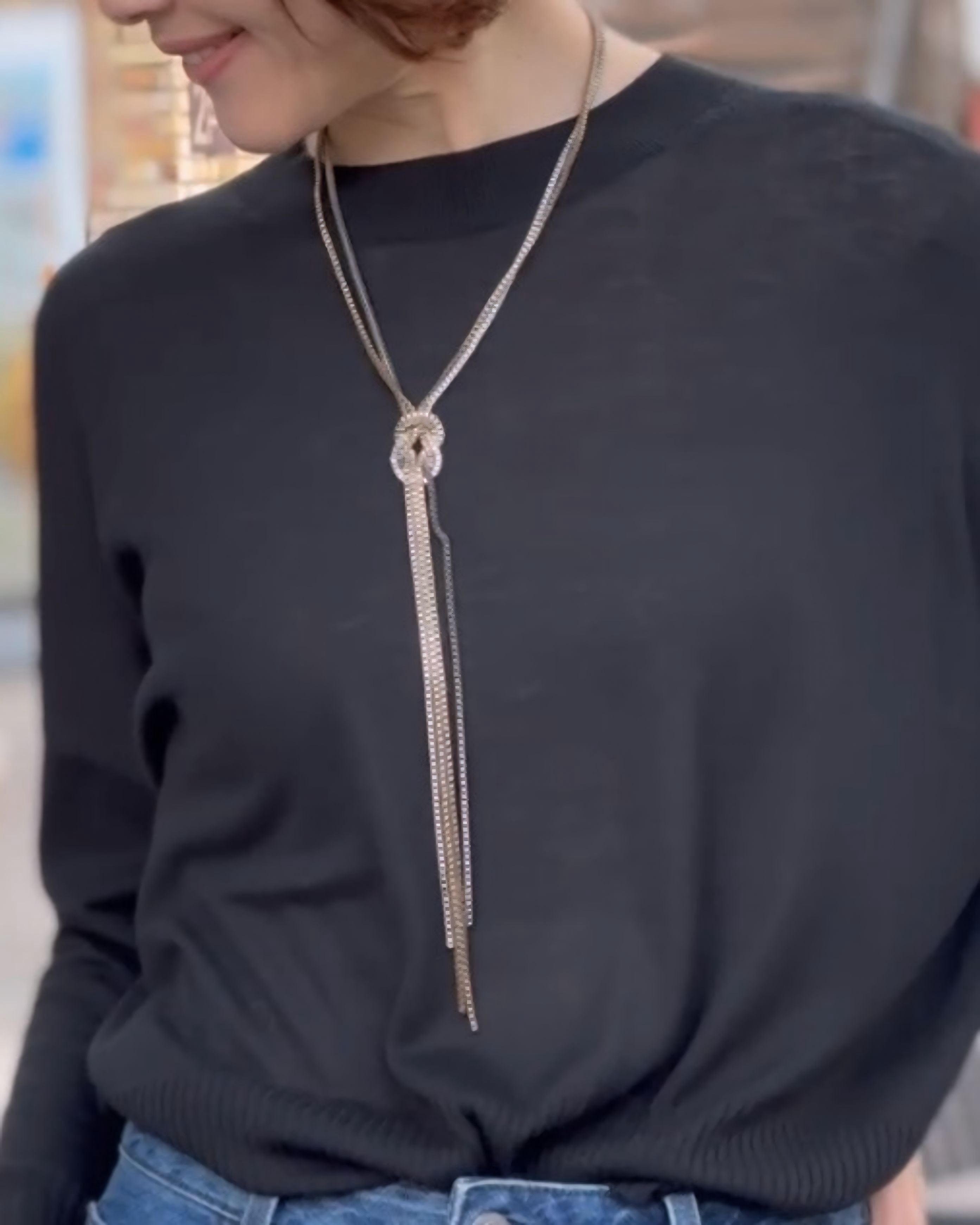 繊細なチェーンが幾重にも重なり、優雅に揺れるラリエットネックレス。