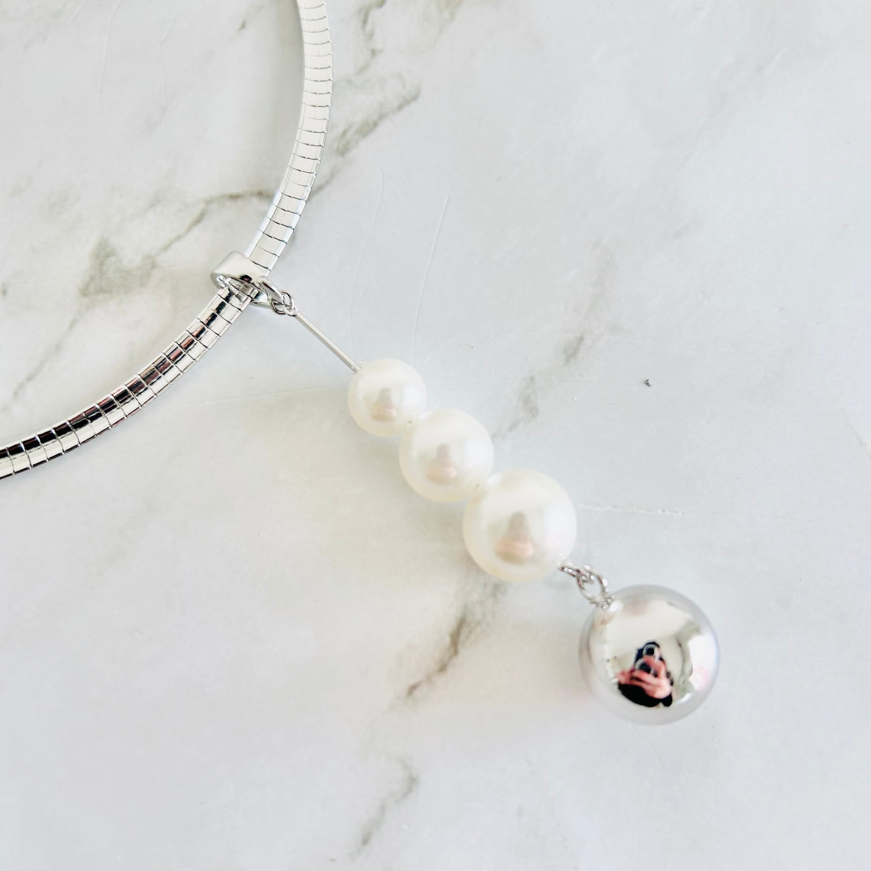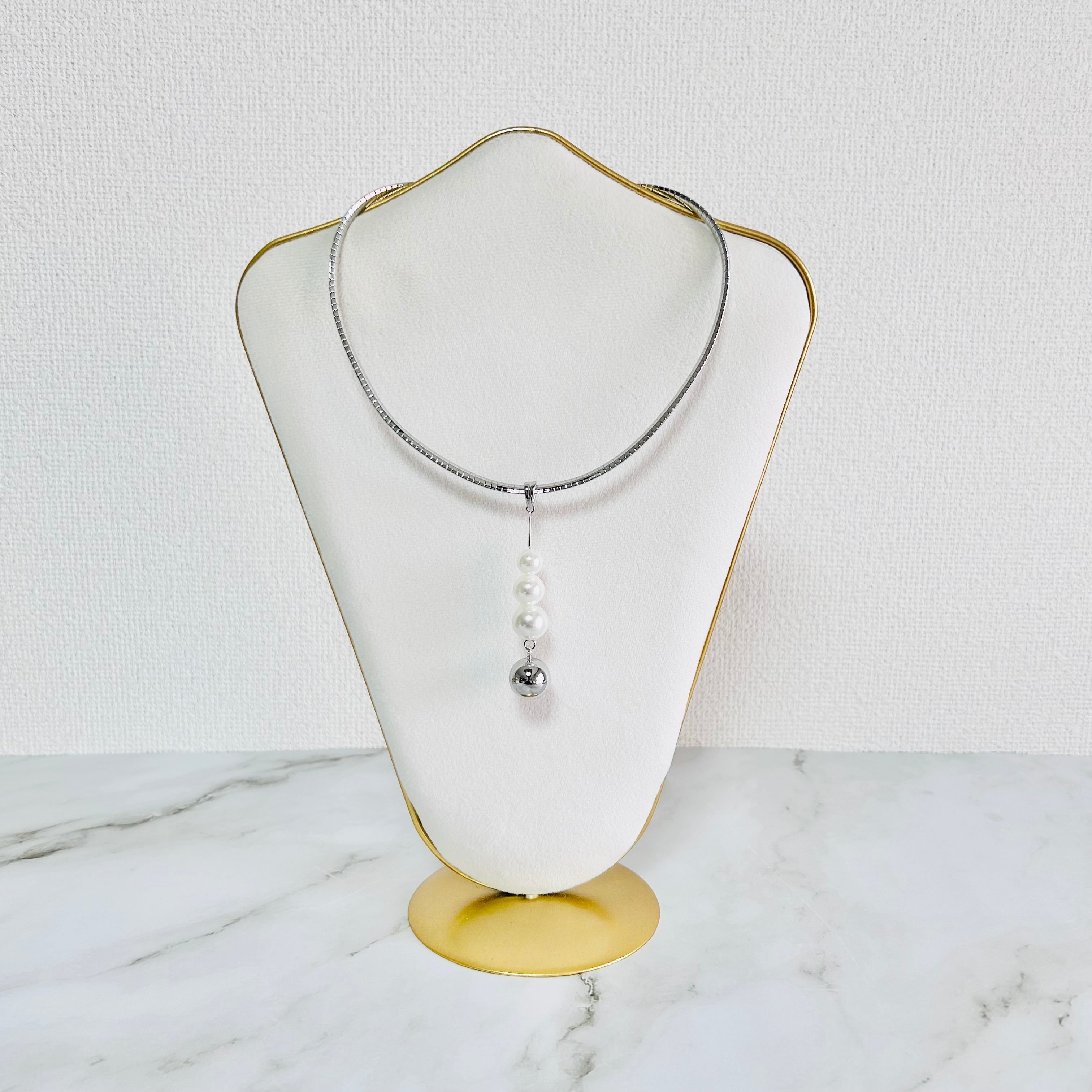 しなやかな輝きを放つシルバーチェーンに、パールのやわらかな存在感を添えたネックレス。