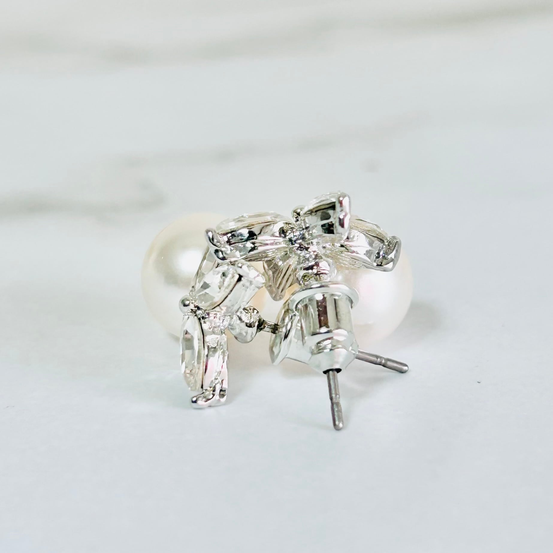 艶やかなパールと、繊細に輝くビジューを組み合わせた上品なピアス/イヤリング。
