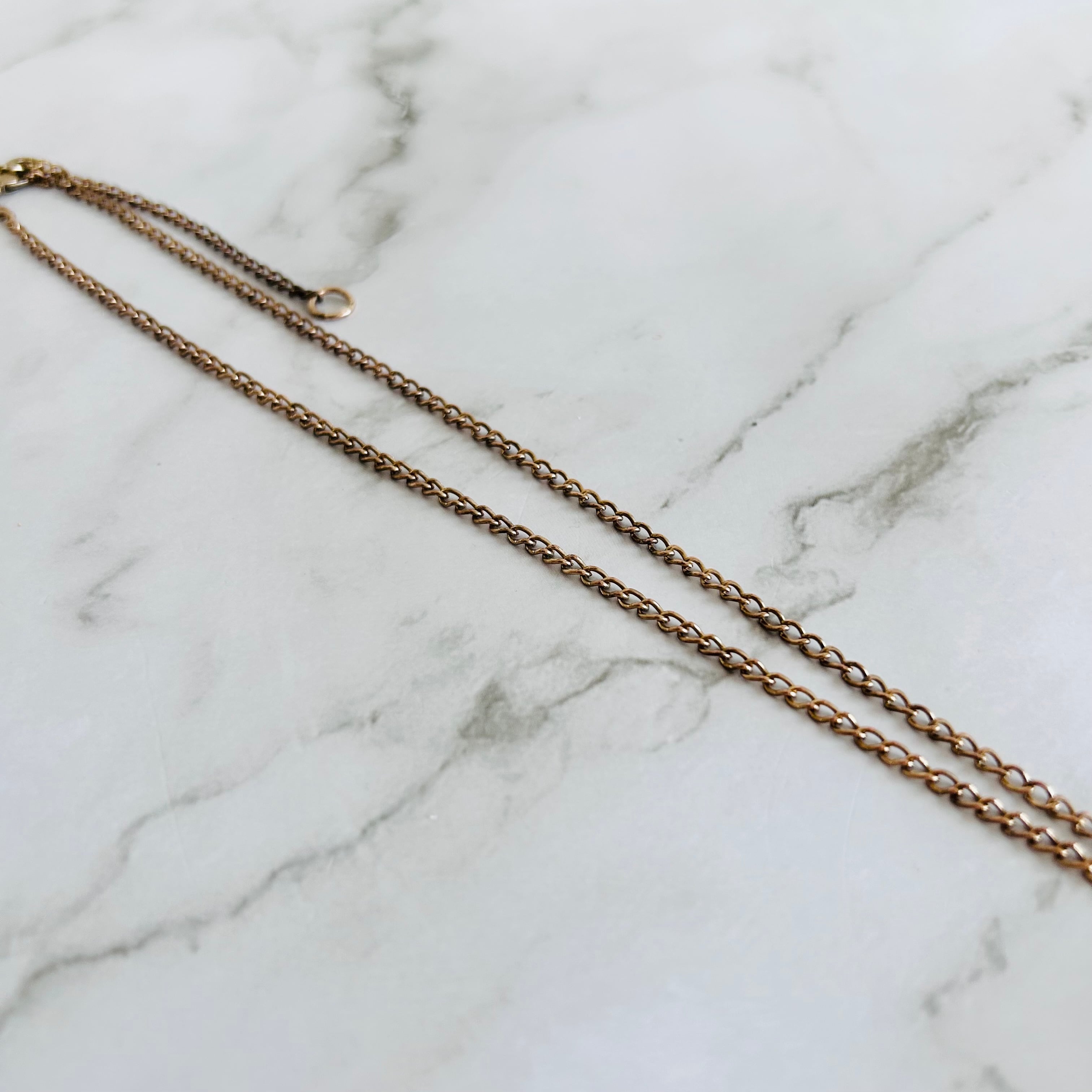 さらに、アンティークゴールドのチェーンが全体を優しく引き締め、