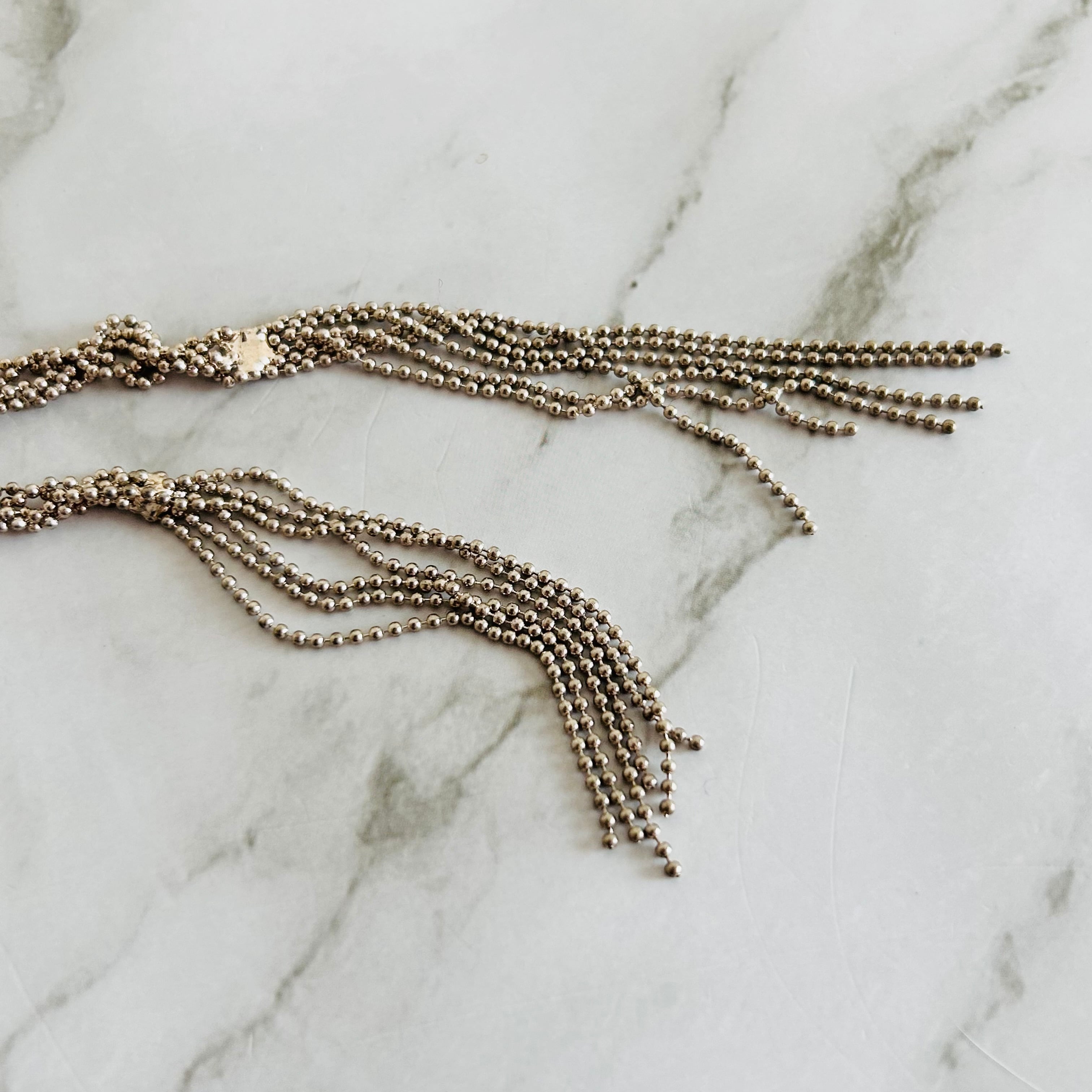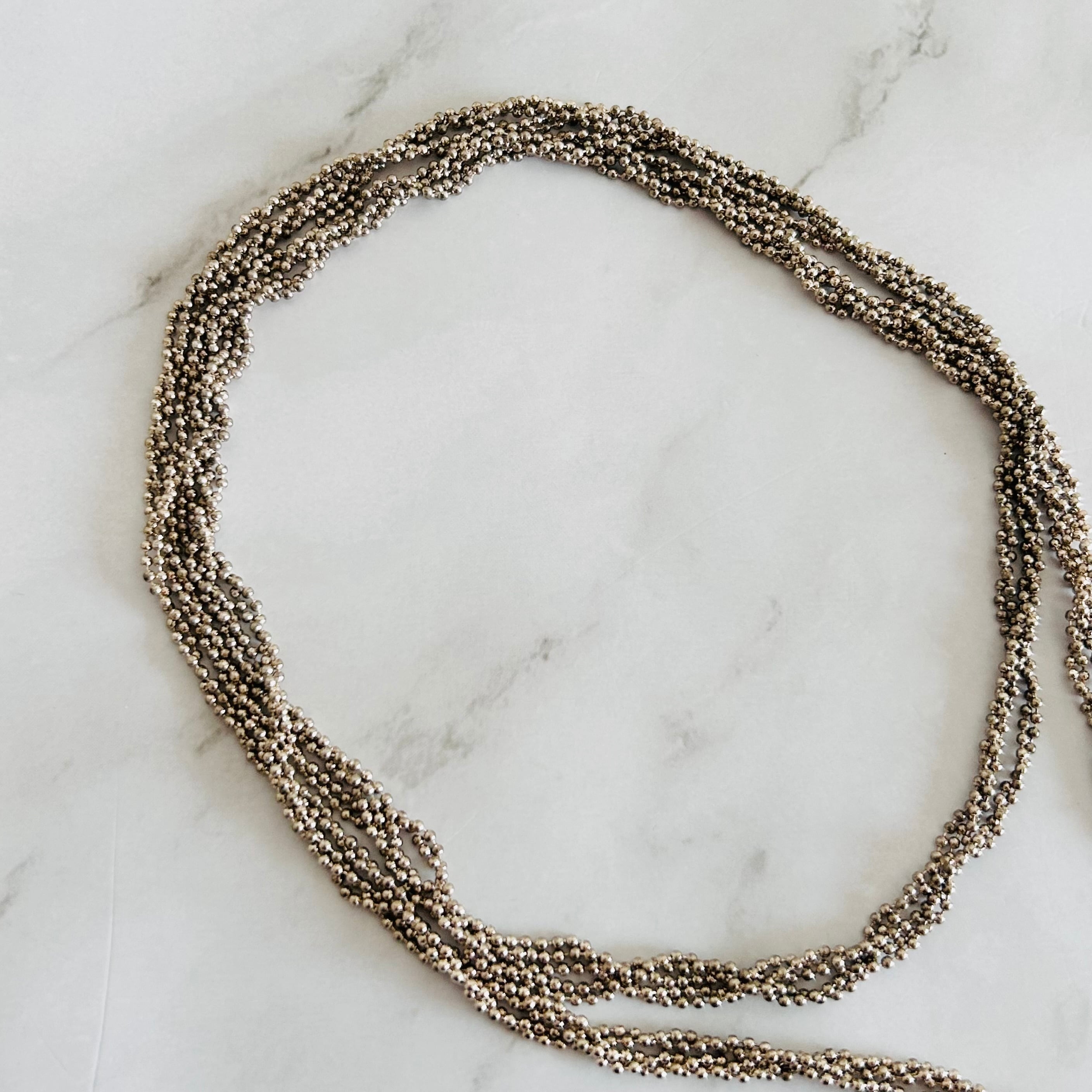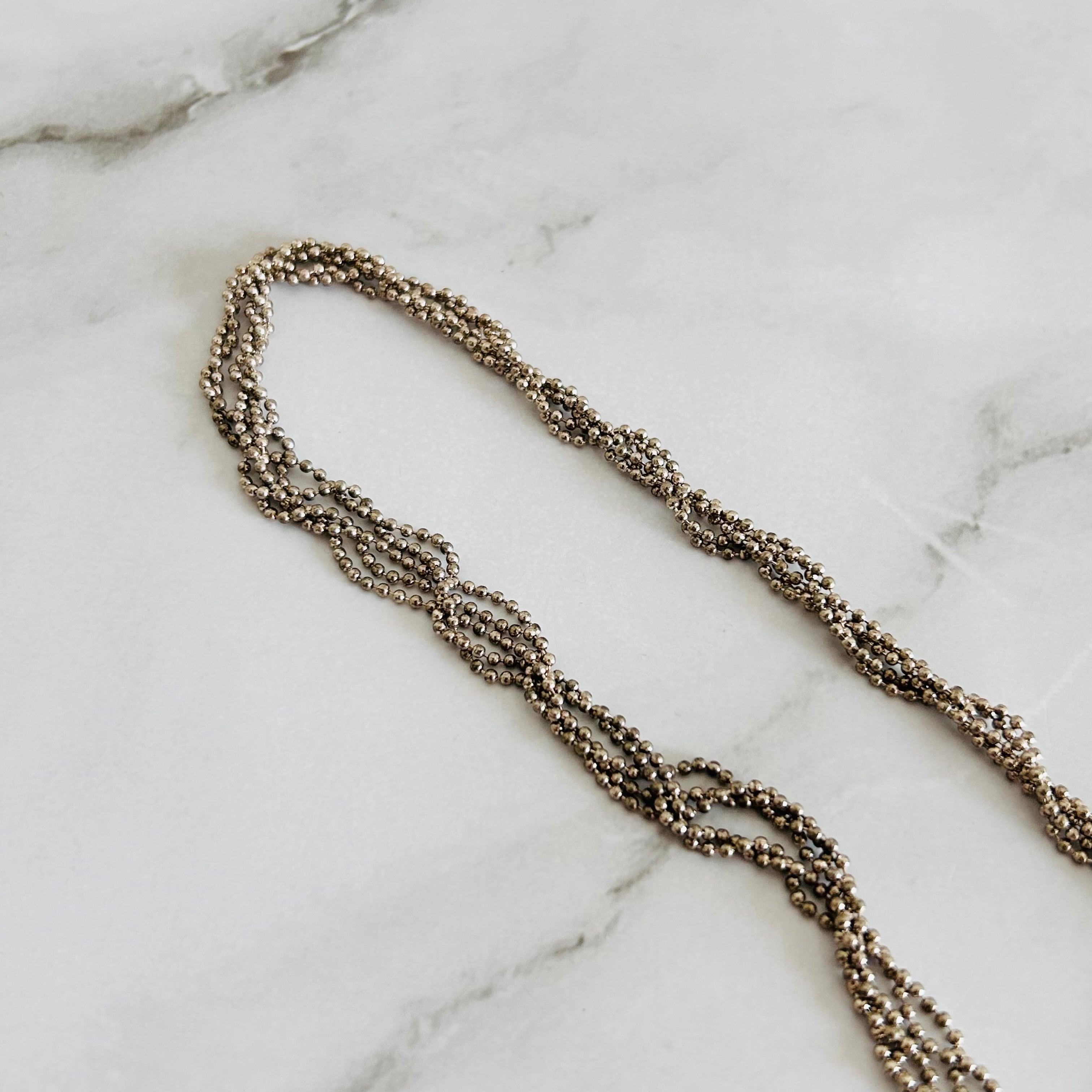 繊細なチェーンを幾重にも束ね、ねじって込むことで生まれたロングネックレス。