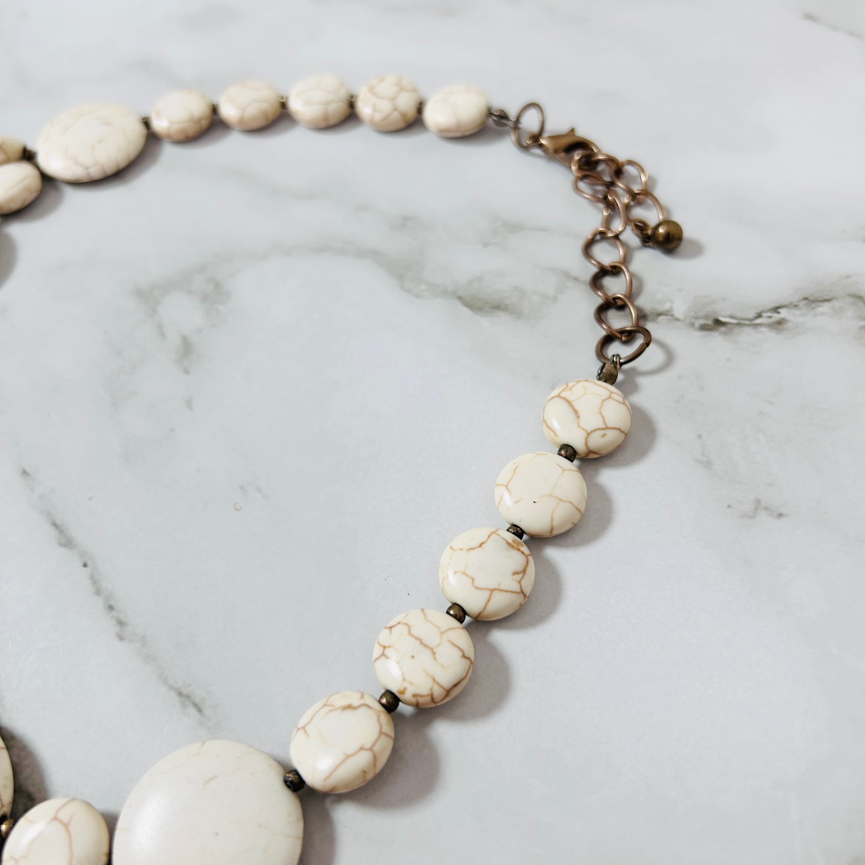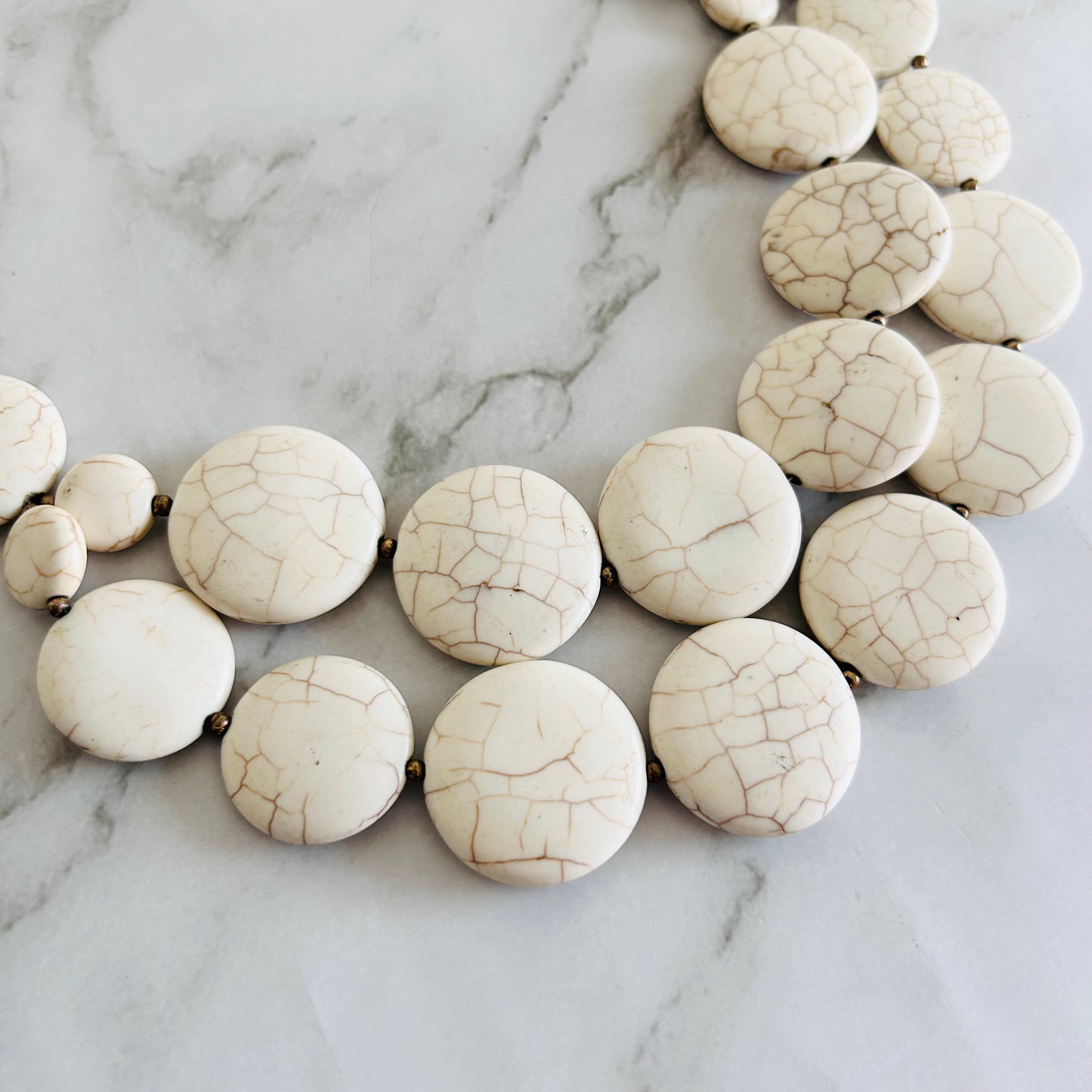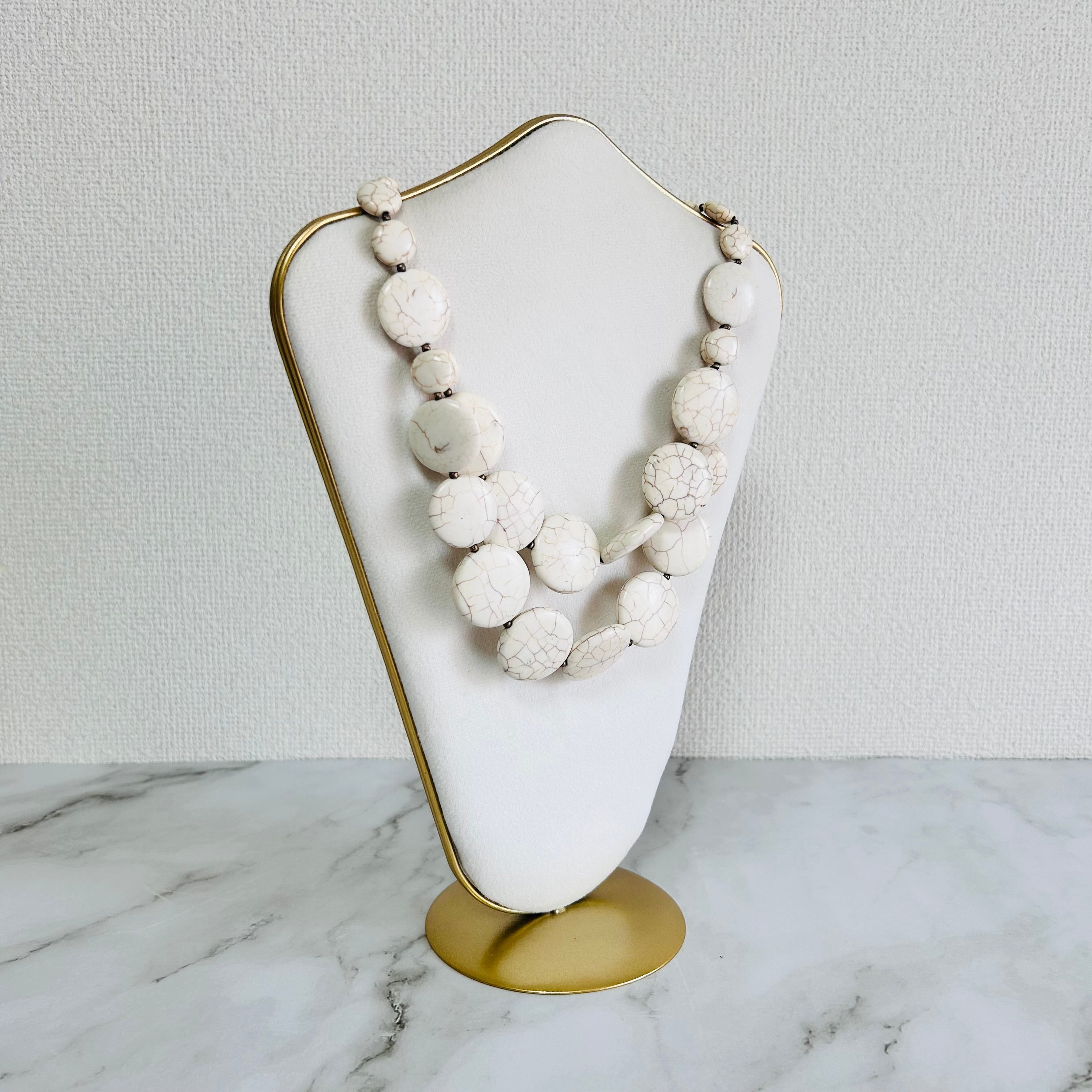 丸みのあるプレート状のストーンパーツを贅沢にあしらった、印象的なネックレス。