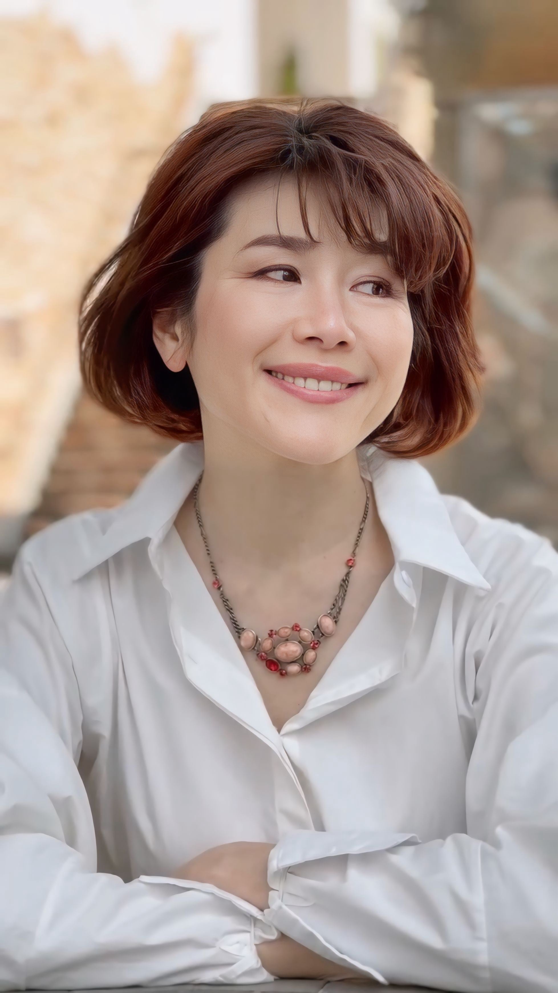 やさしい色合いの中にさりげない華やかさを添え、装いをぐっと引き立ててくれるネックレスです。