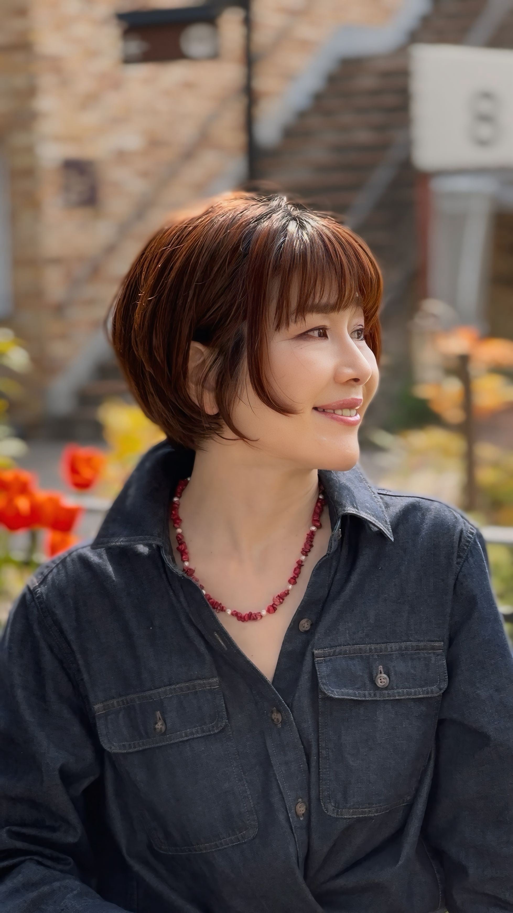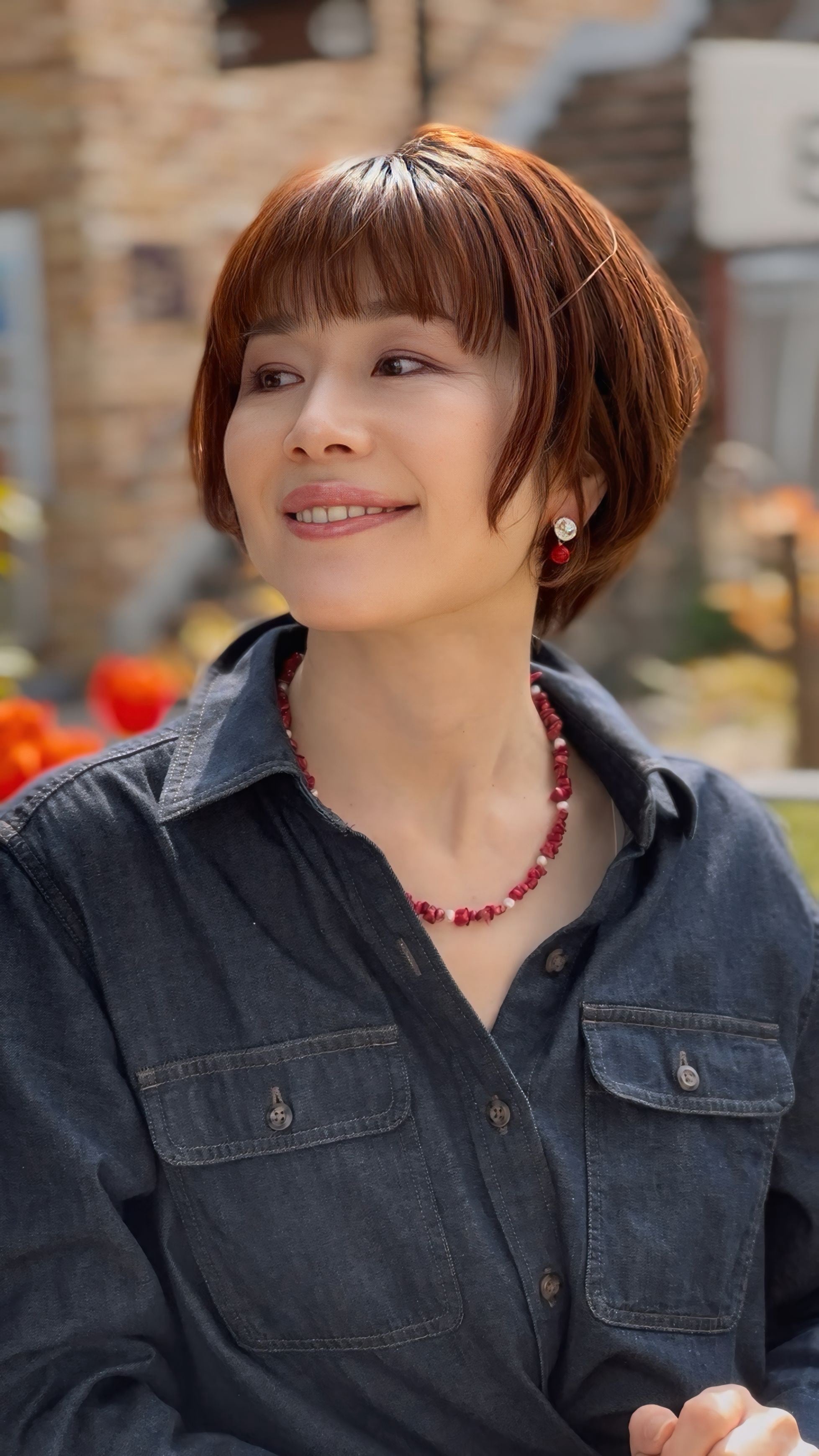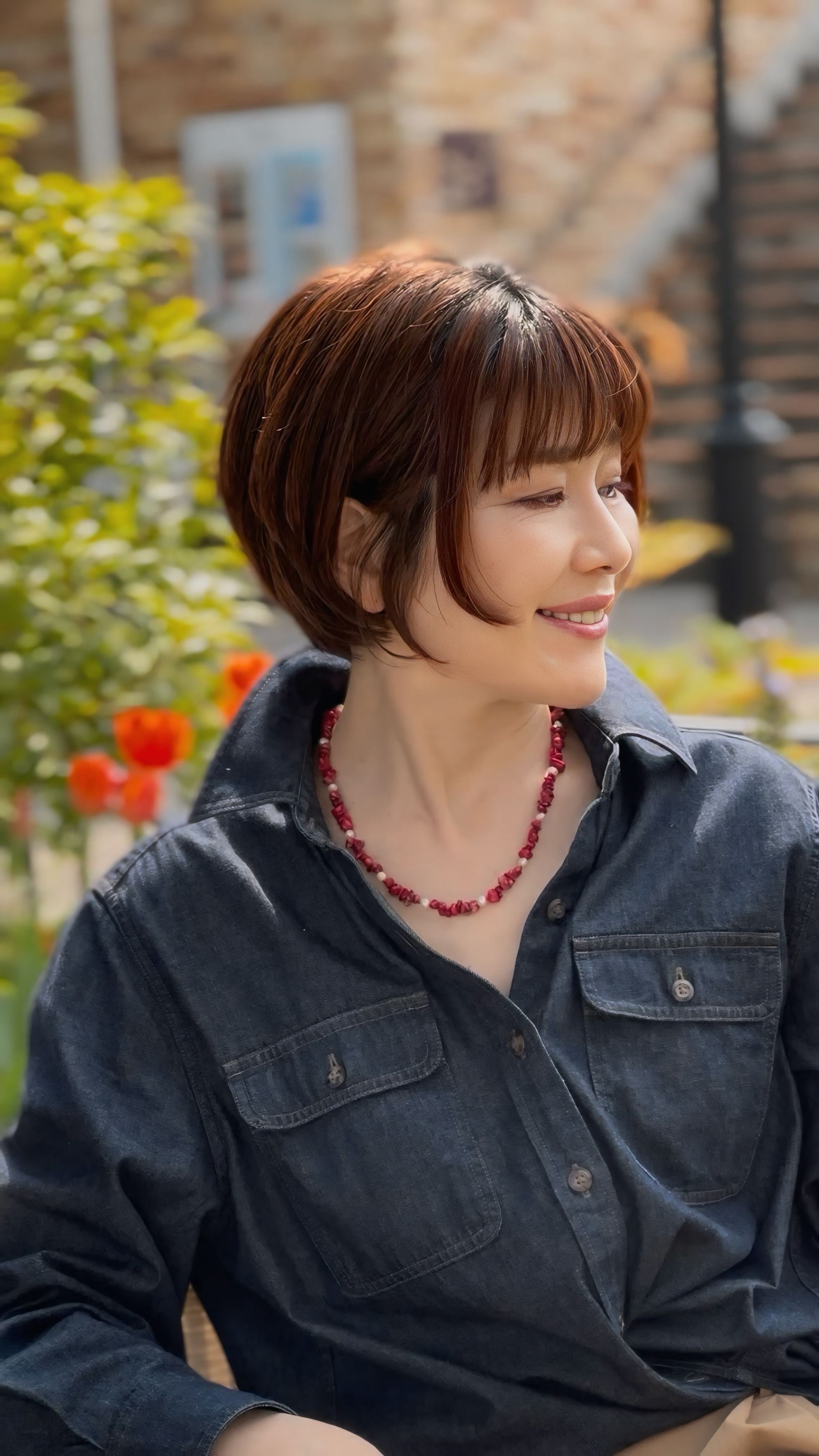 鮮やかな赤を引き立てつつ、全体に上品な抜け感をプラス。