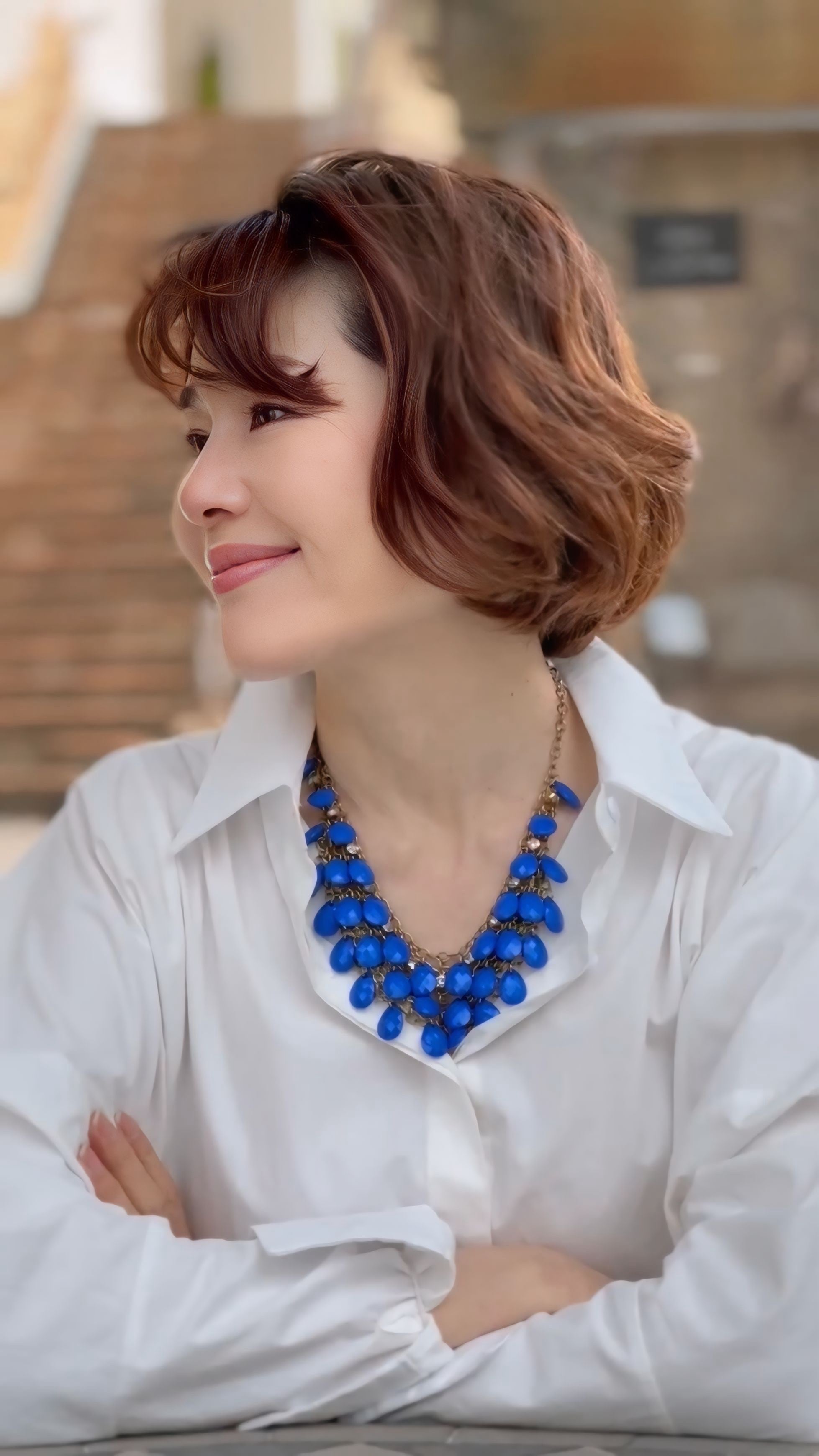 艶やかなブルーは、お顔まわりをぱっと明るく見せてくれるカラー。