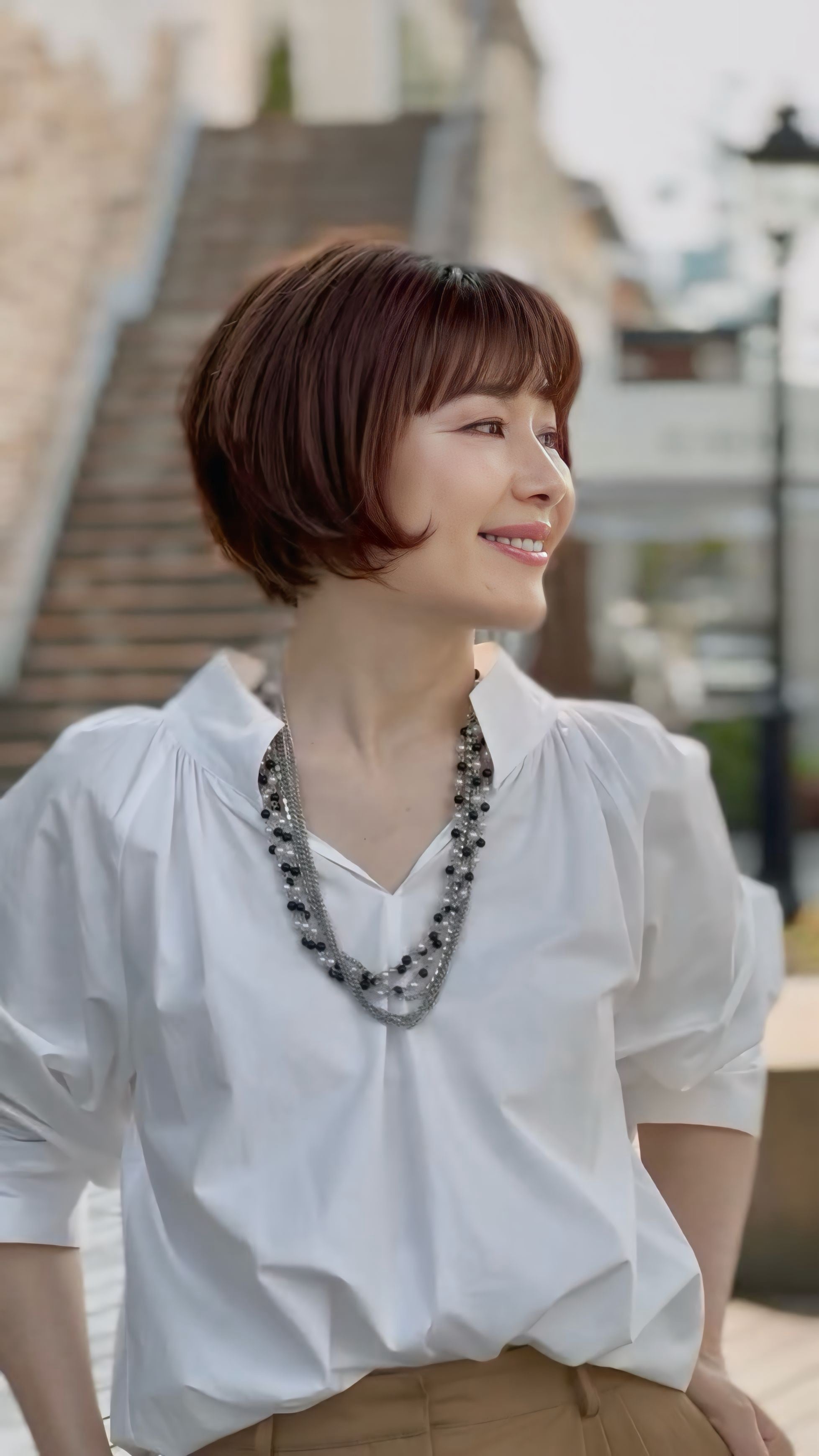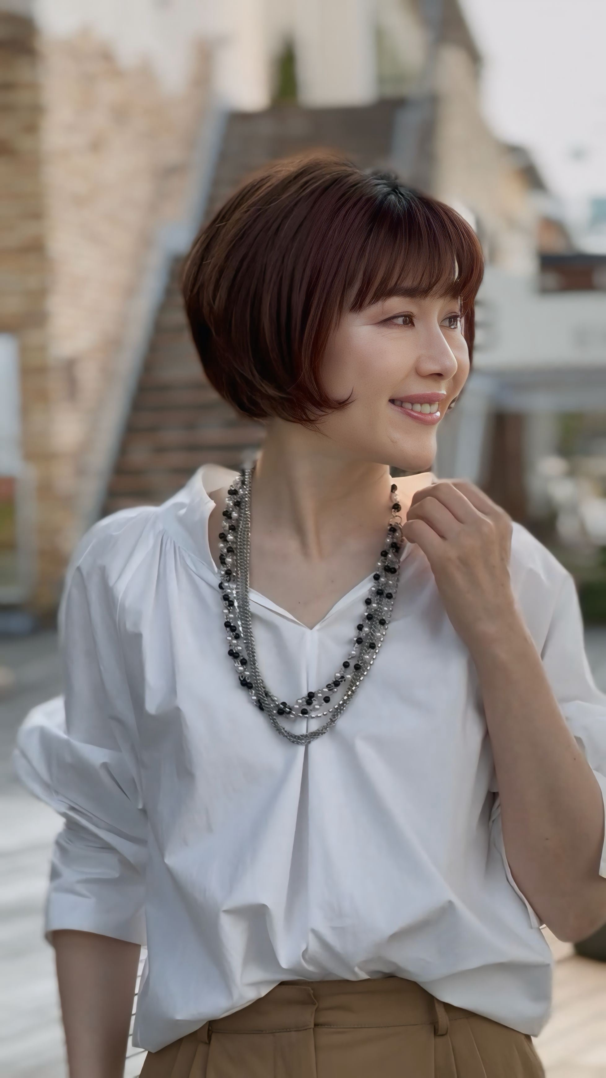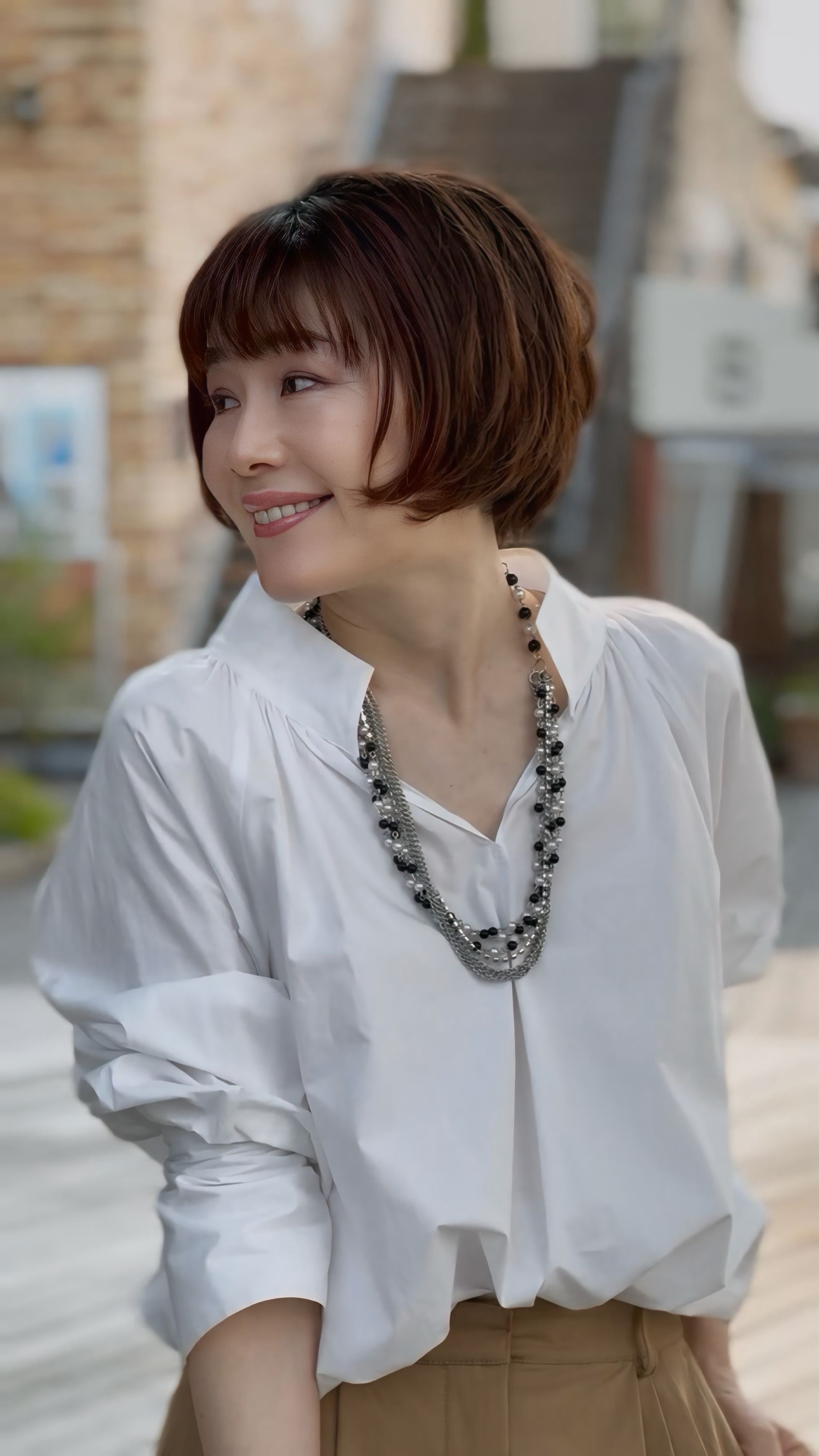 ジャケットスタイルに合わせてクールにまとめるのも、