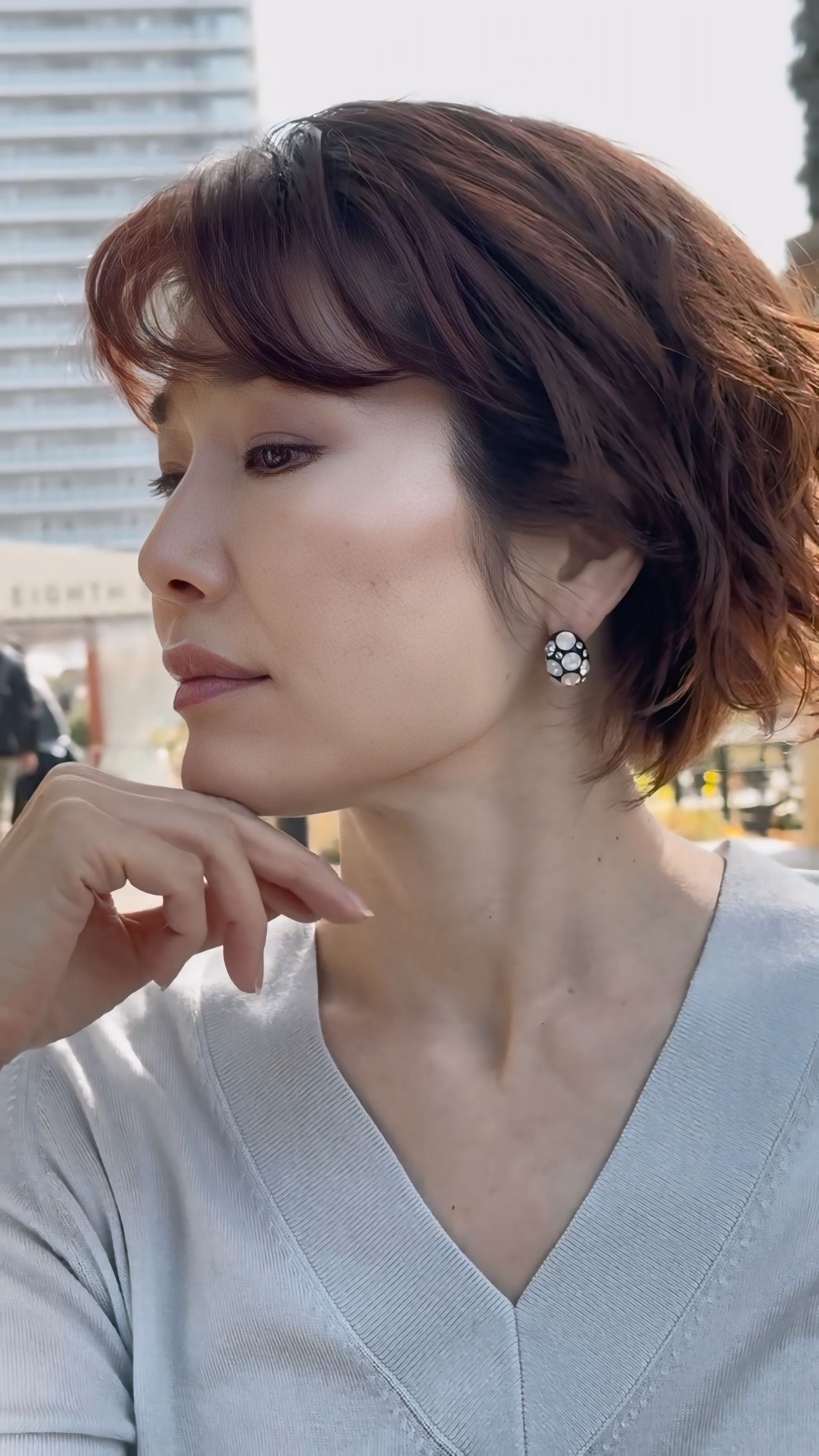 お顔まわりをパッと明るく、洗練された印象に引き上げてくれます。
