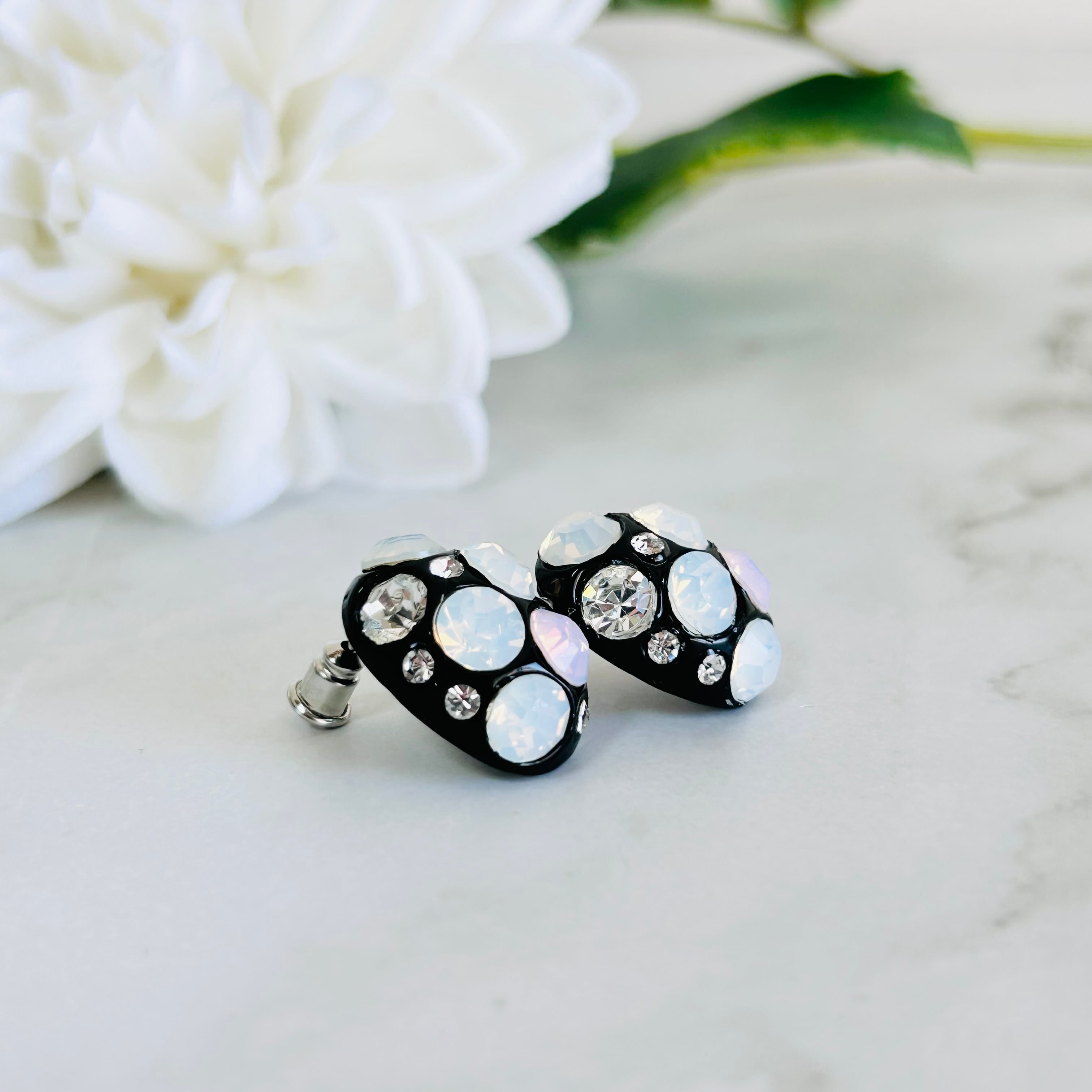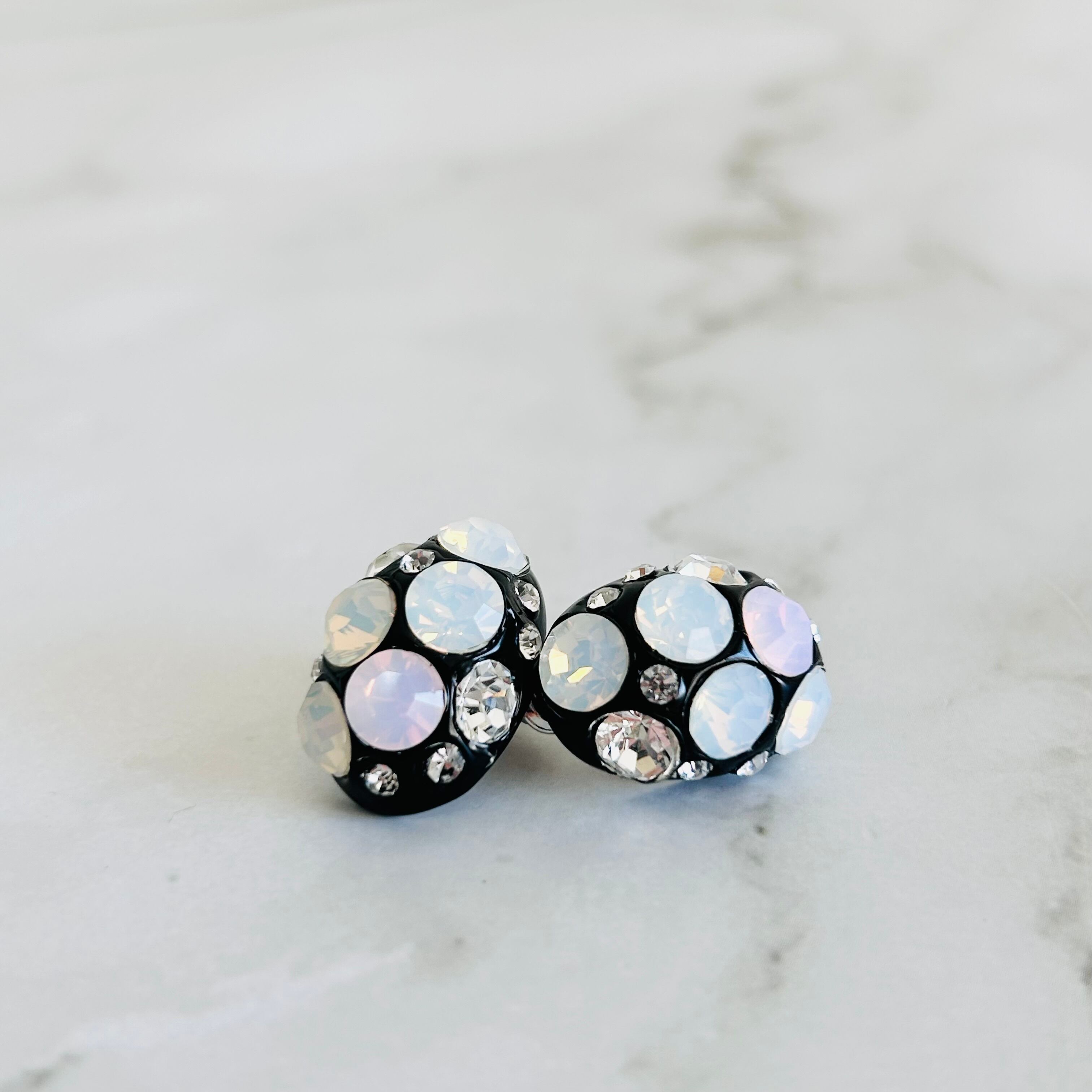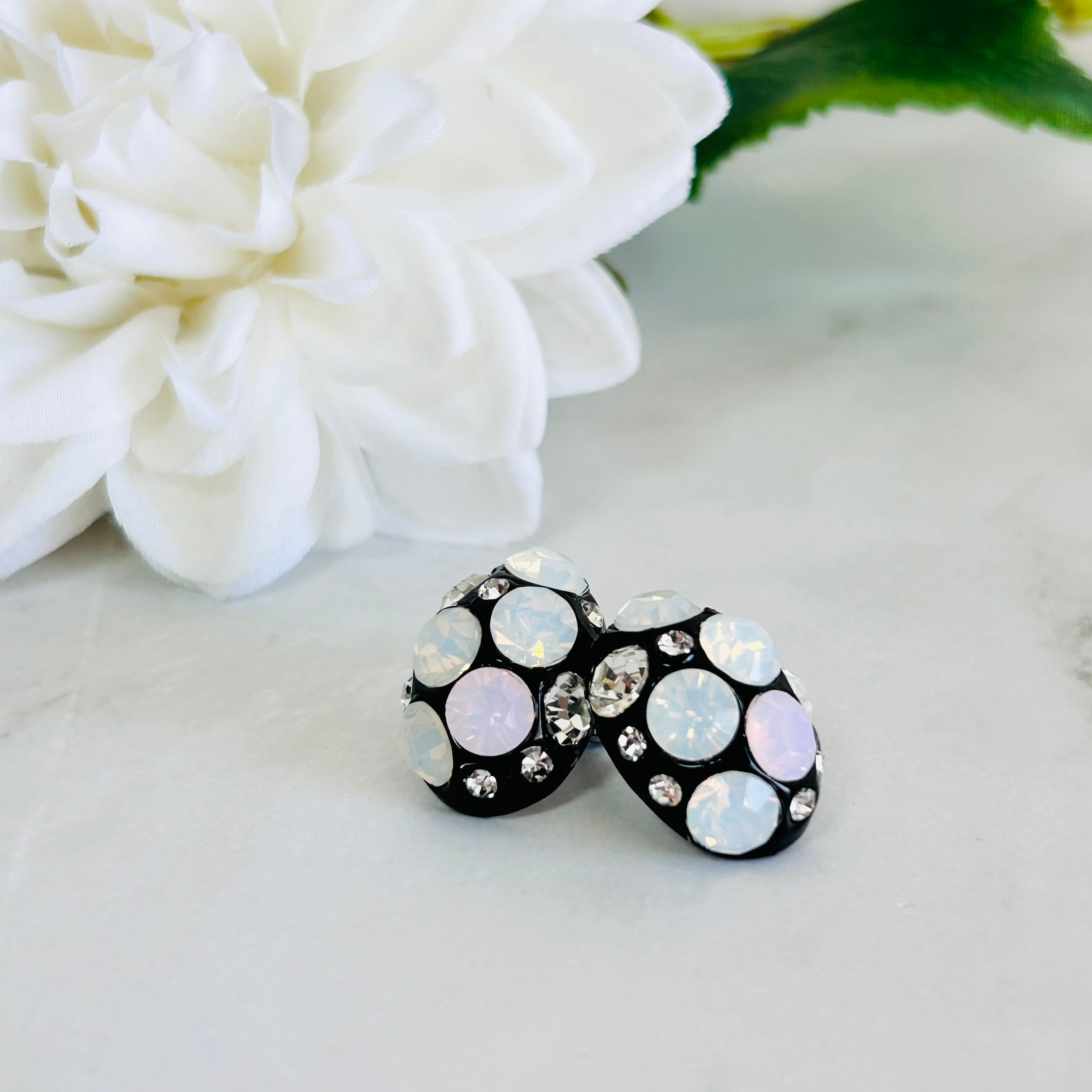 ホワイトやオーロラのようにやわらかく輝くストーンと、華やかに煌めくクリアクリスタルが