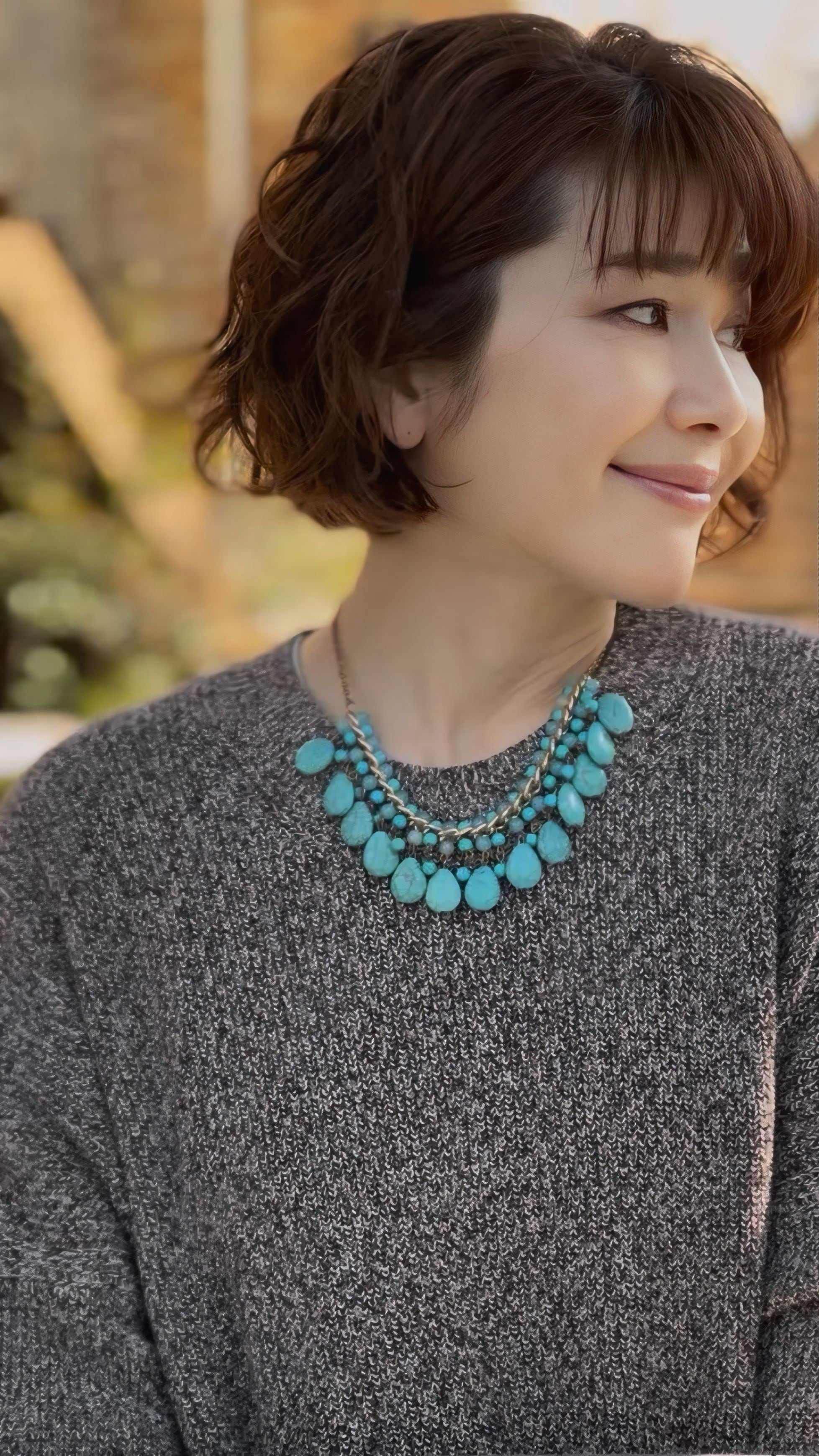 装いに爽やかな彩りと軽やかな華やかさを添えてくれるネックレスです。