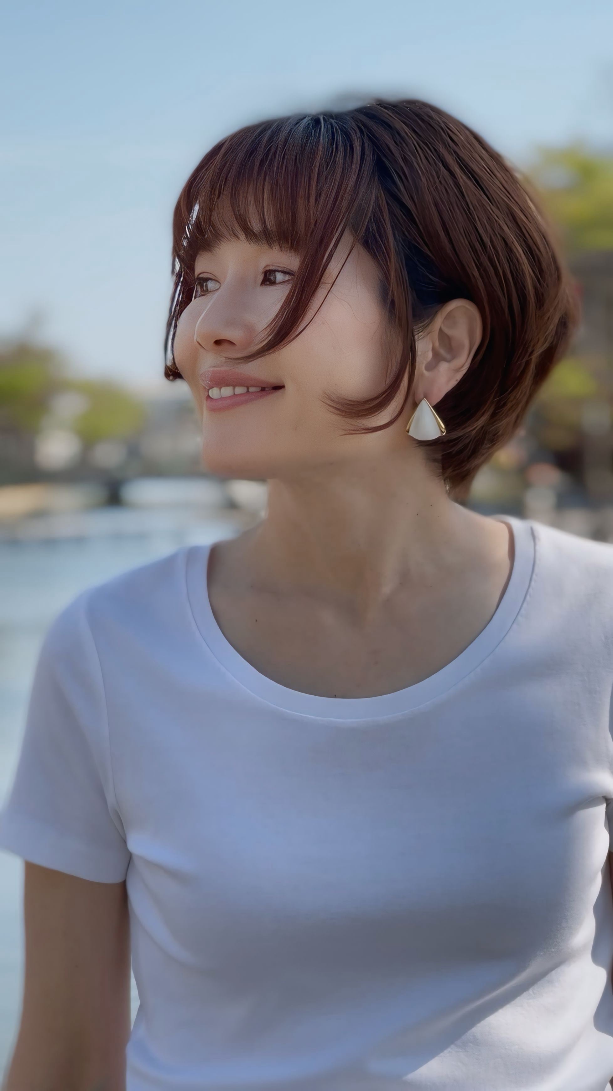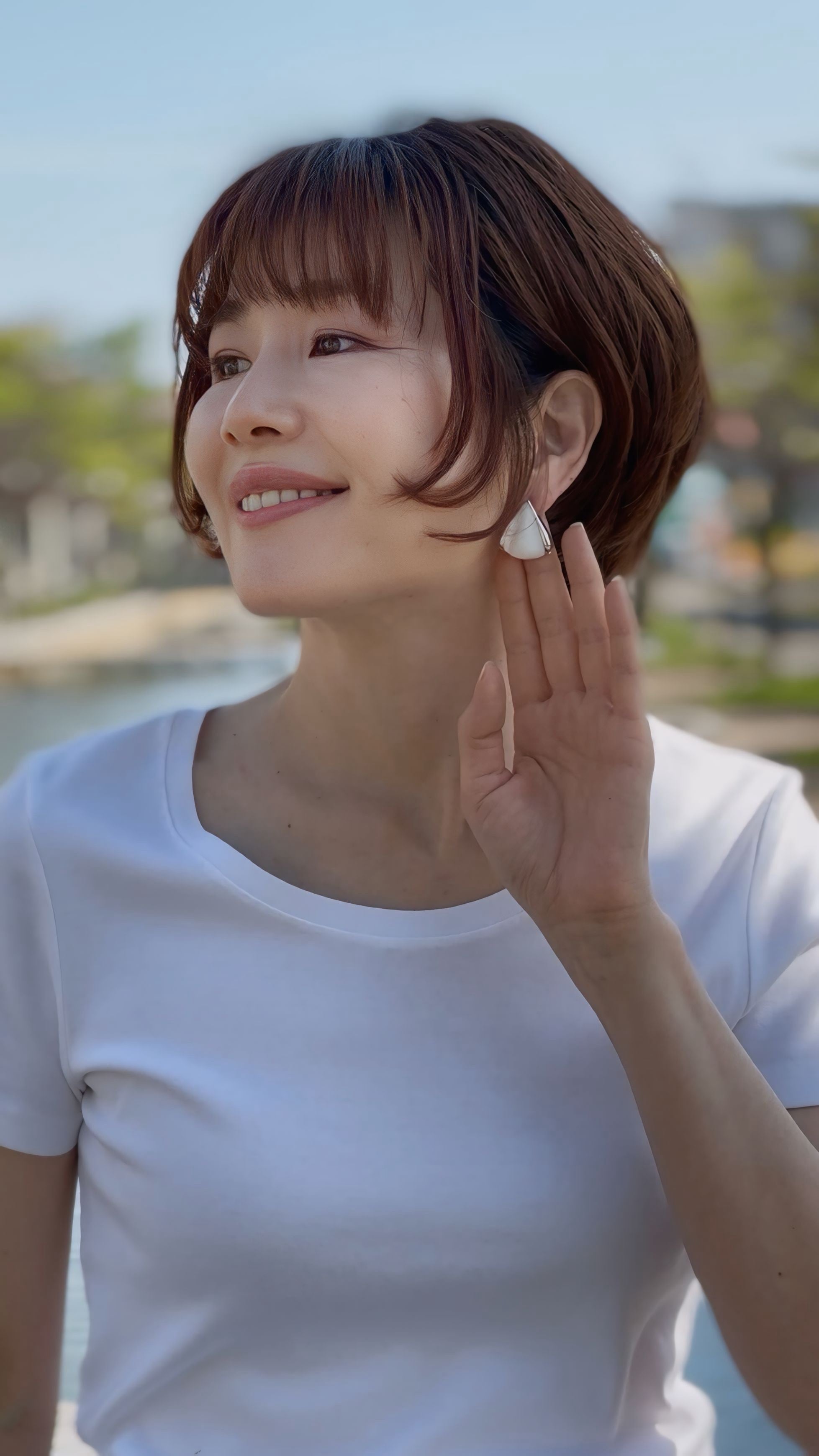 ホワイトの柔らかな色味が、お顔まわりに明るさと清潔感をプラスしてくれます。