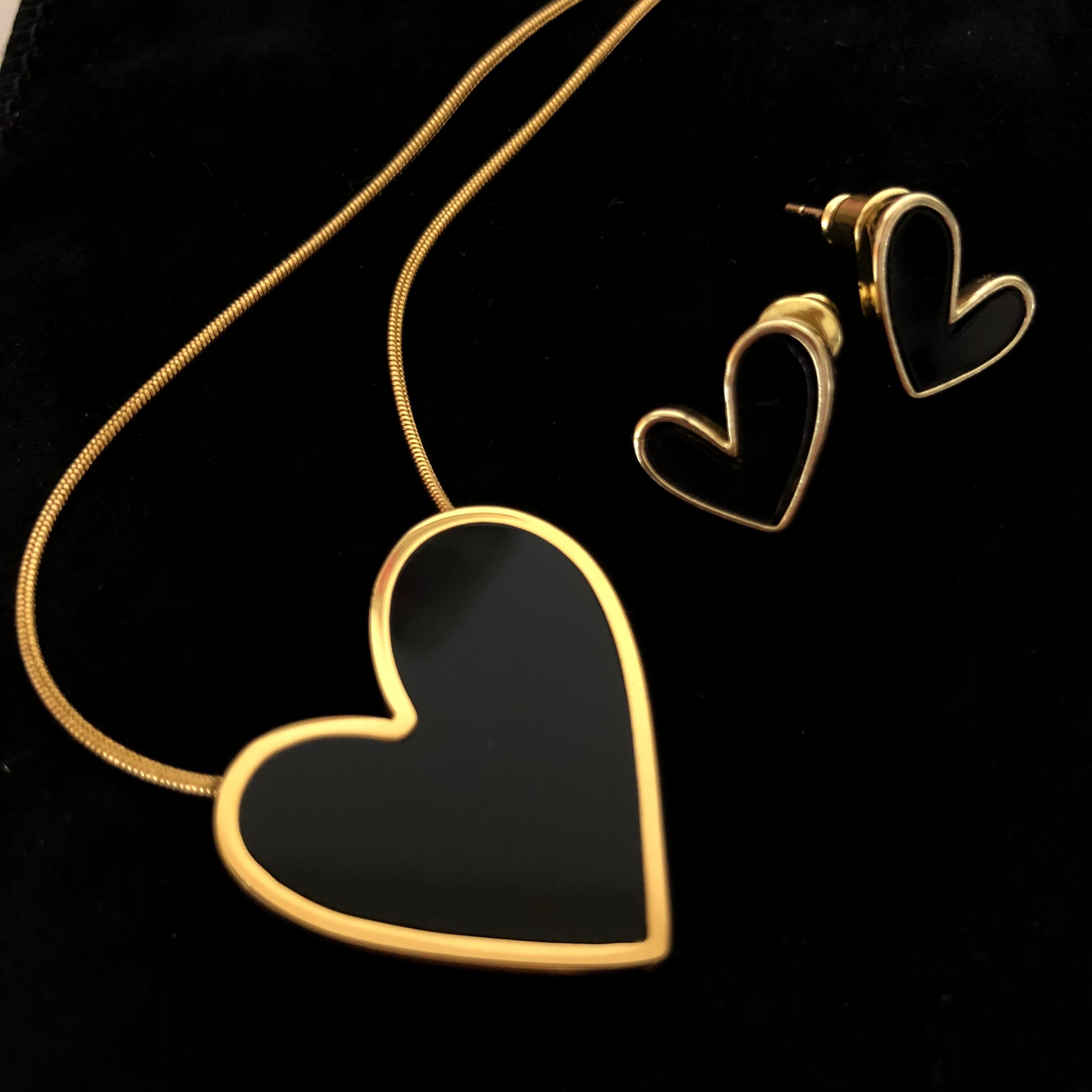 ブラック✖️ゴールドカラーのピアスとネックレスのセットです。