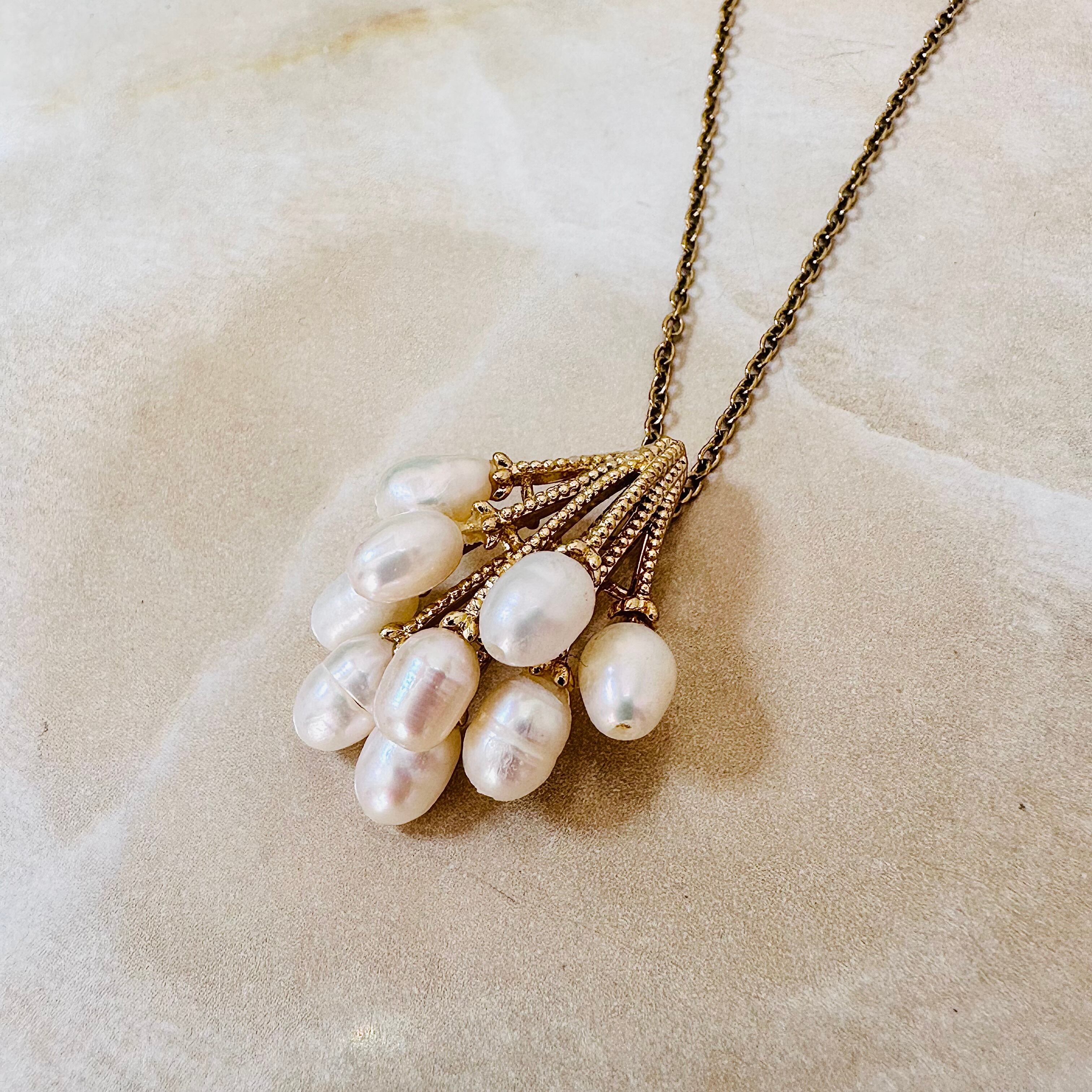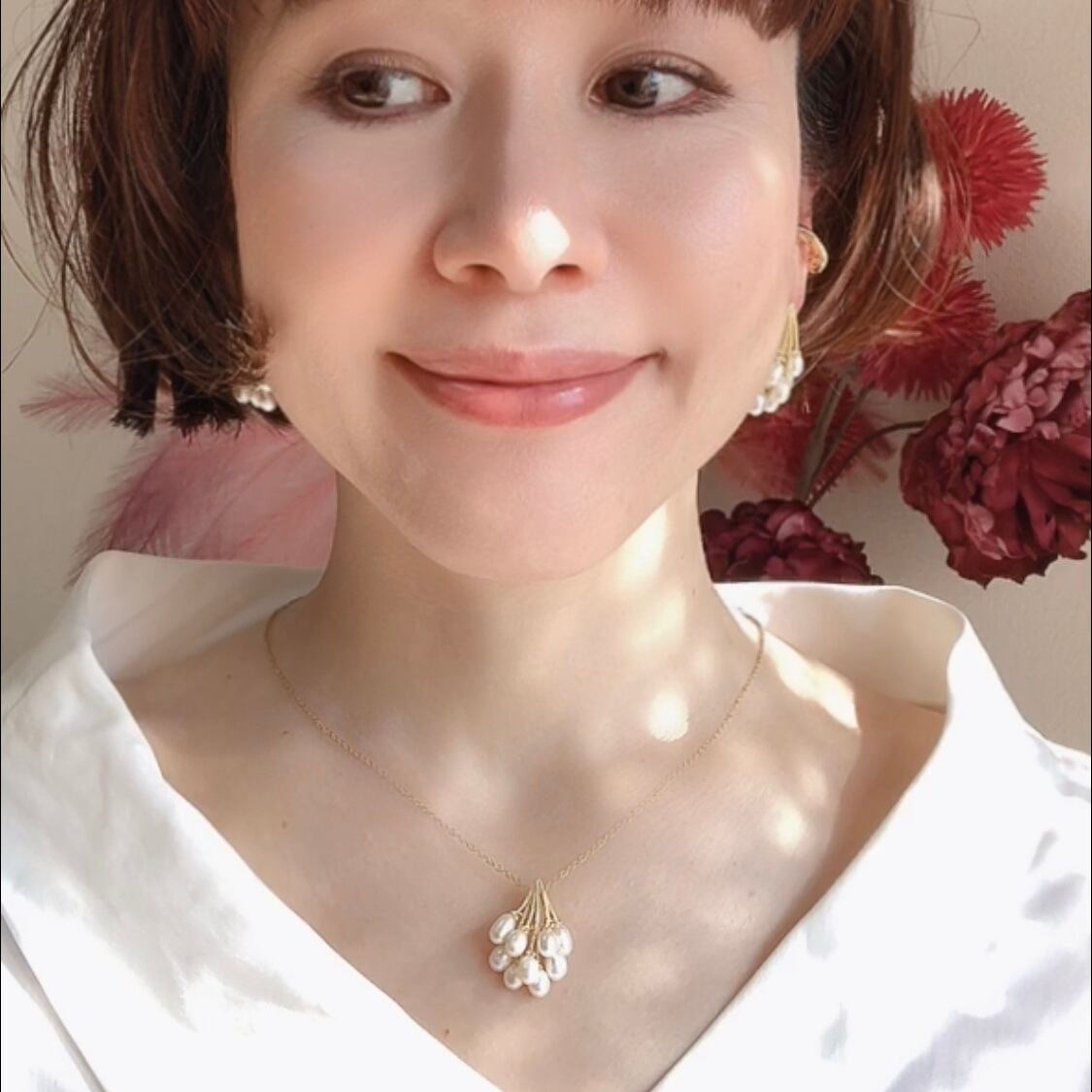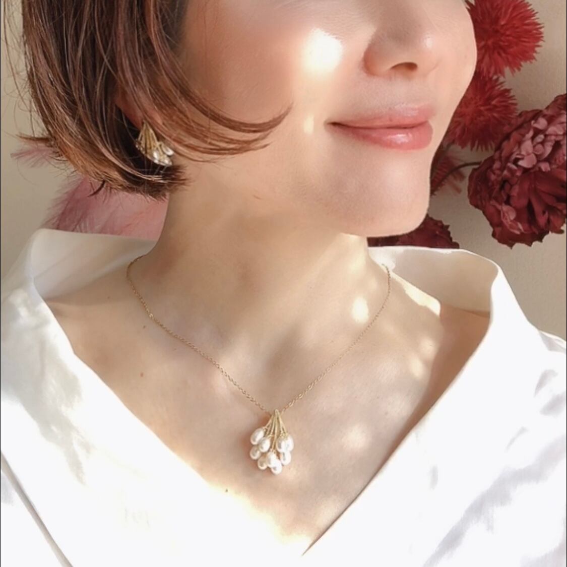 リアル淡水パールで作られた可憐で上品なお花のブーケのようなモチーフがとても素敵です。