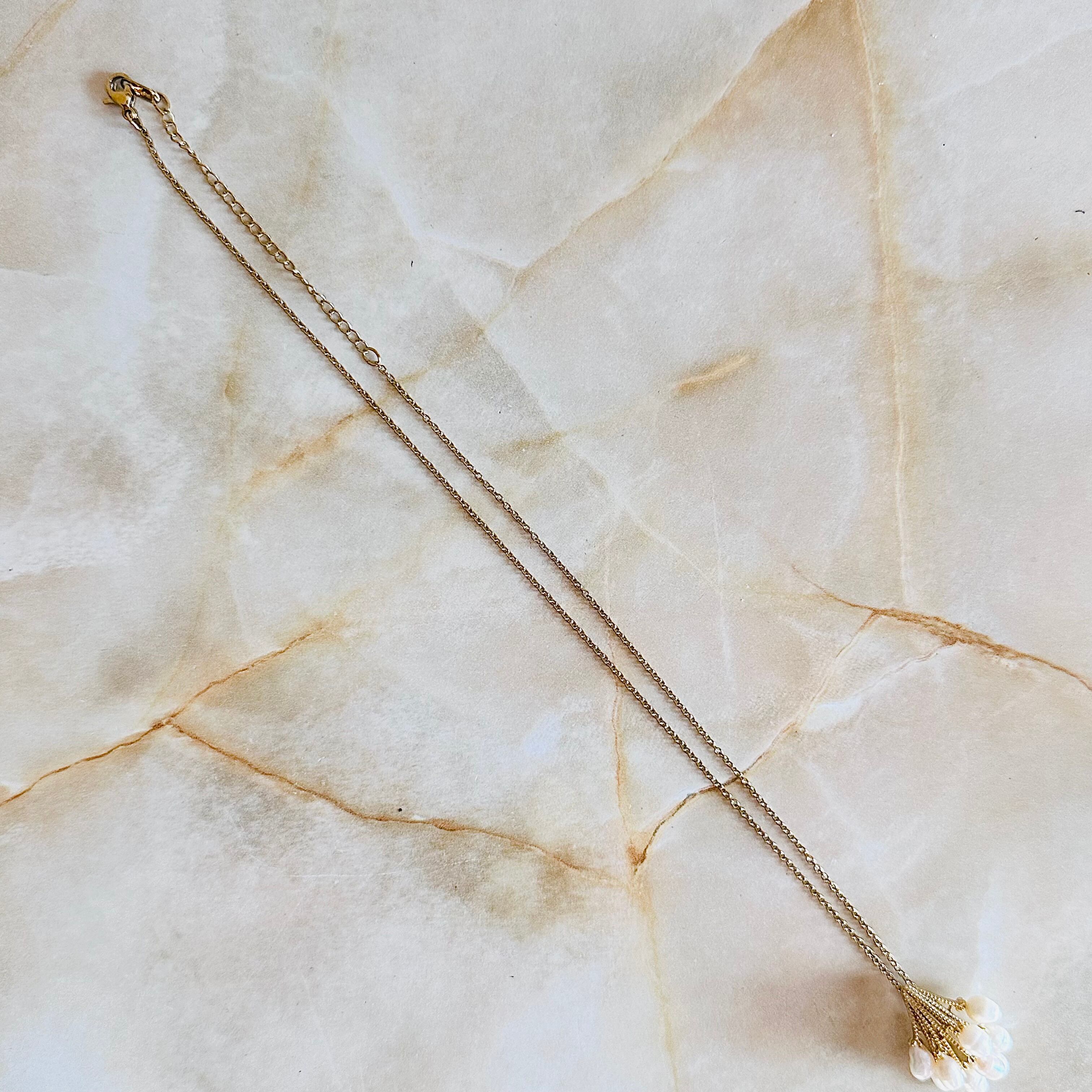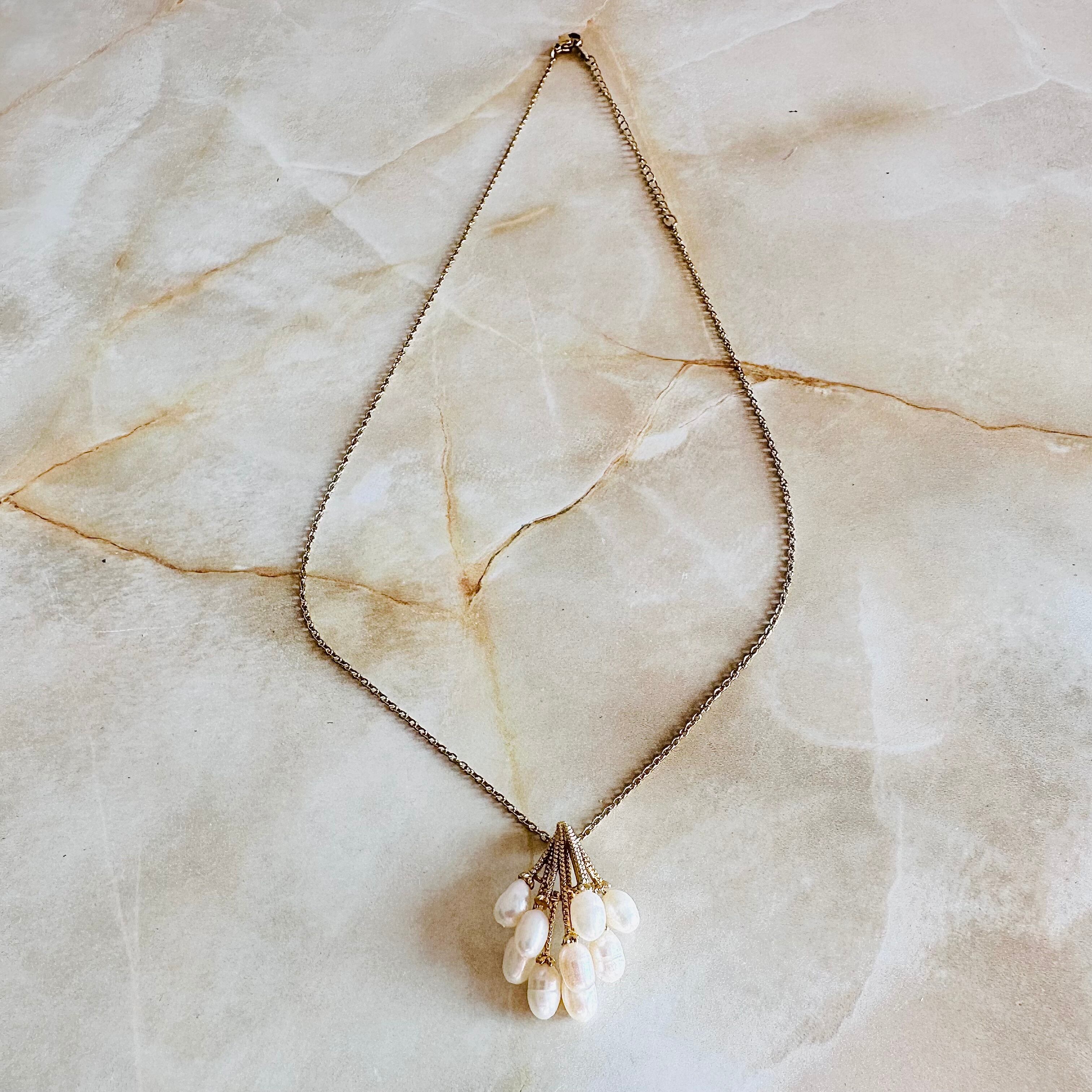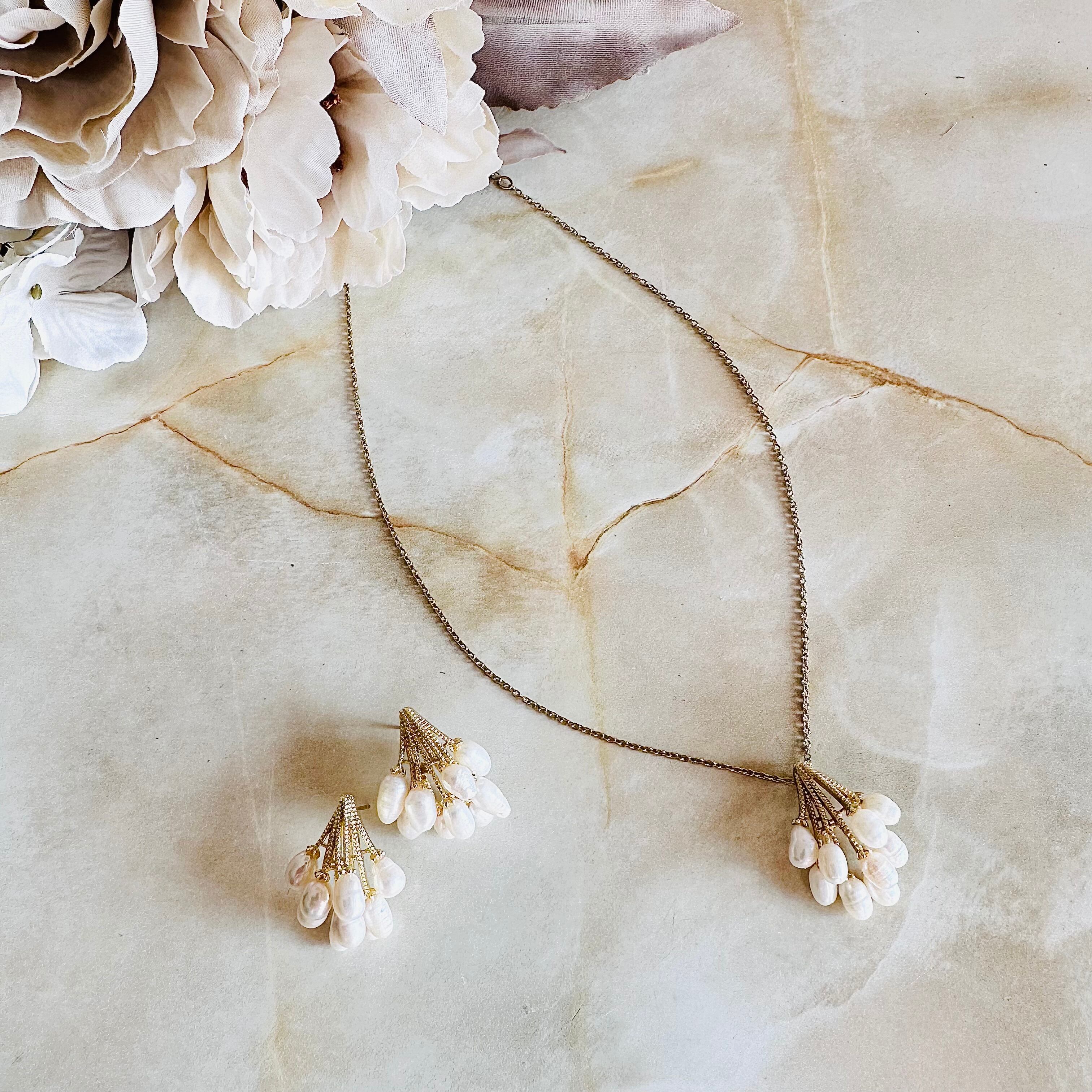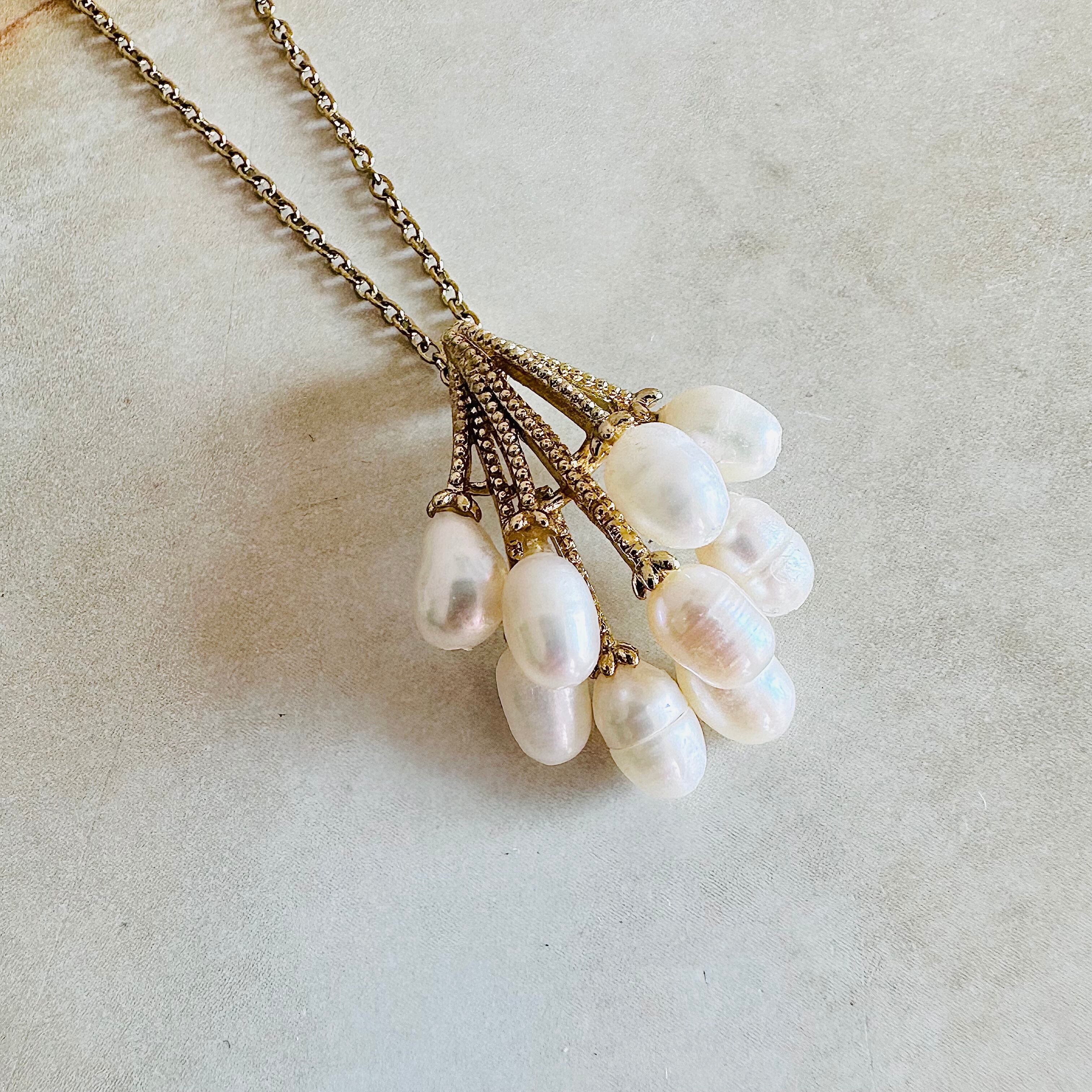 リアル淡水パールで作られた可憐で上品なお花のブーケのようなモチーフがとても素敵です。