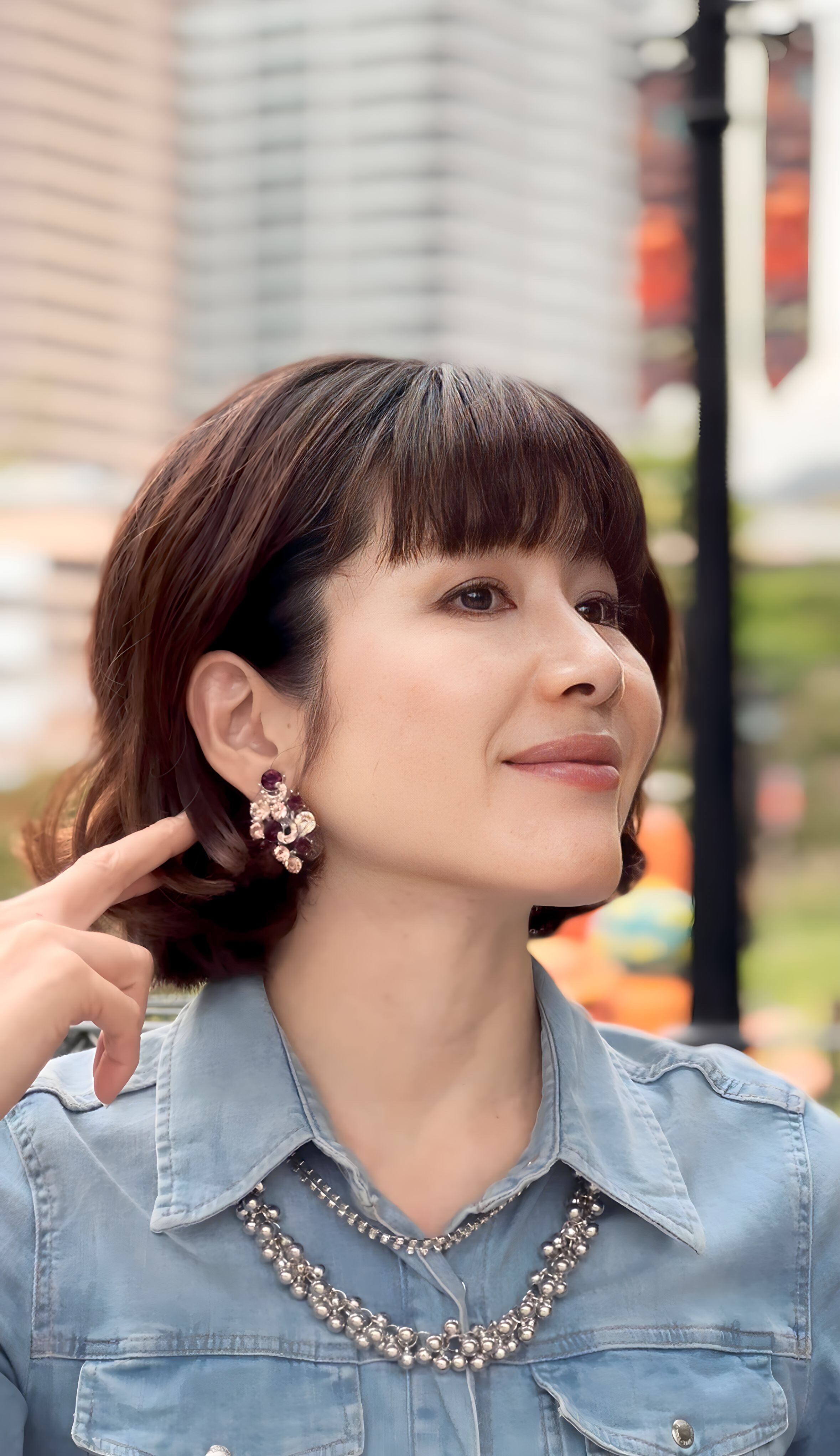 やや大きめのデザインで、クリップタイプのイヤリングですので、襟元に挟んでブローチのような使い方をしても素敵ですヨ!