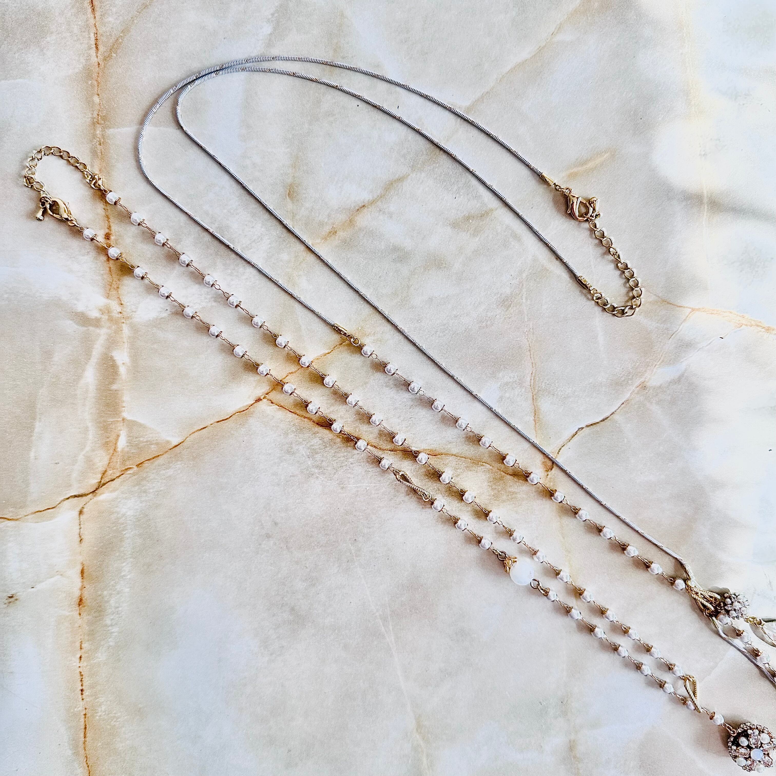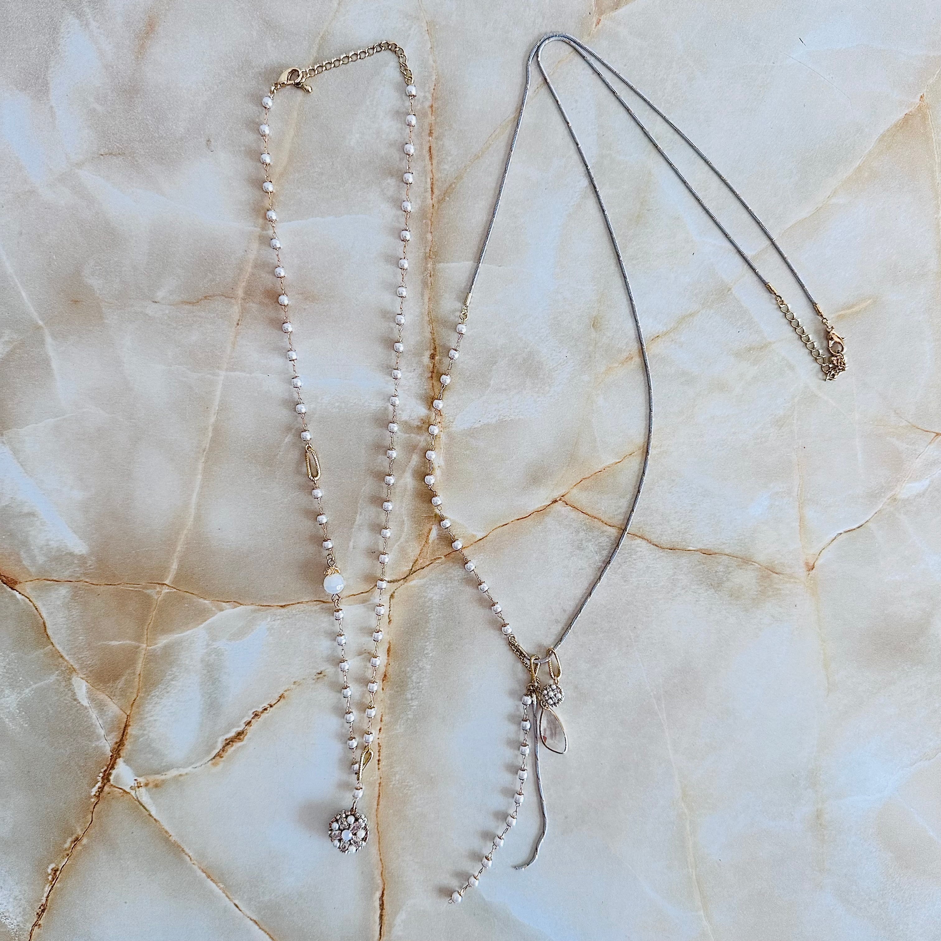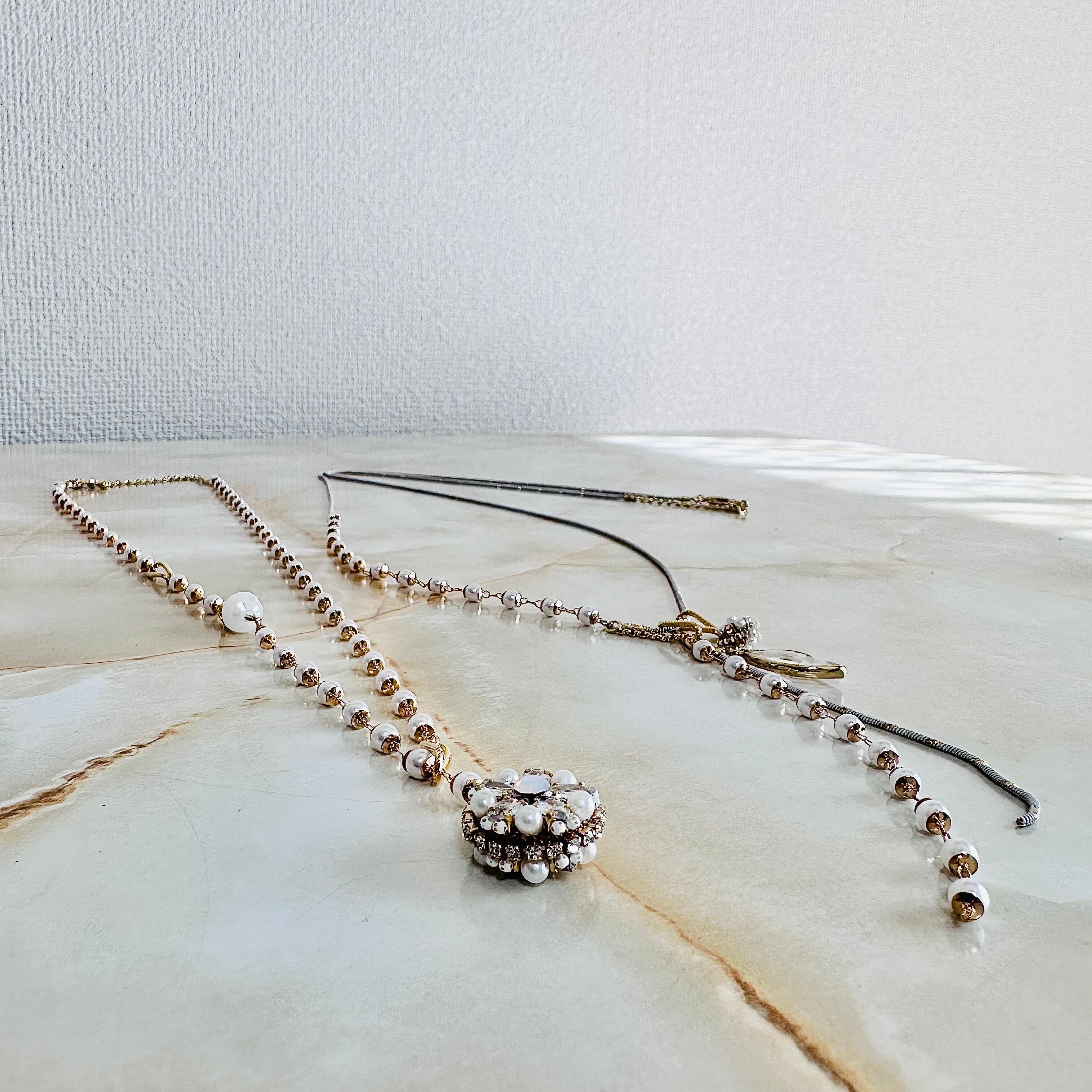 パール、クリア✖️ゴールドカラーのロングネックレスの2つセットです。