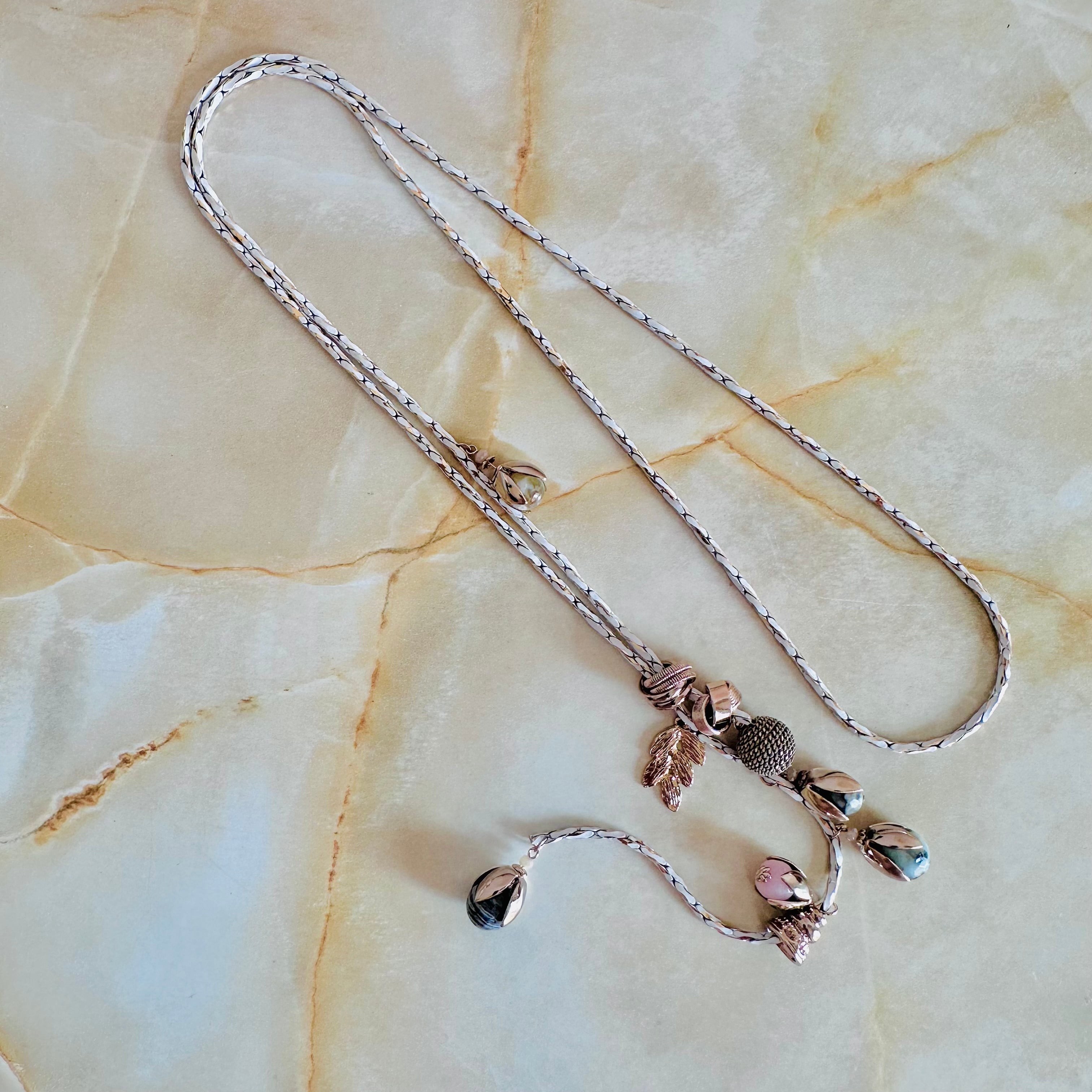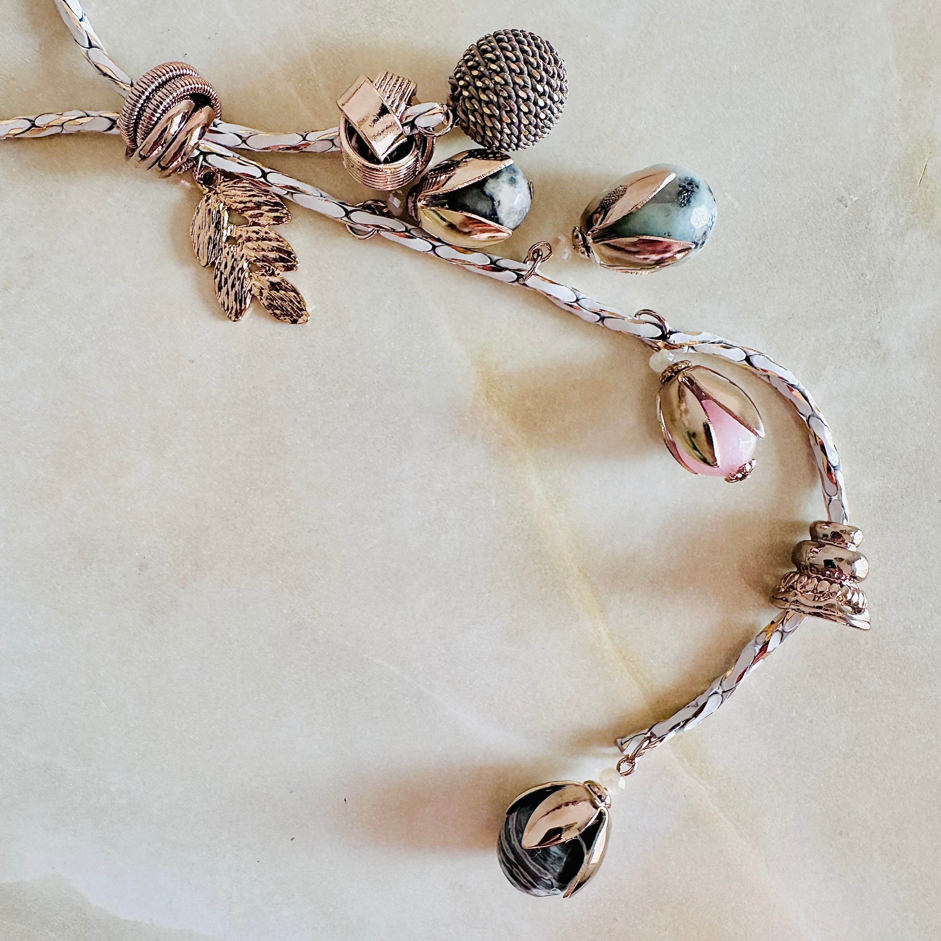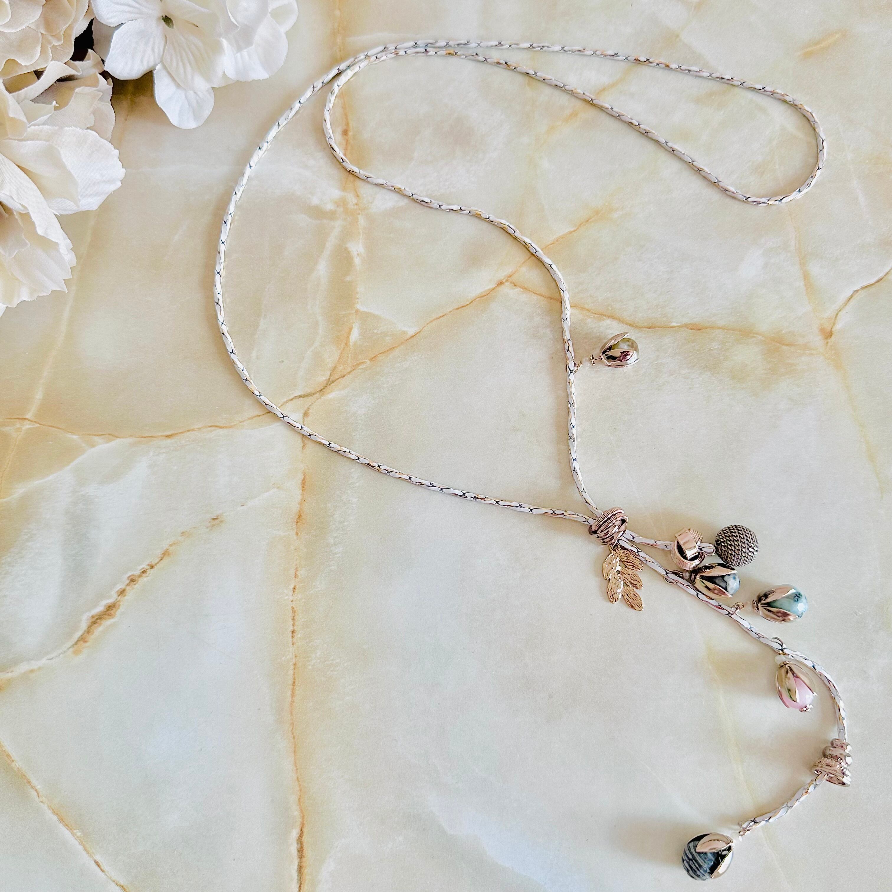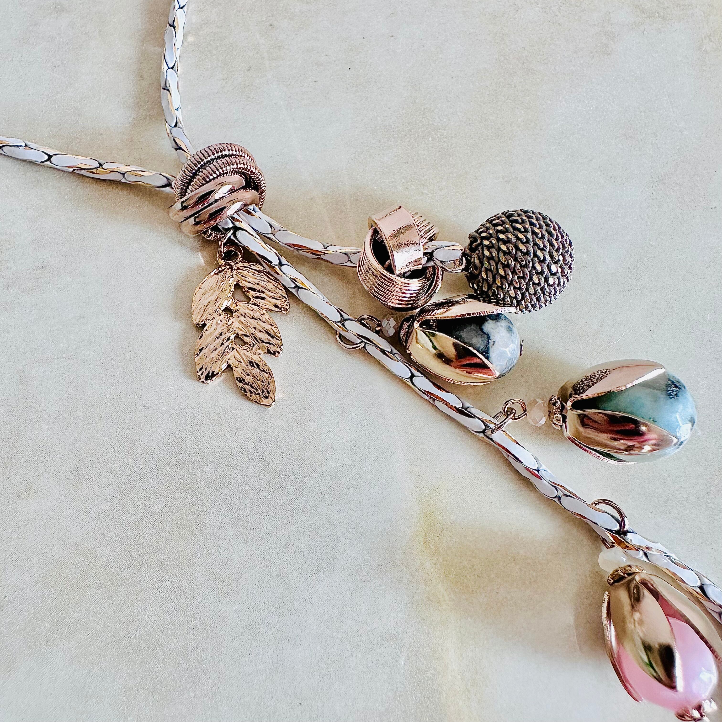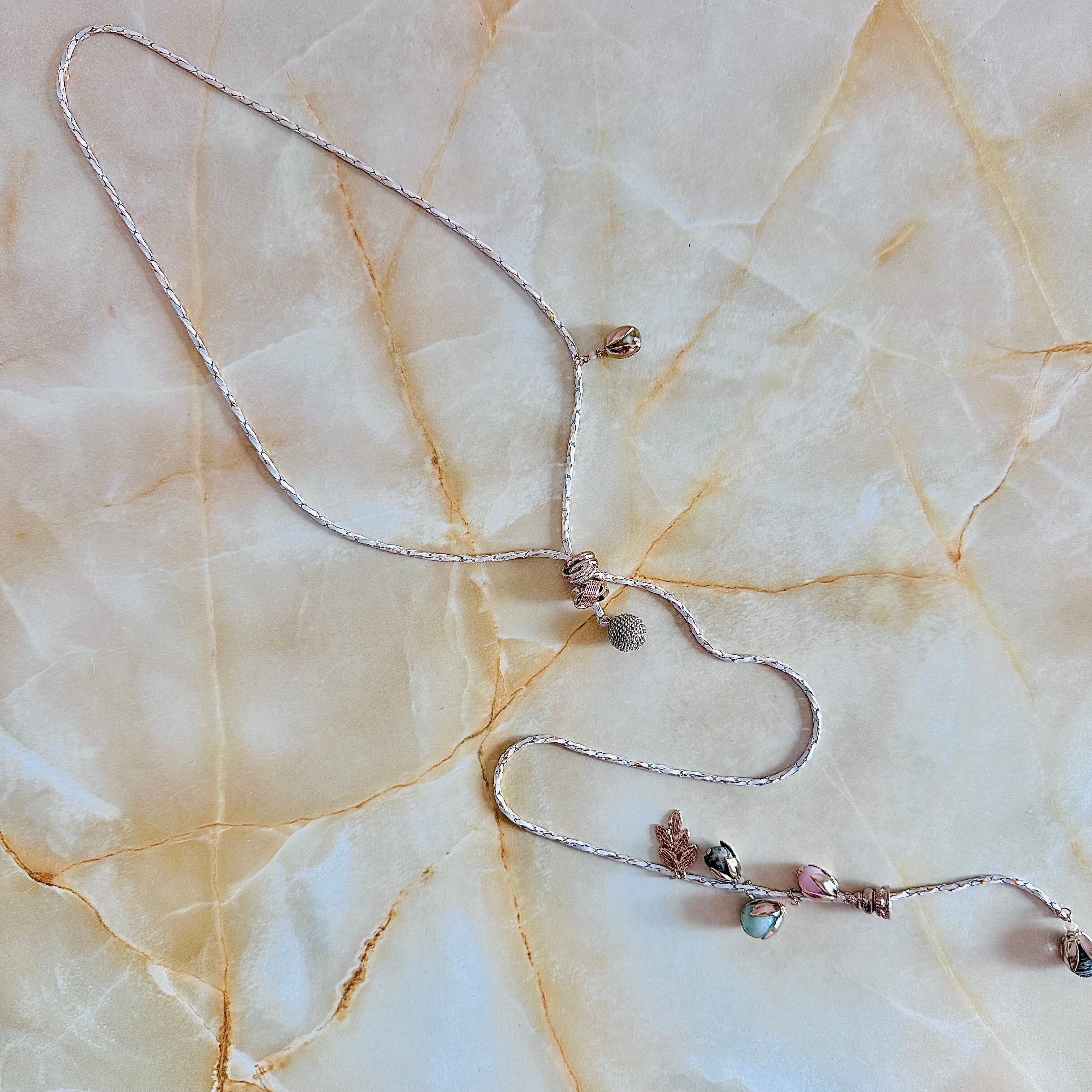 マルチカラー✖️ホワイト、ゴールドカラーのY字ロングネックレスです。