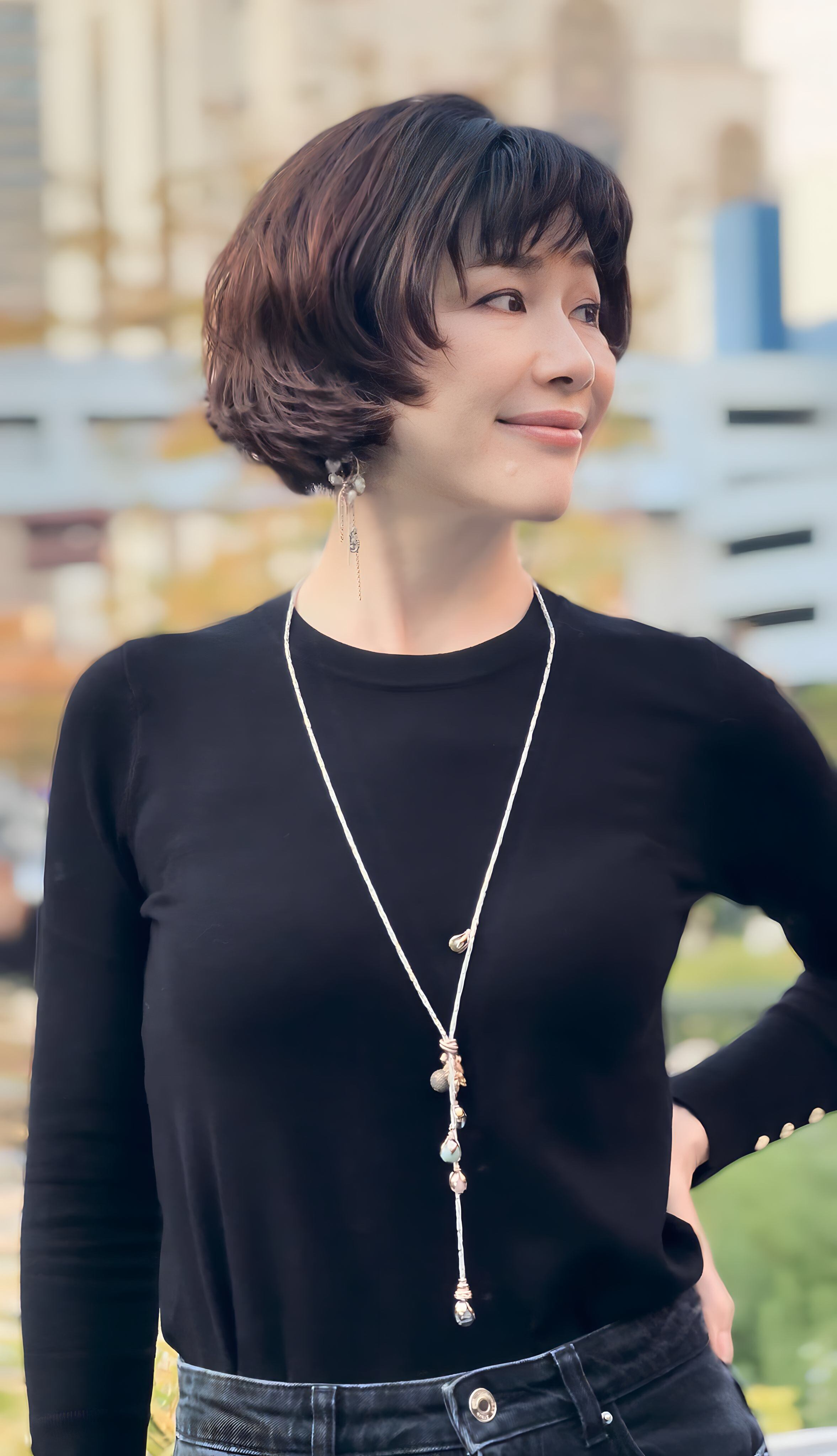 ハイゲージのシンプルニットで組み合わせて、レディーな気分を楽しんでください♡