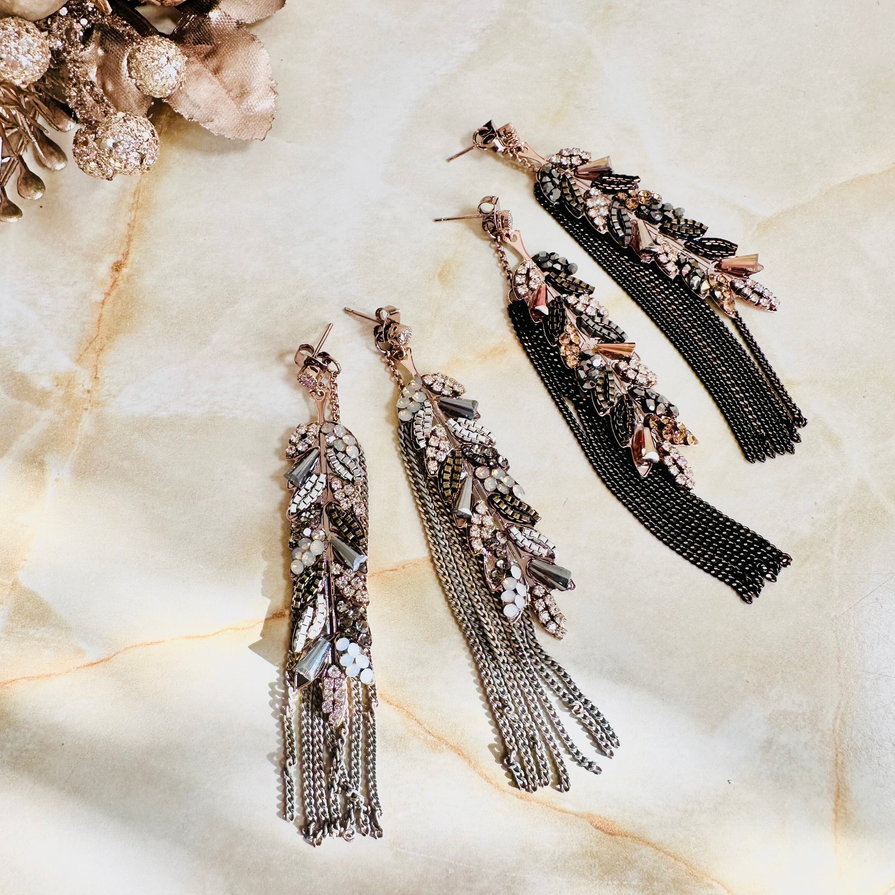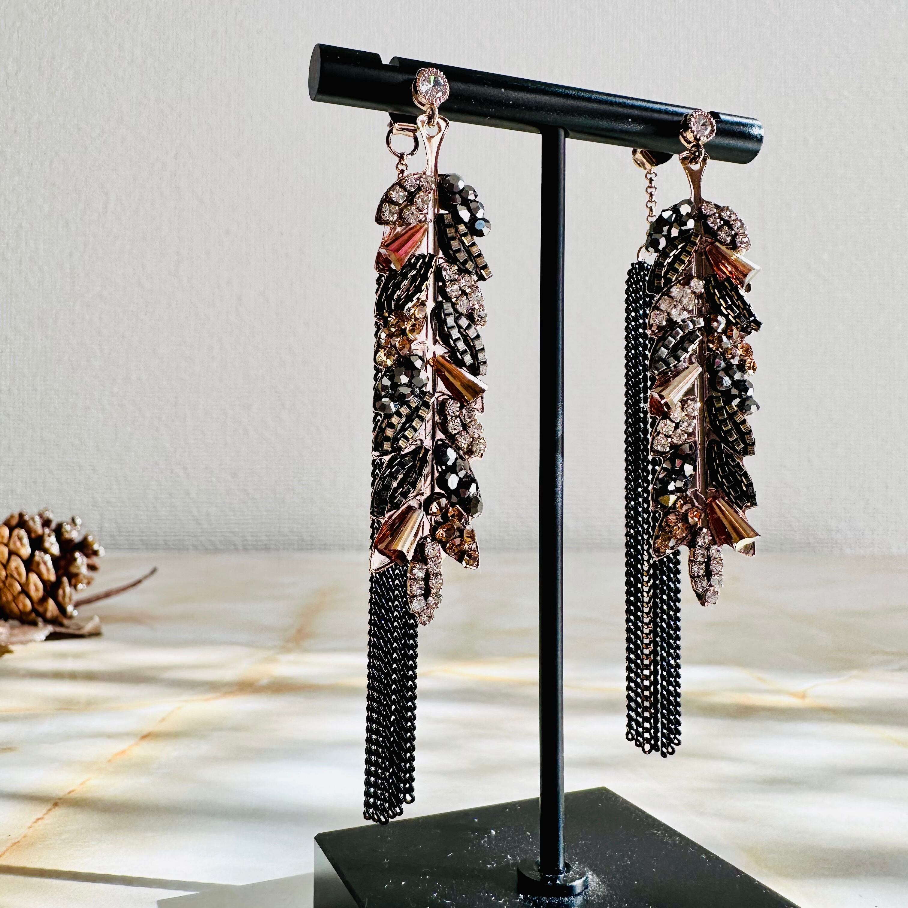 さまざまなパーツで型どられたリーフデザインが特徴的なデザインです。