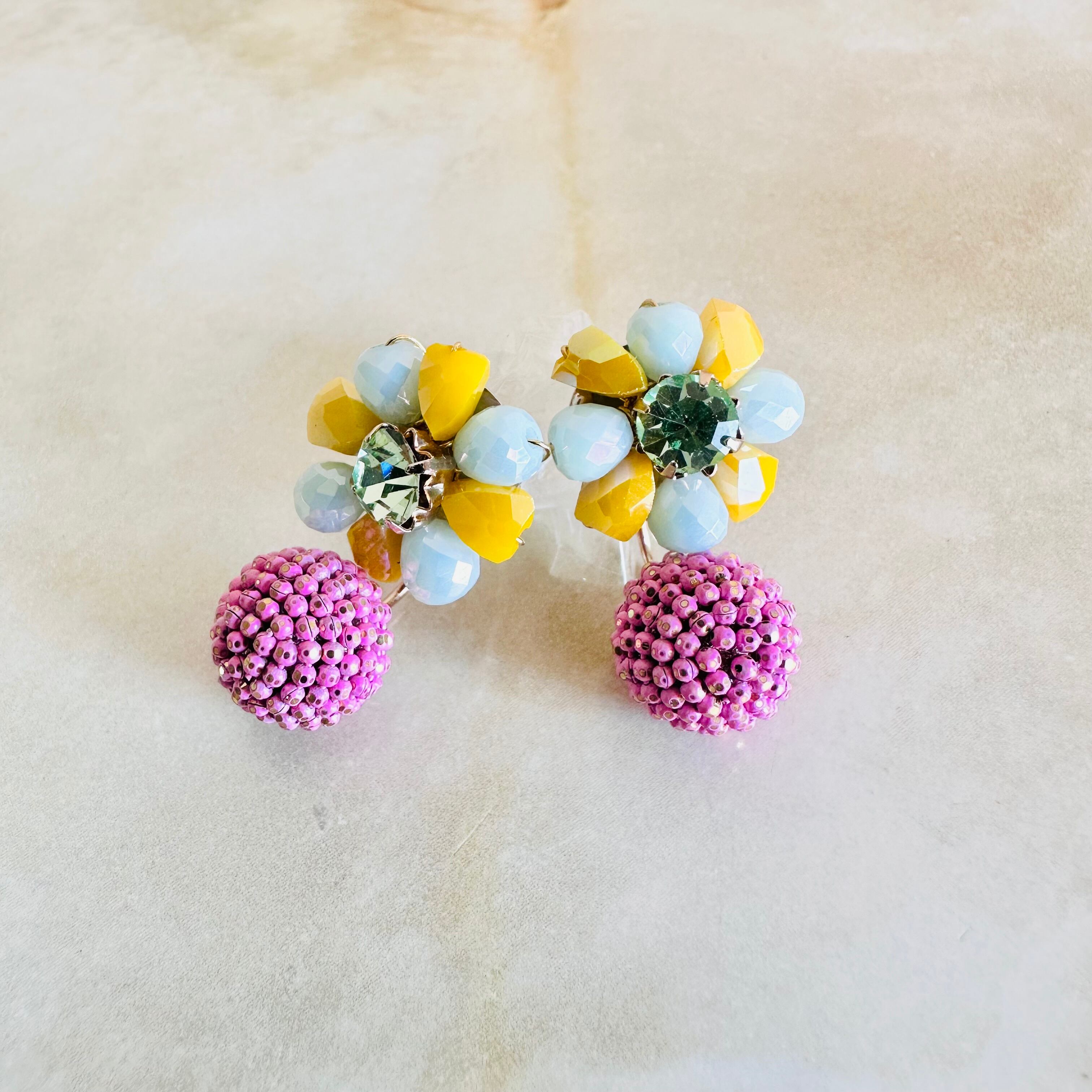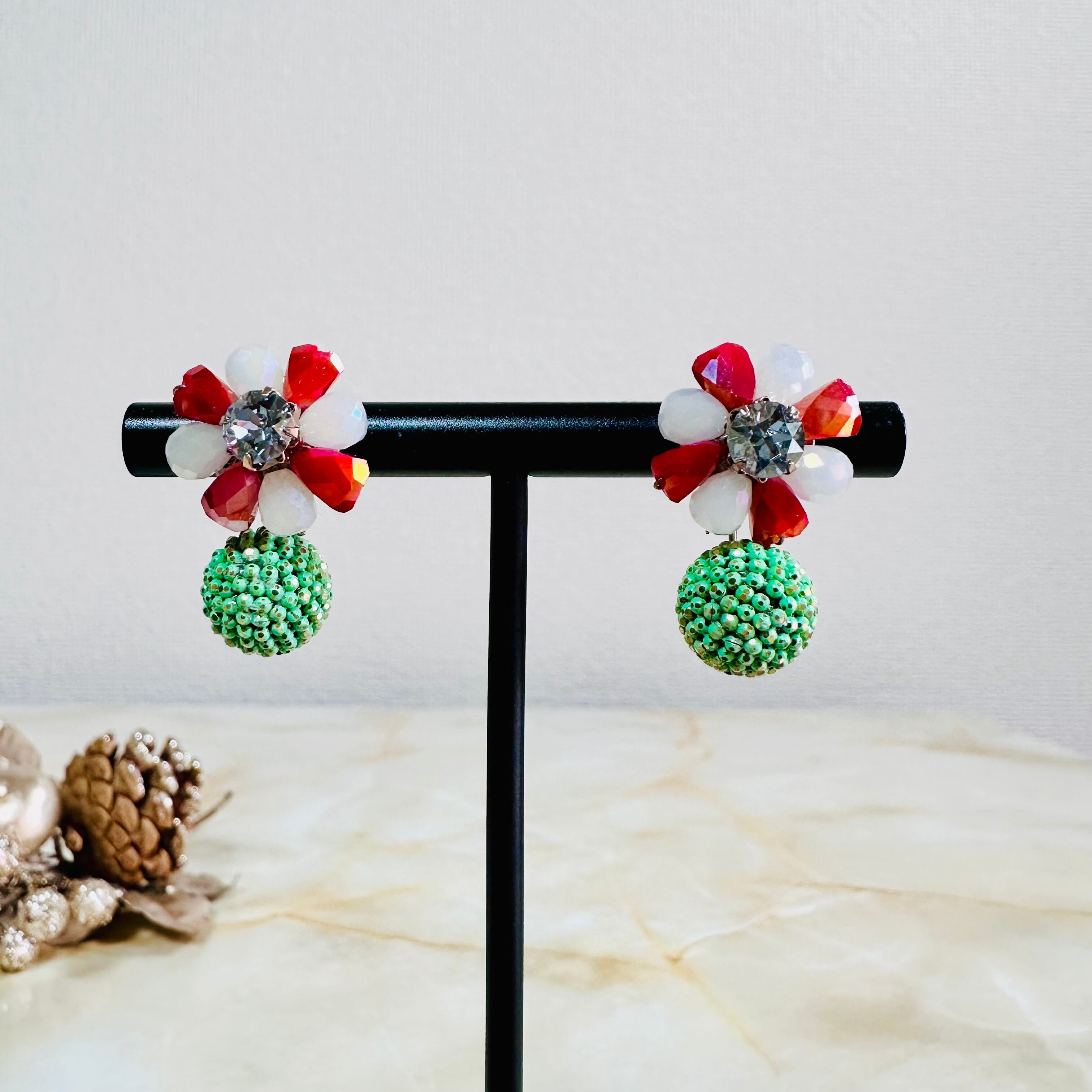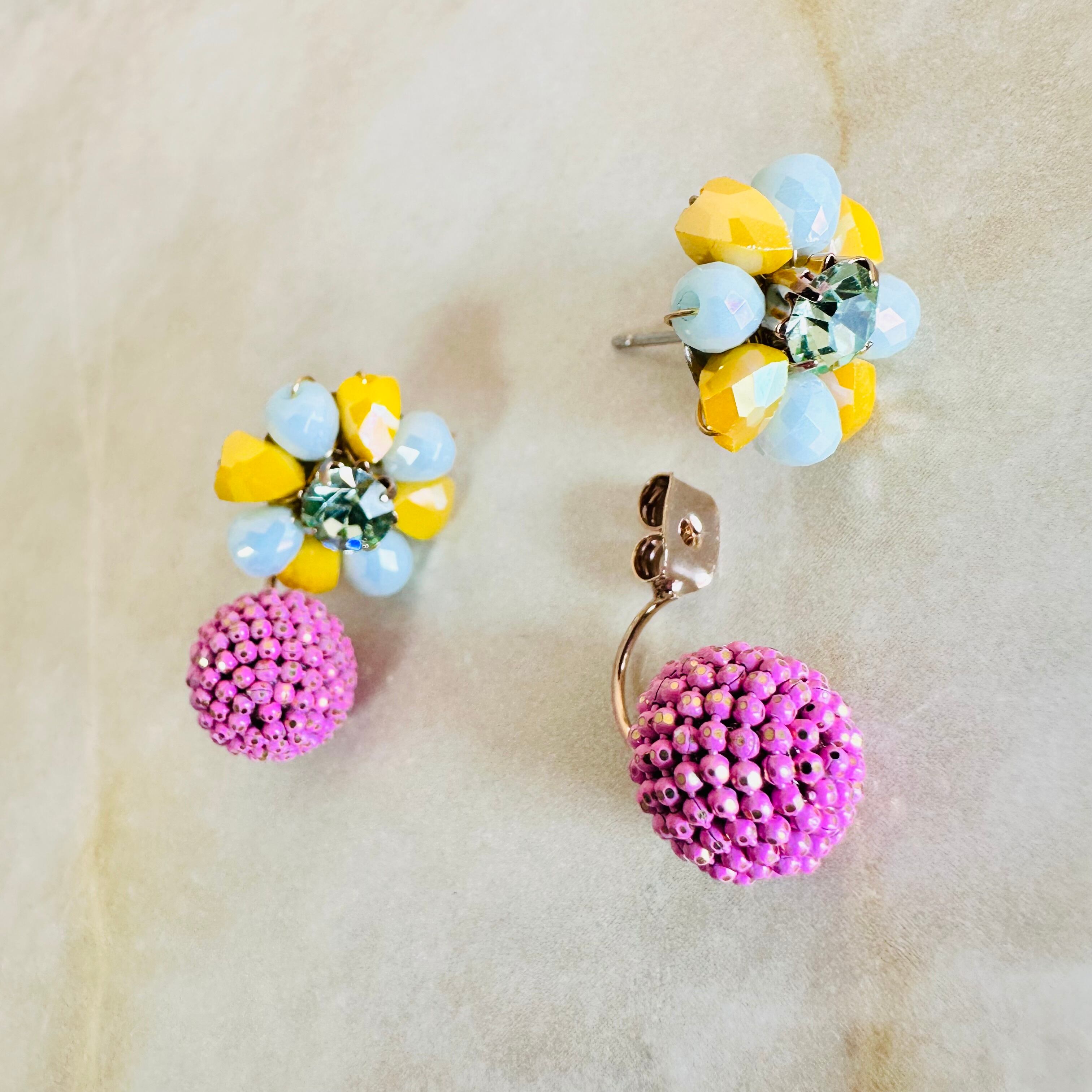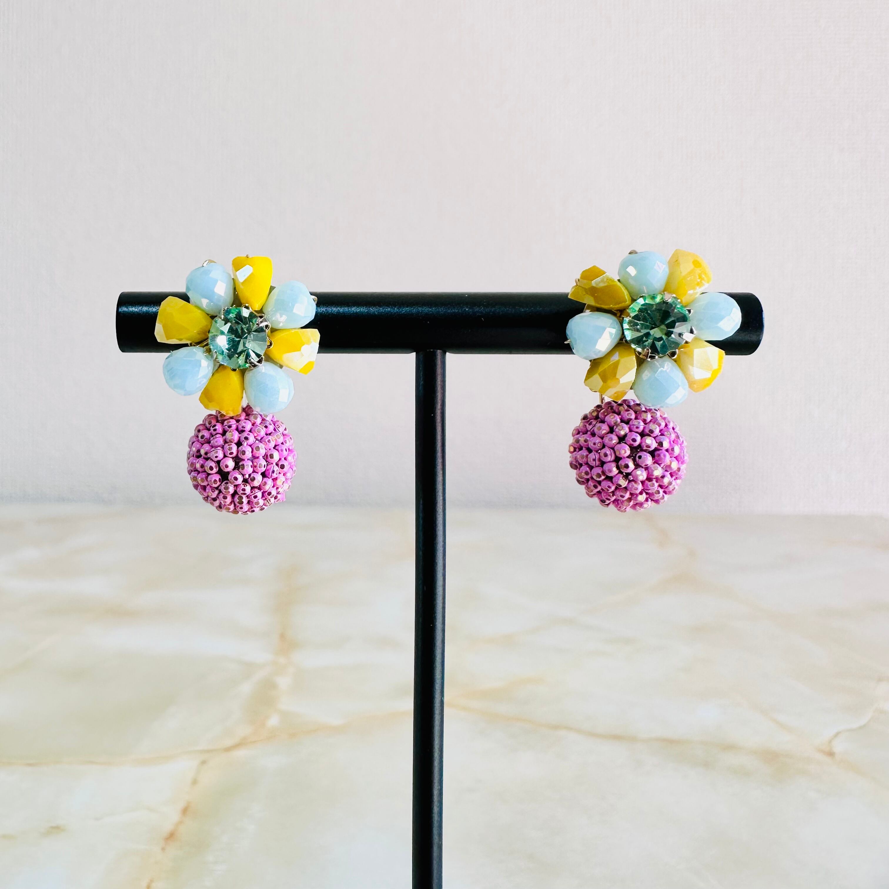 ガラスビーズとラインストーンを使用し、キャッチ側にもデザインのあるピアスです。