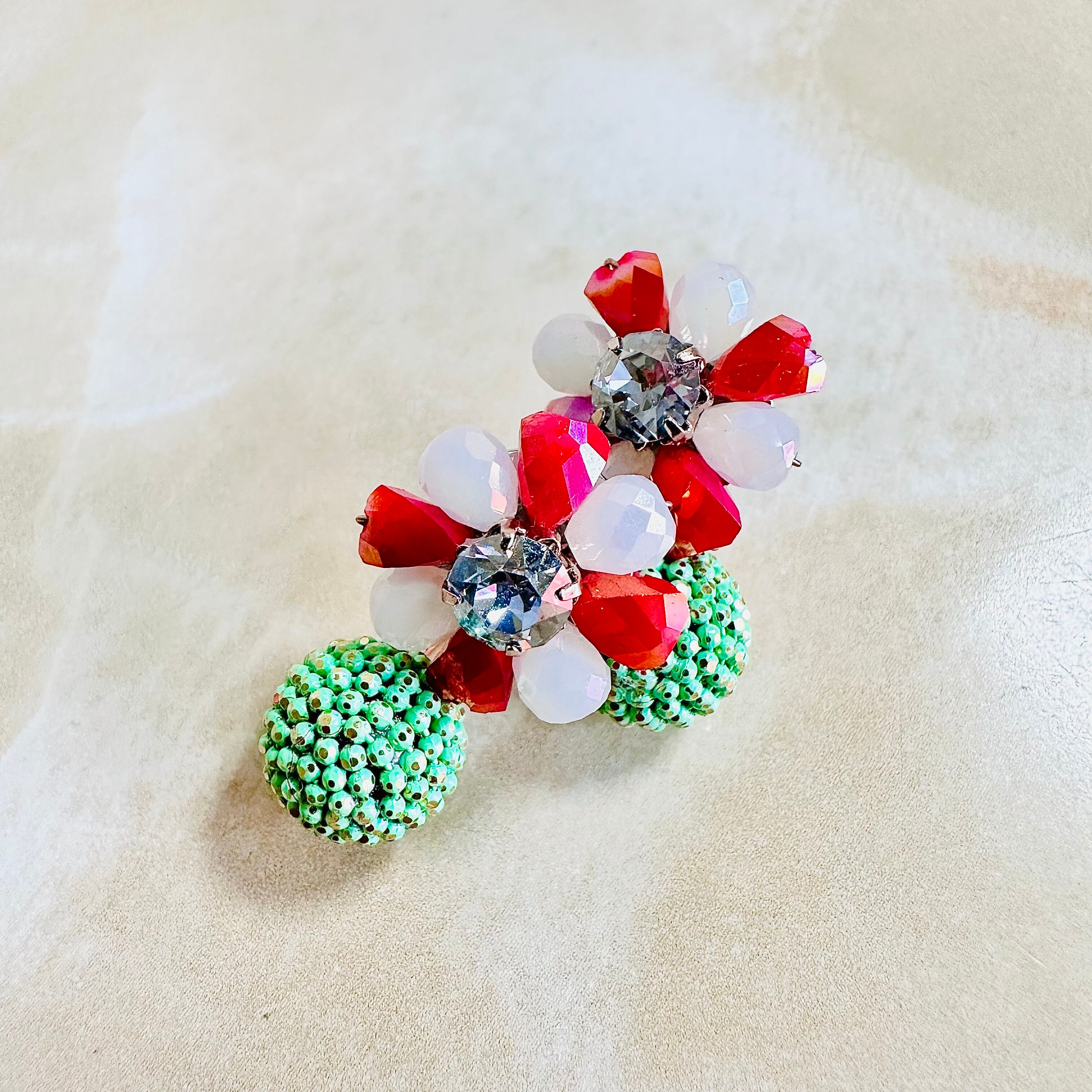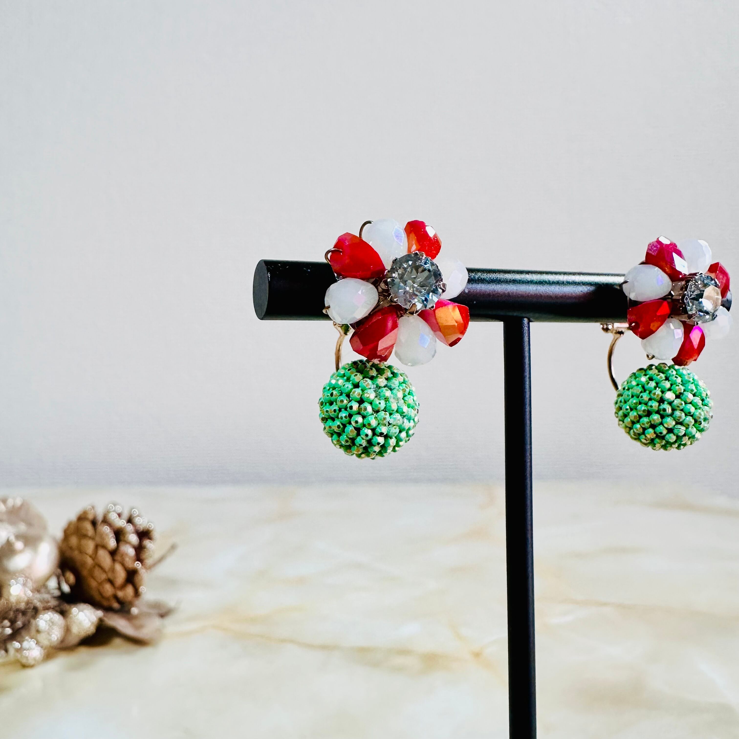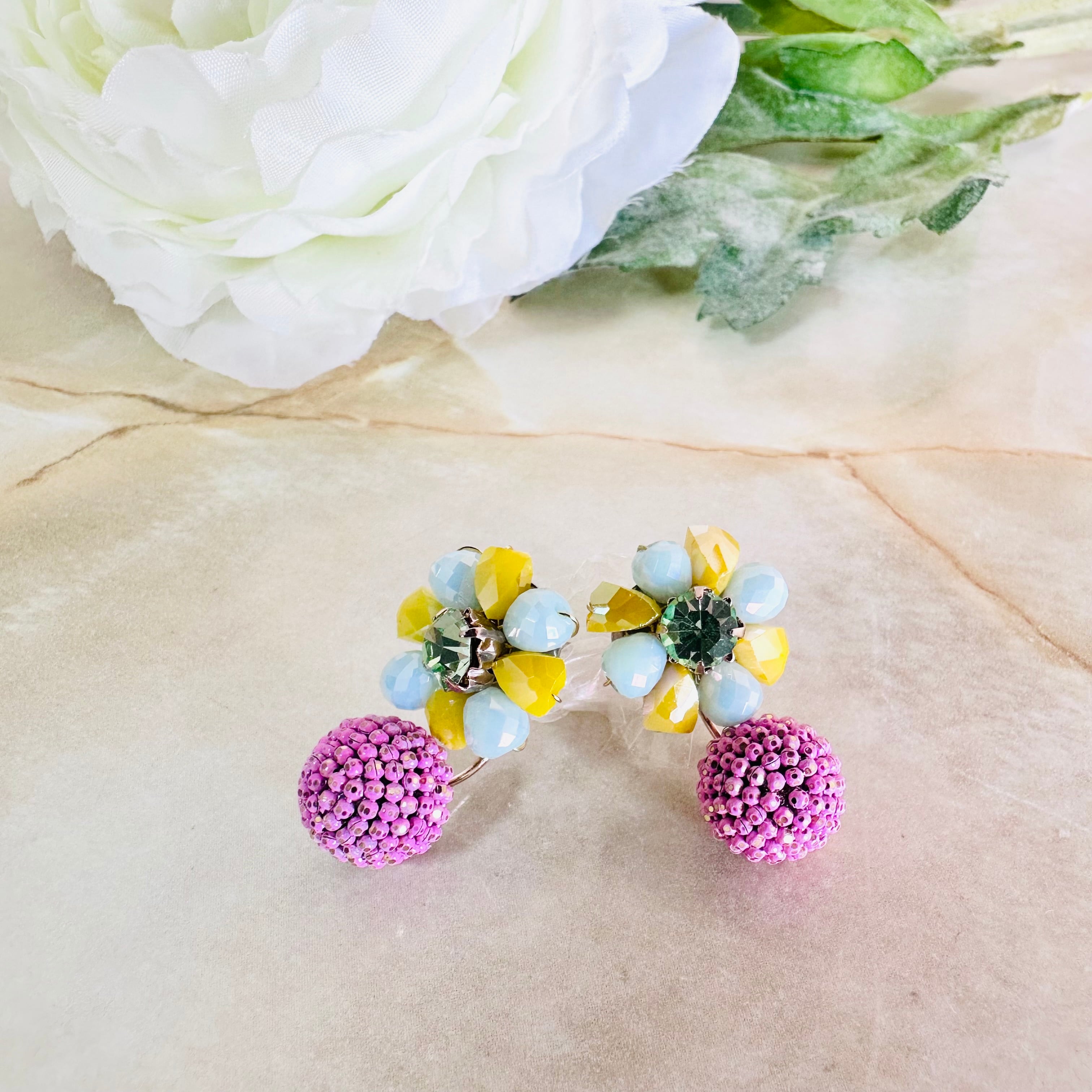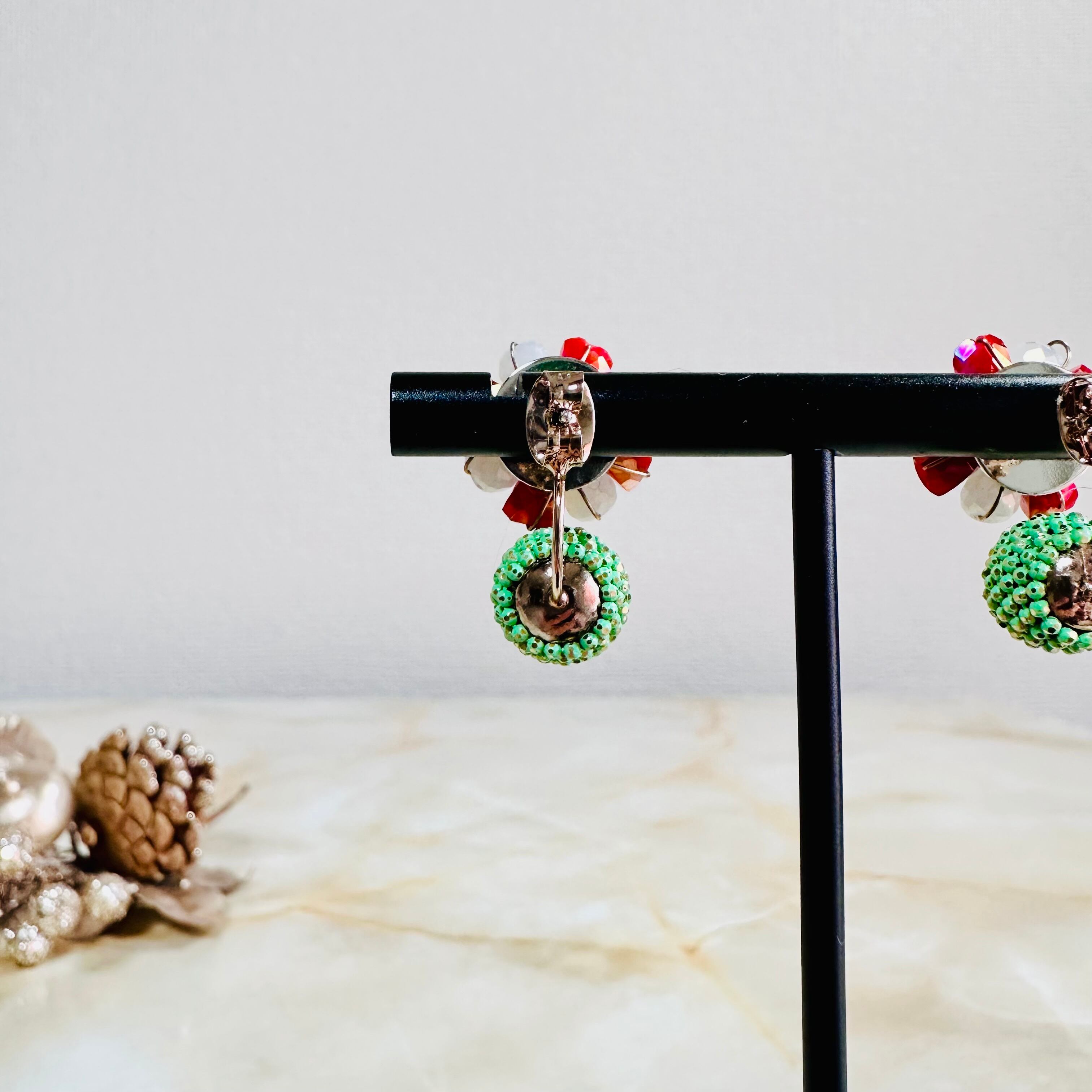 ガラスビーズとラインストーンを使用し、キャッチ側にもデザインのあるピアスです。