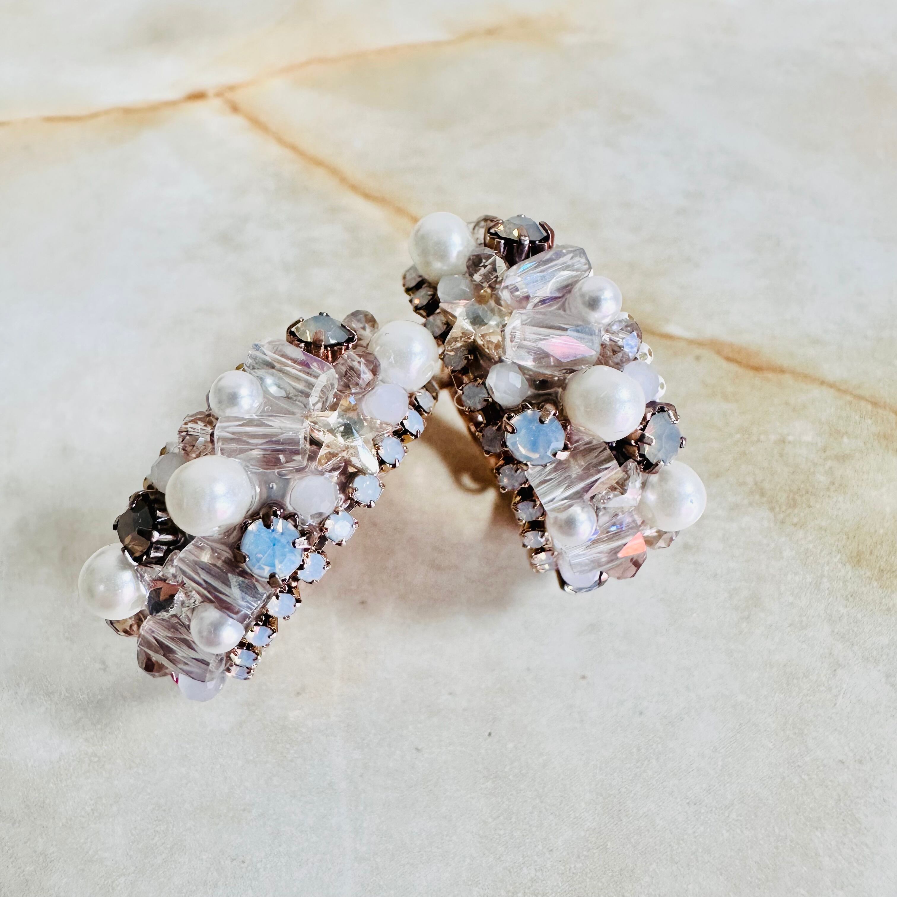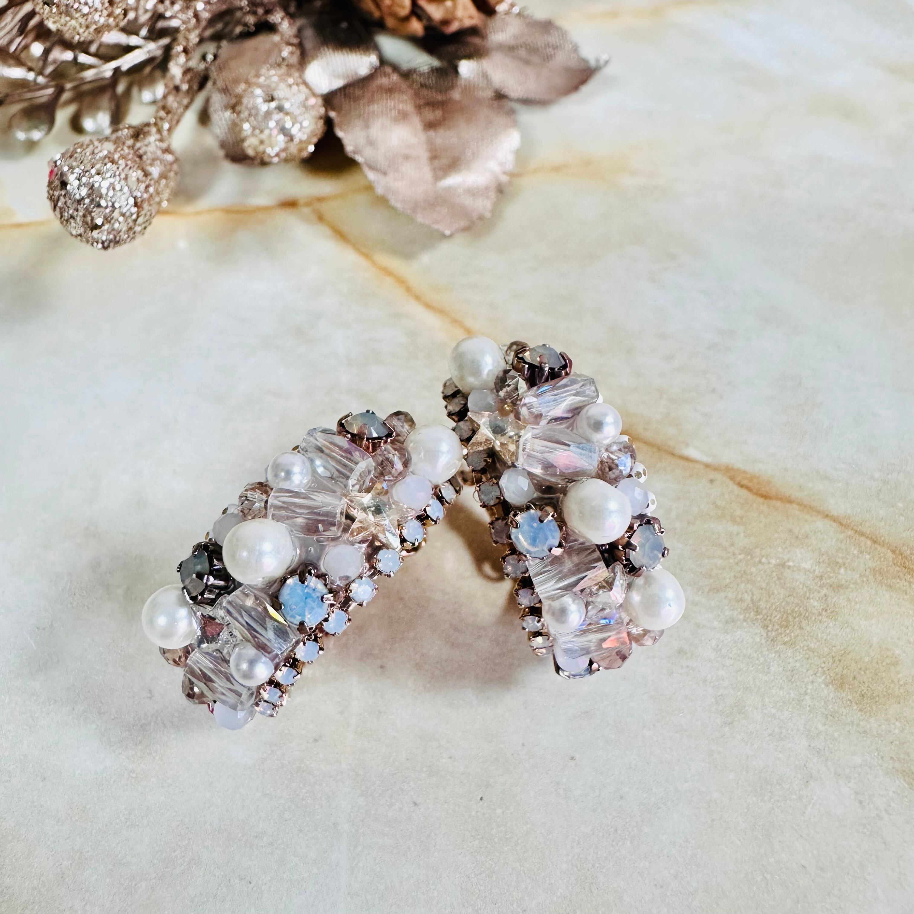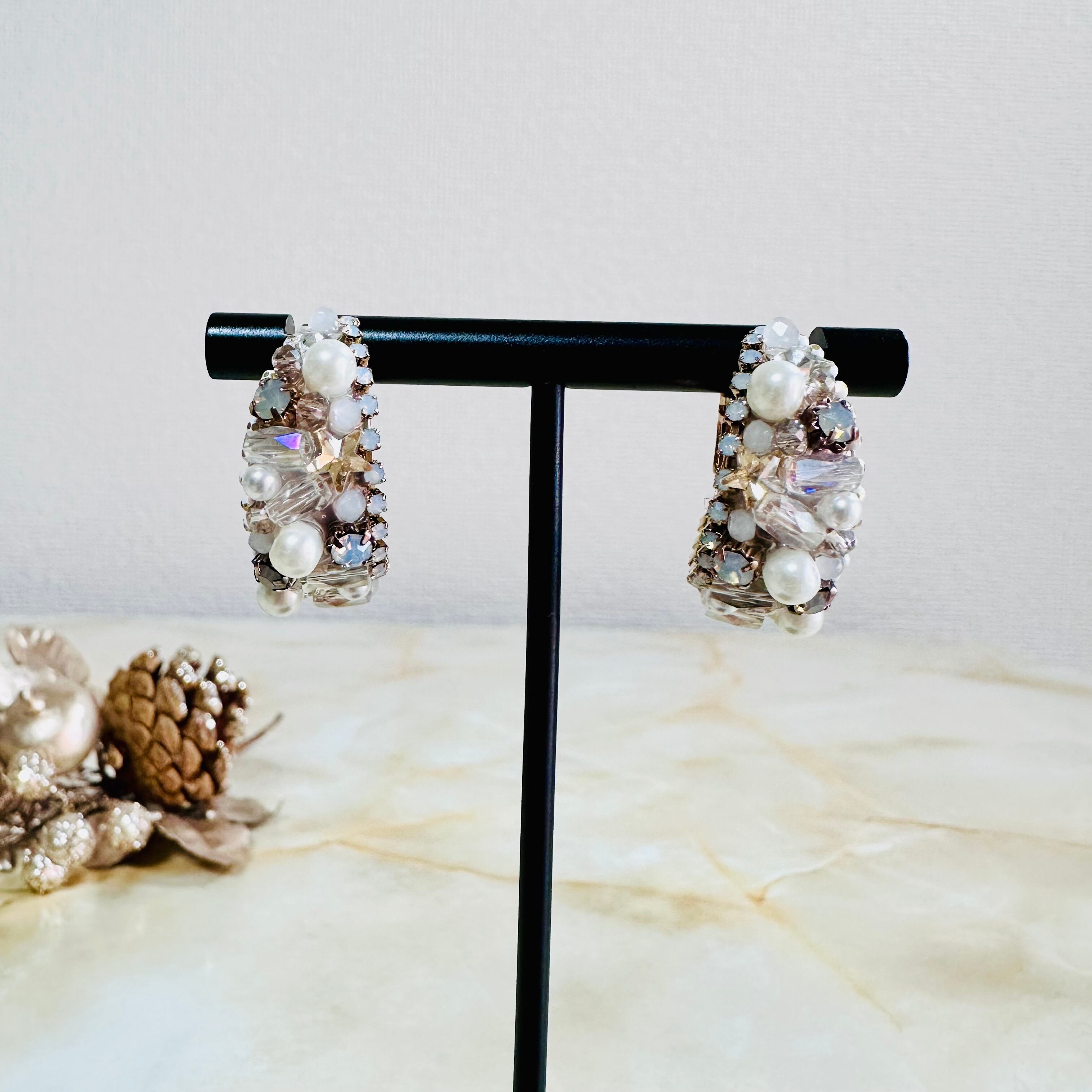 パール、グレージュ系✖️ブロンズゴールドカラーのピアスです。