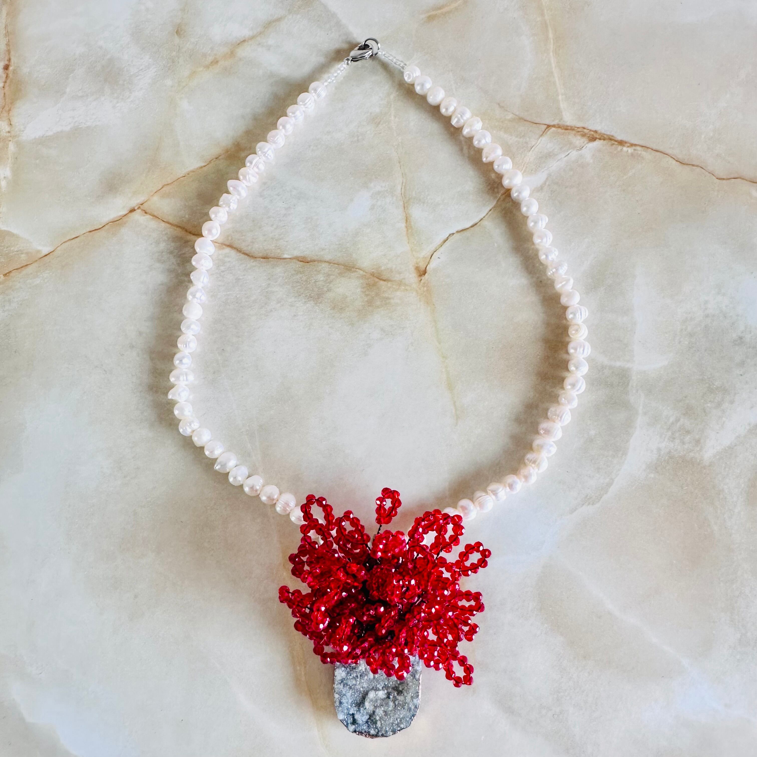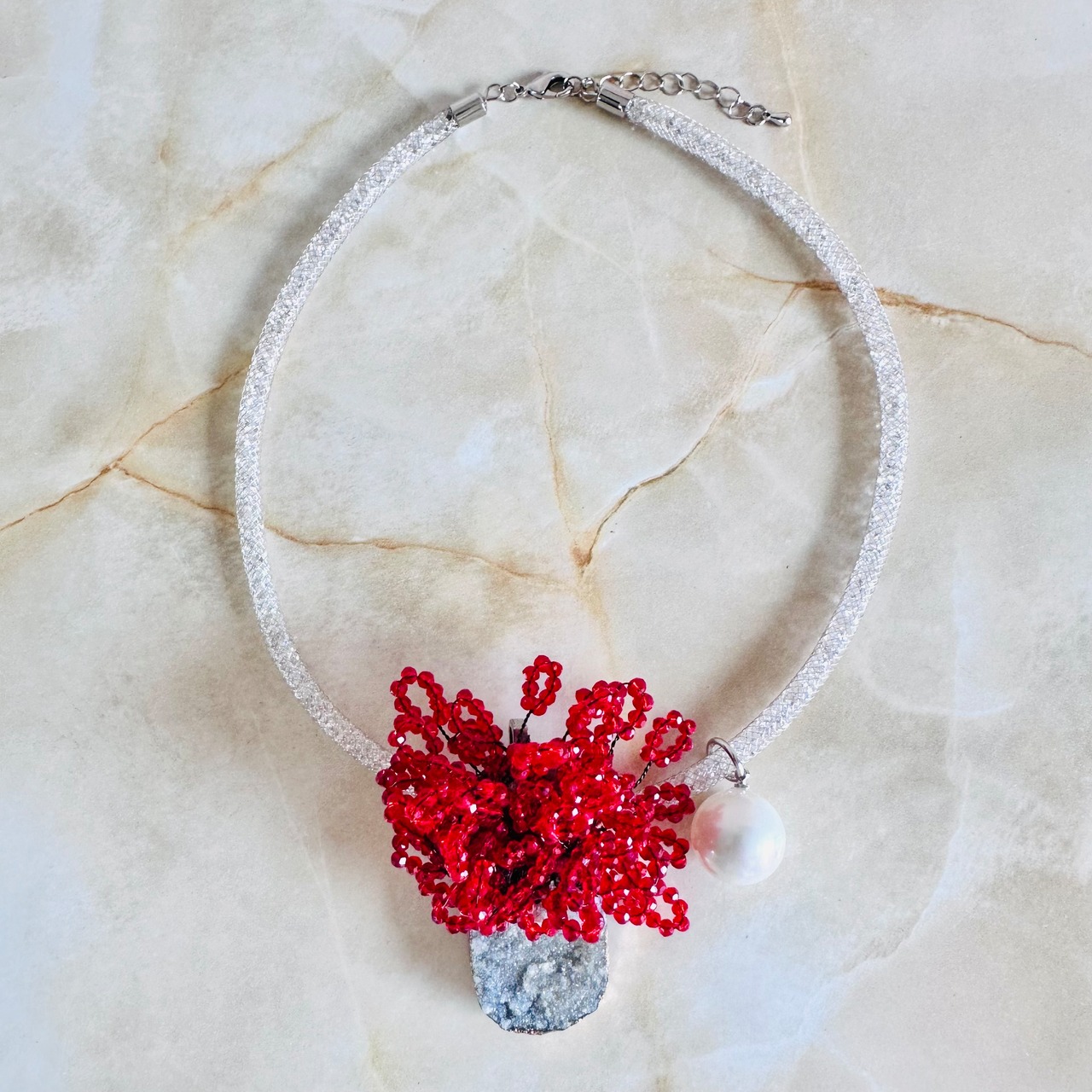 美しい天然石とチェコビーズを使用した、世界に一つだけのブローチです。