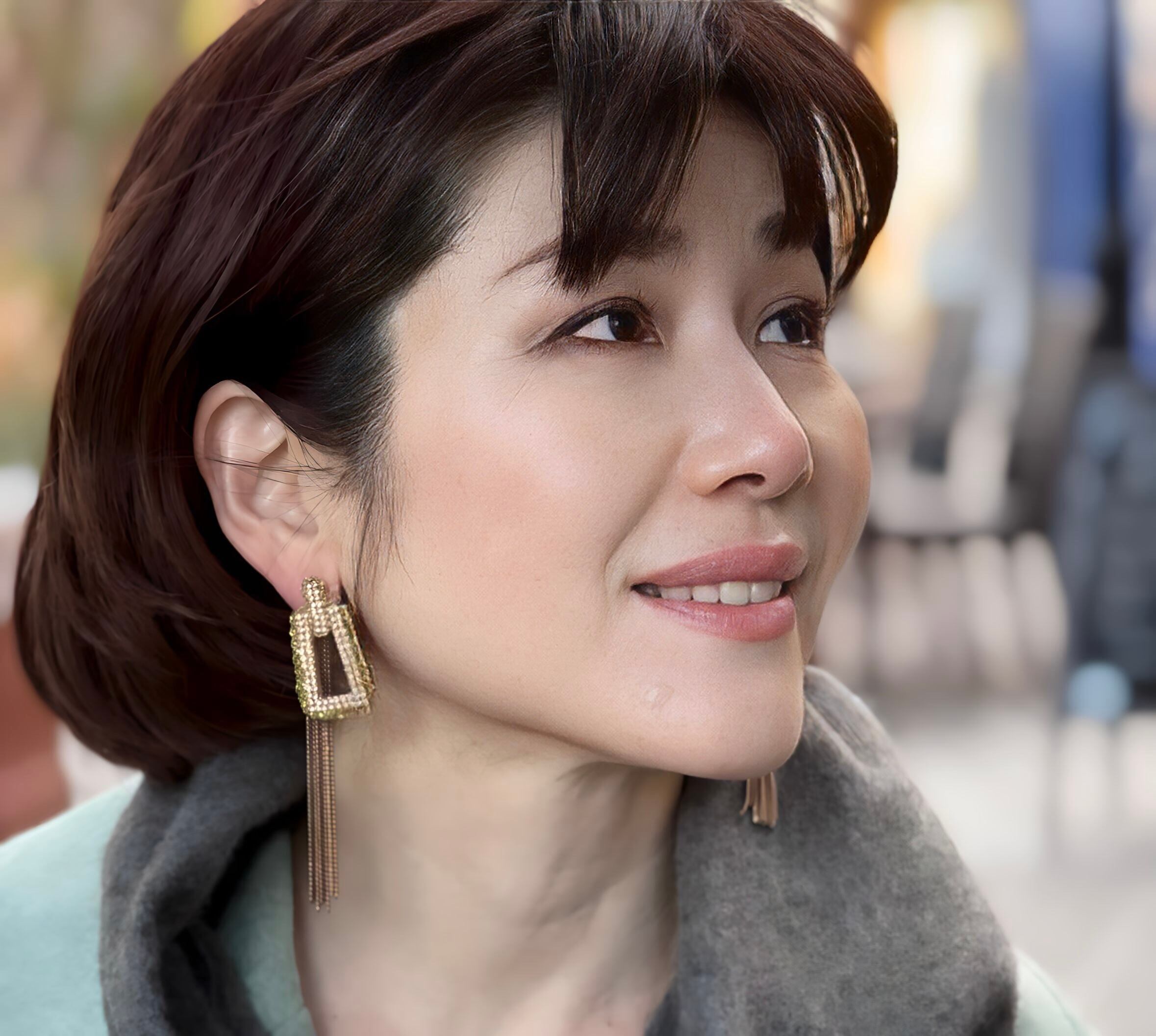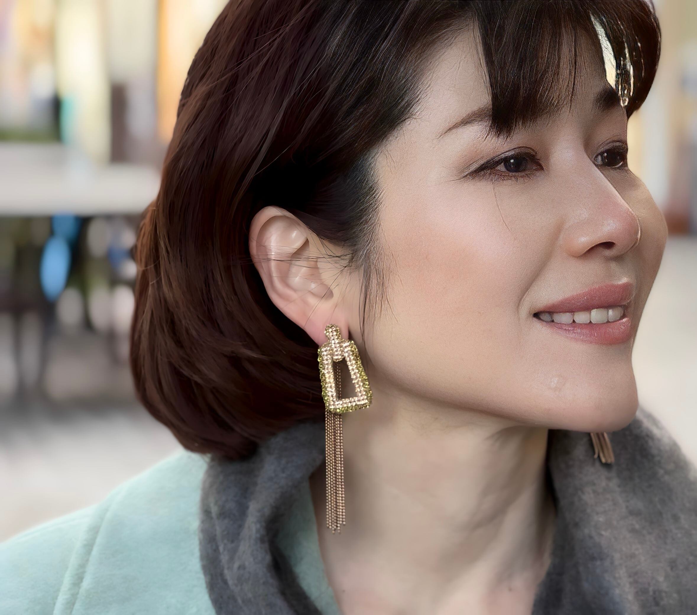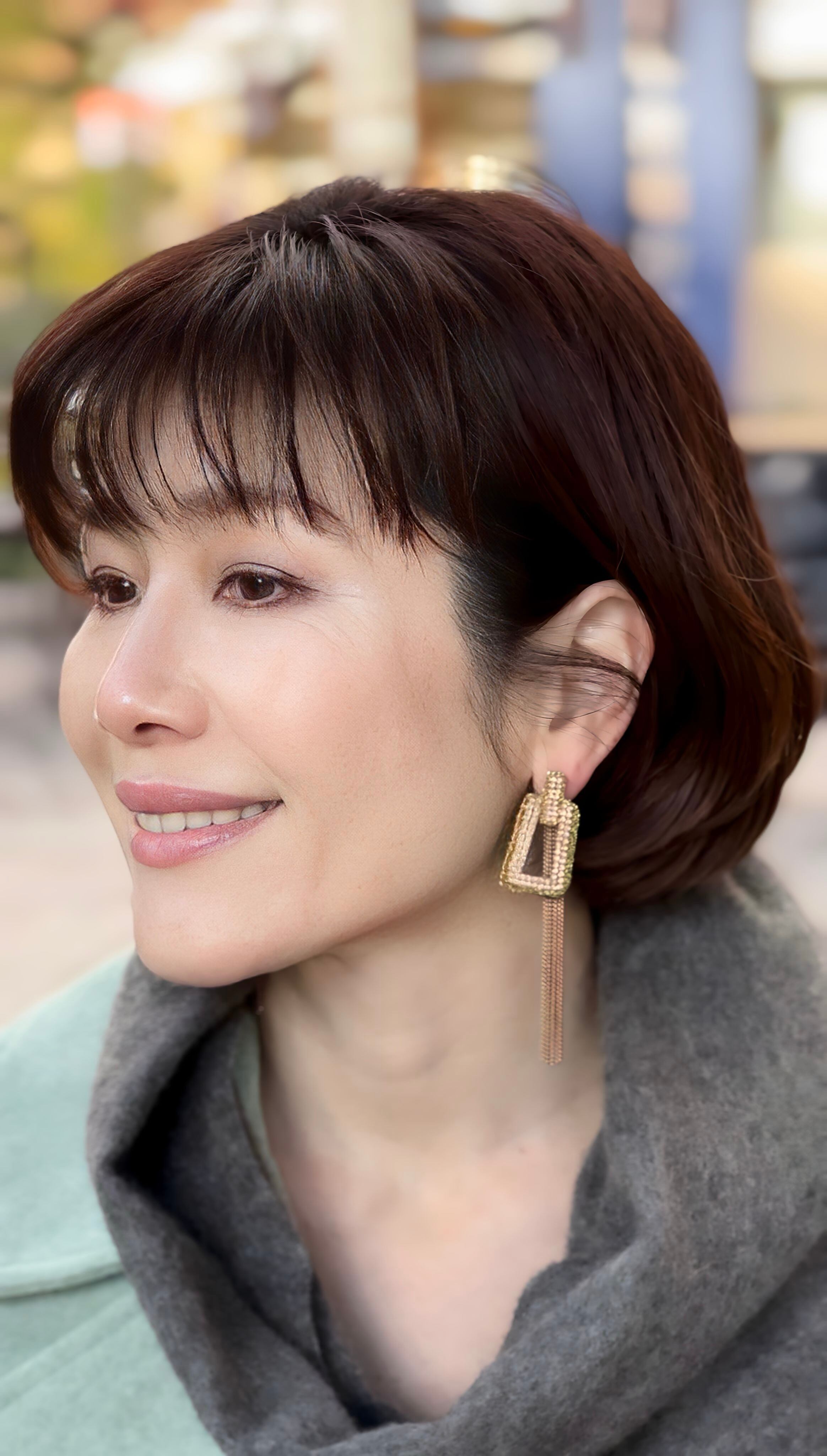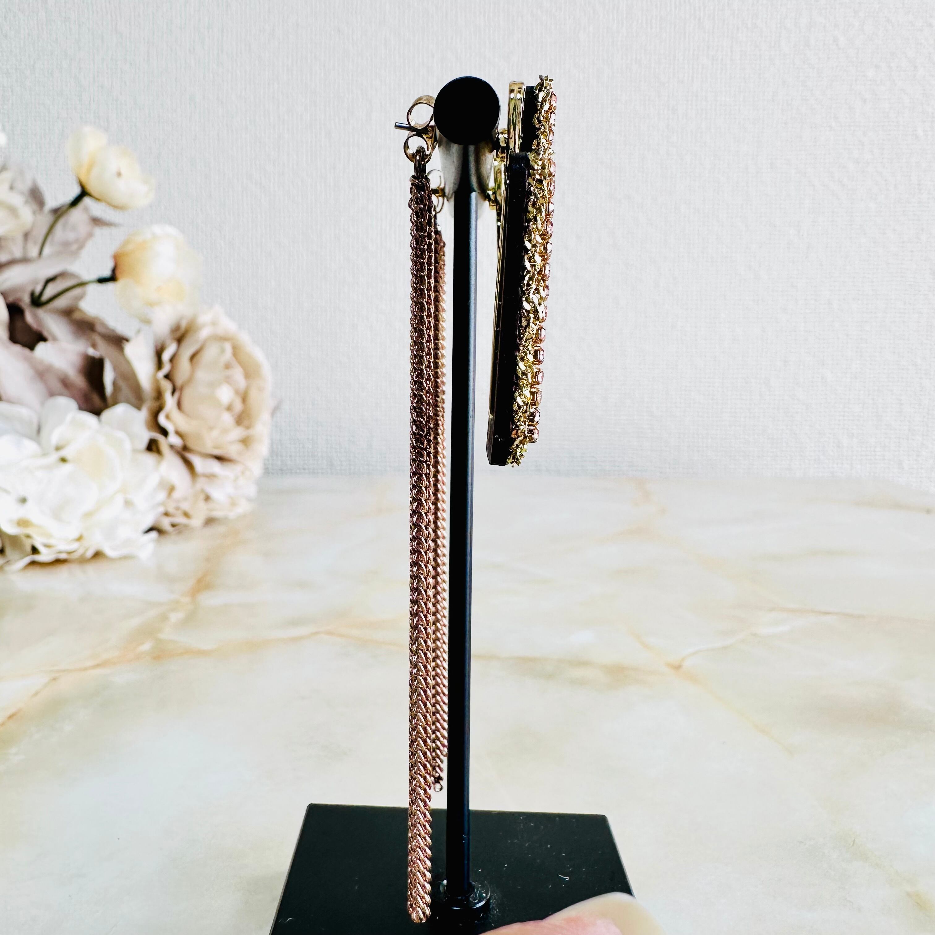 キャッチ部分に華奢なチェーンのフリンジがついた2wayデザインです。