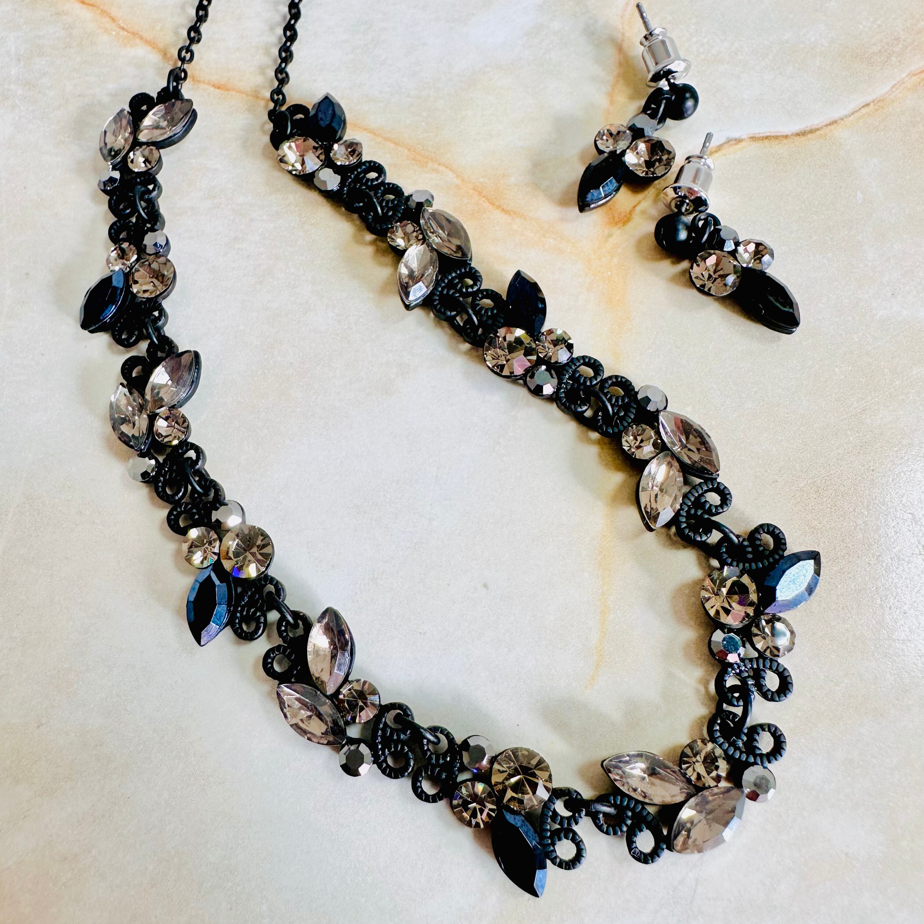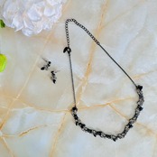 ベージュ✖️ブラックカラーのネックレスとピアスこセット商品です。