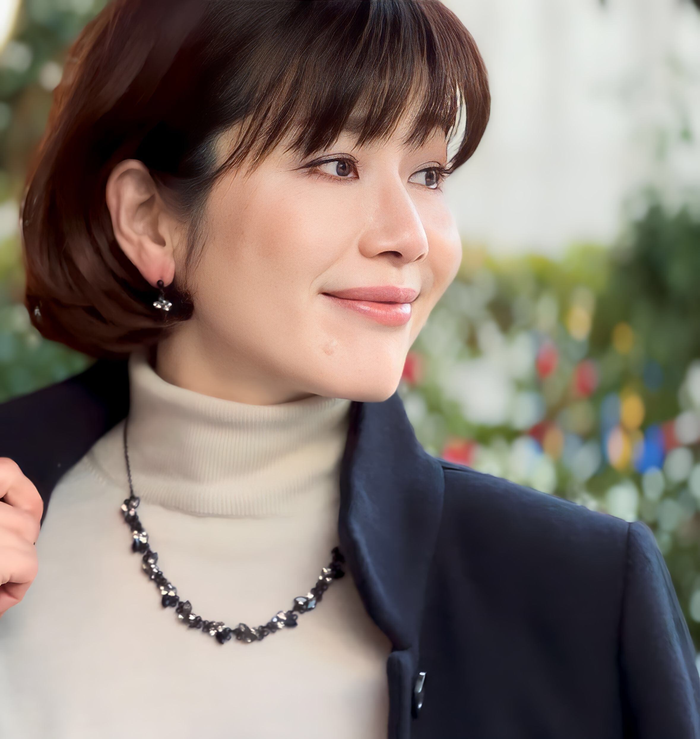 ピアスとのセットでつけるときちんと感を表現できますね!
