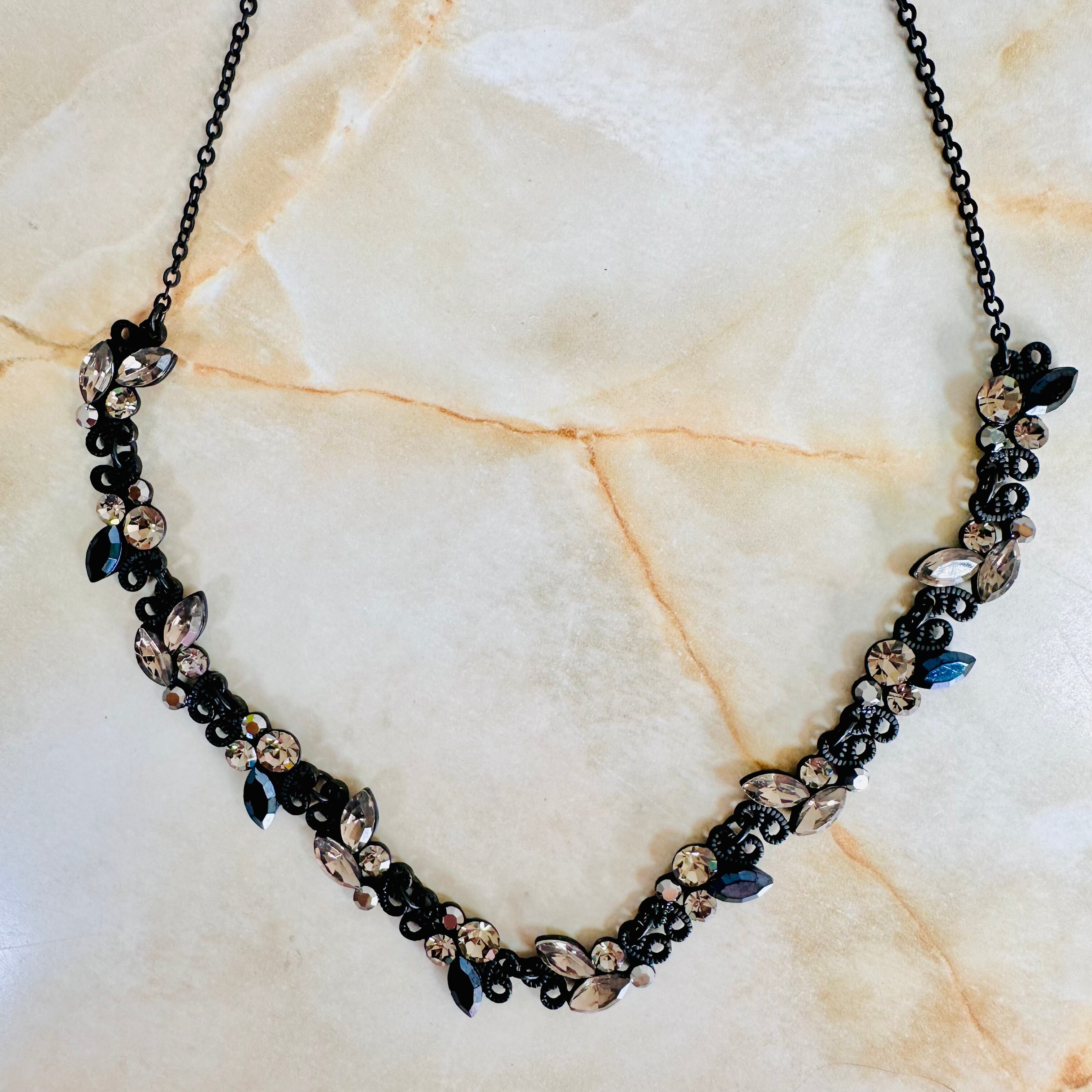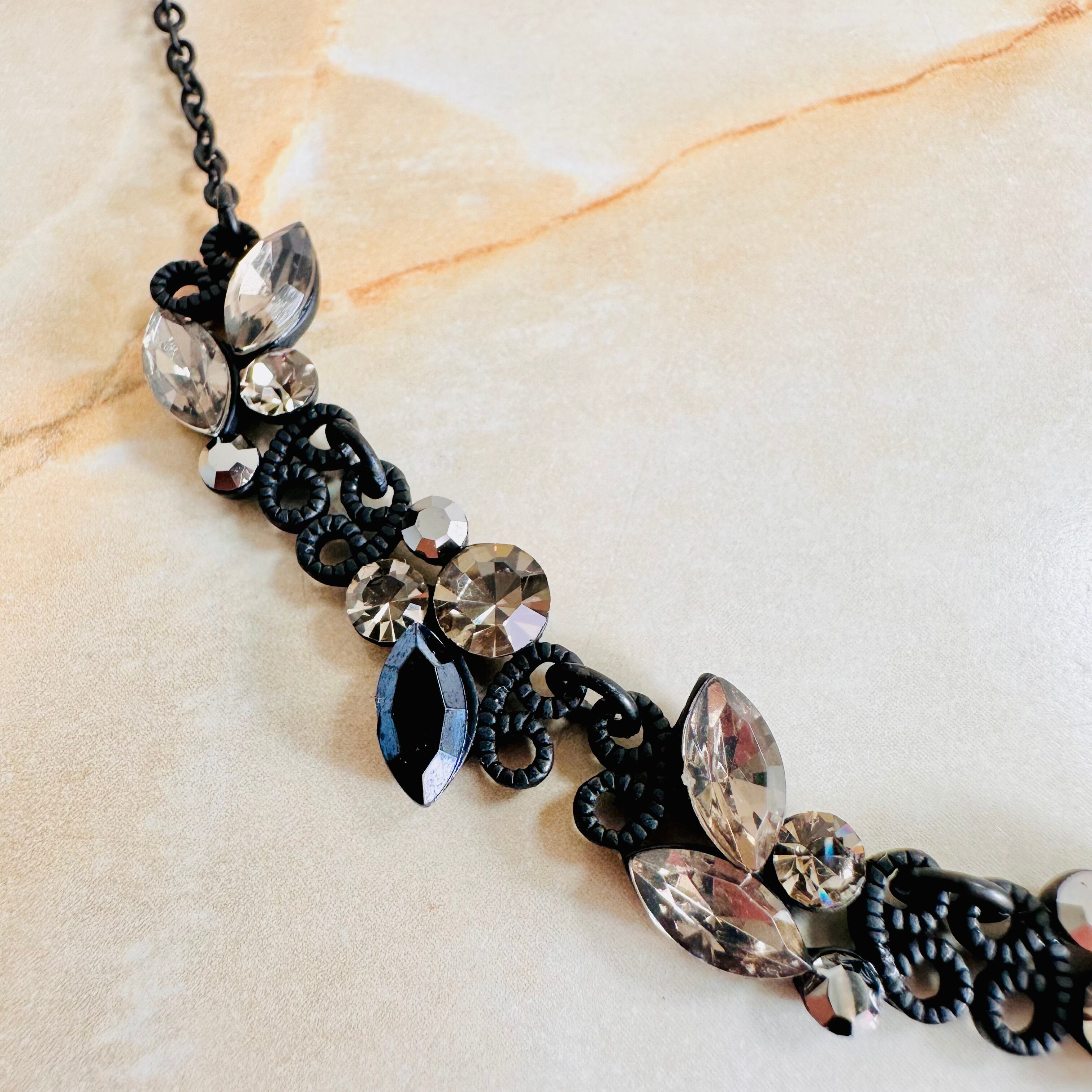 ベージュとブラックのラインストーンで作られた小ぶりでキュートなパーツが特徴的です。