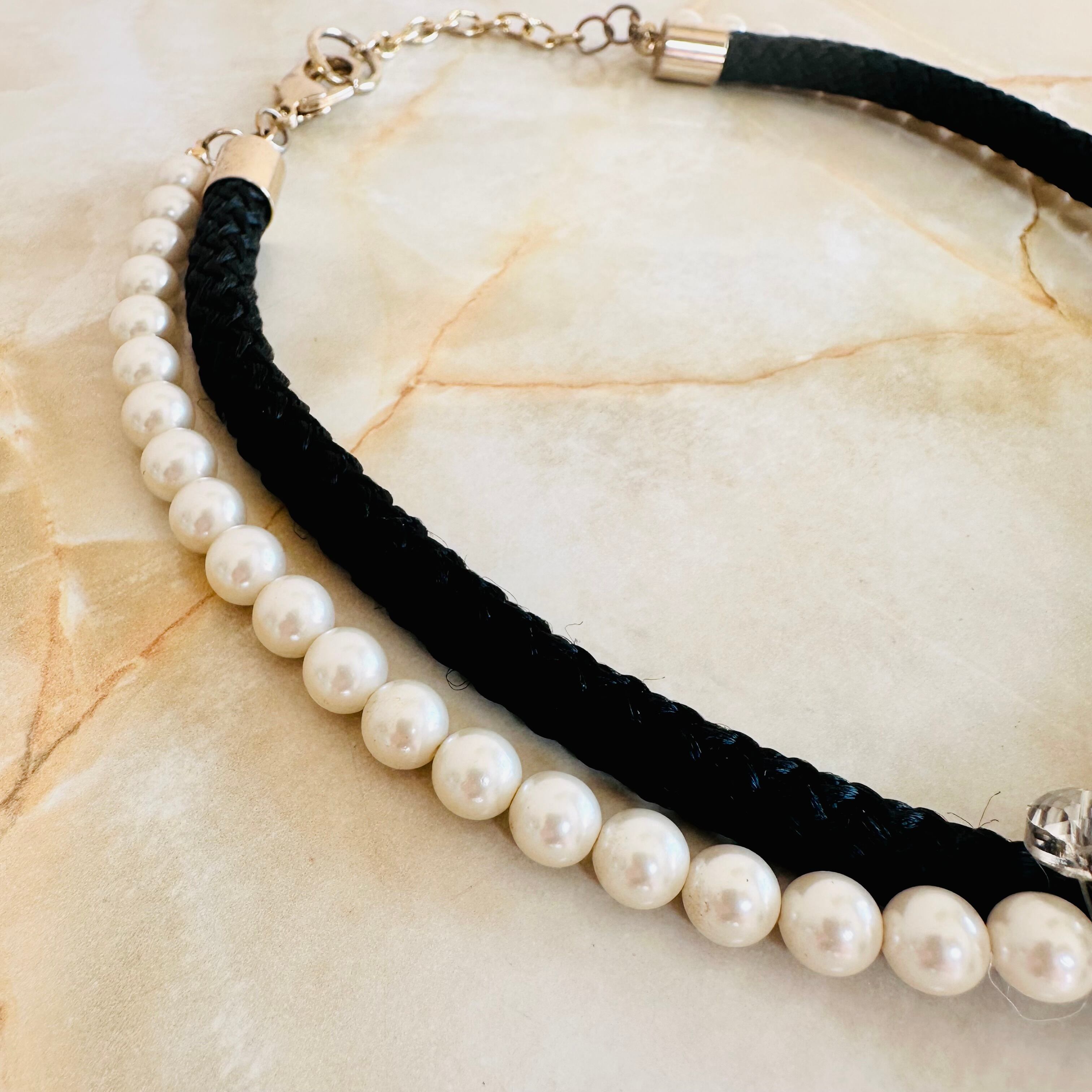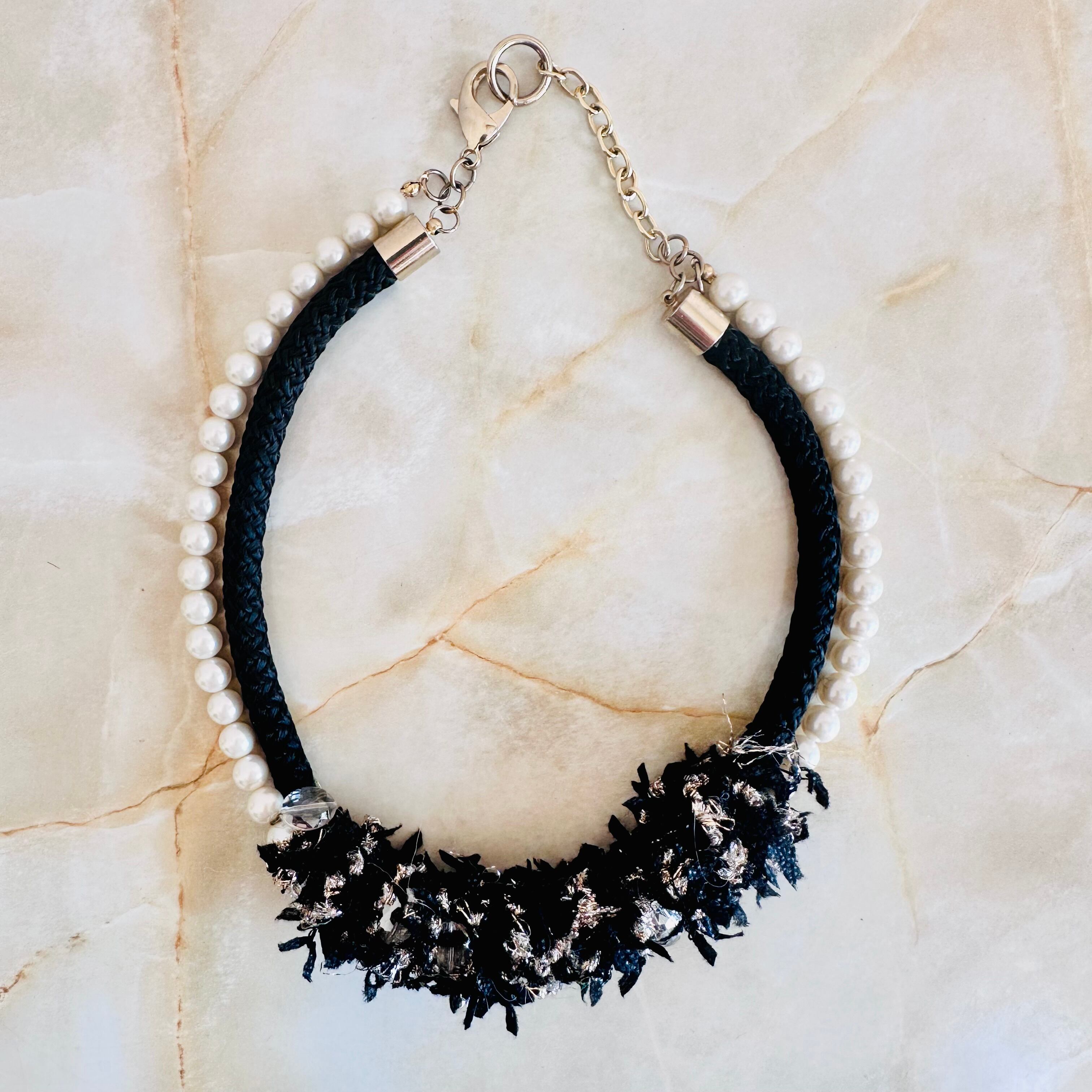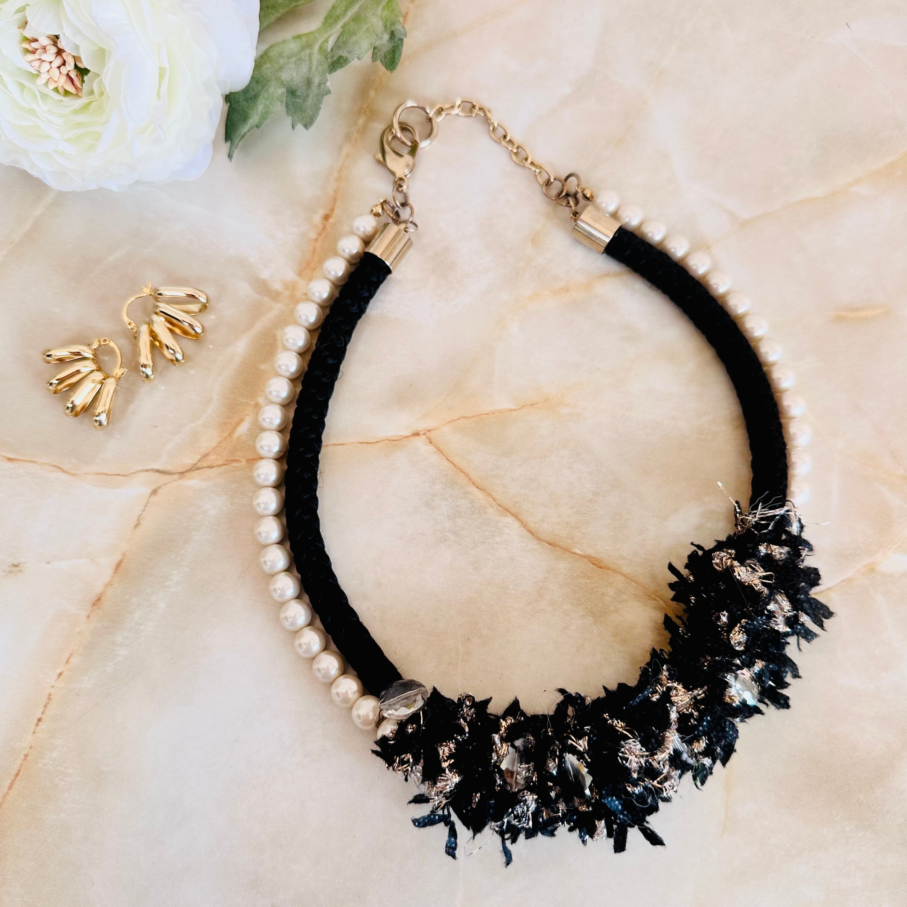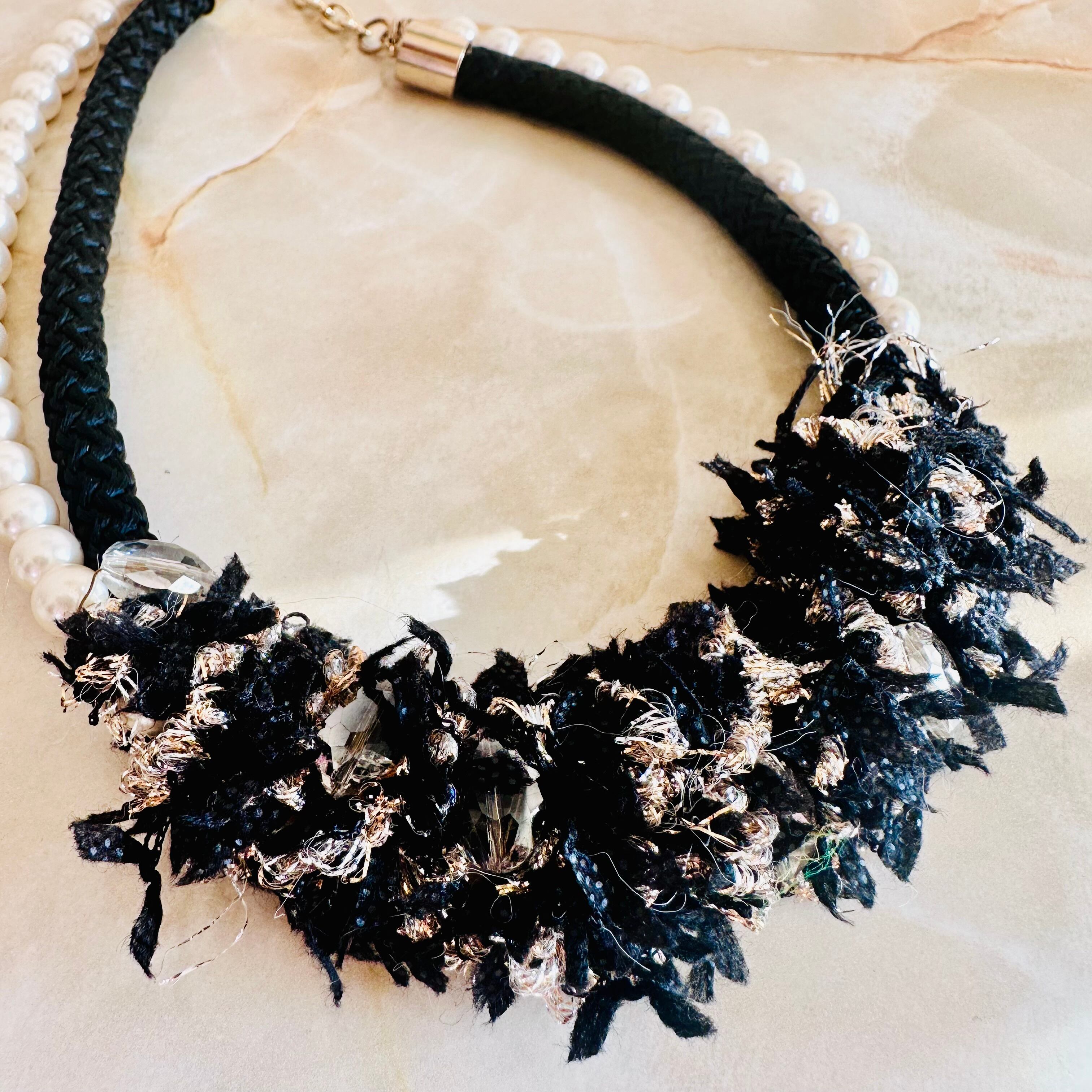 ブラック、シルバー、ゴールド、クリア、パール✖️アンティークゴールドカラーのネックレスです。