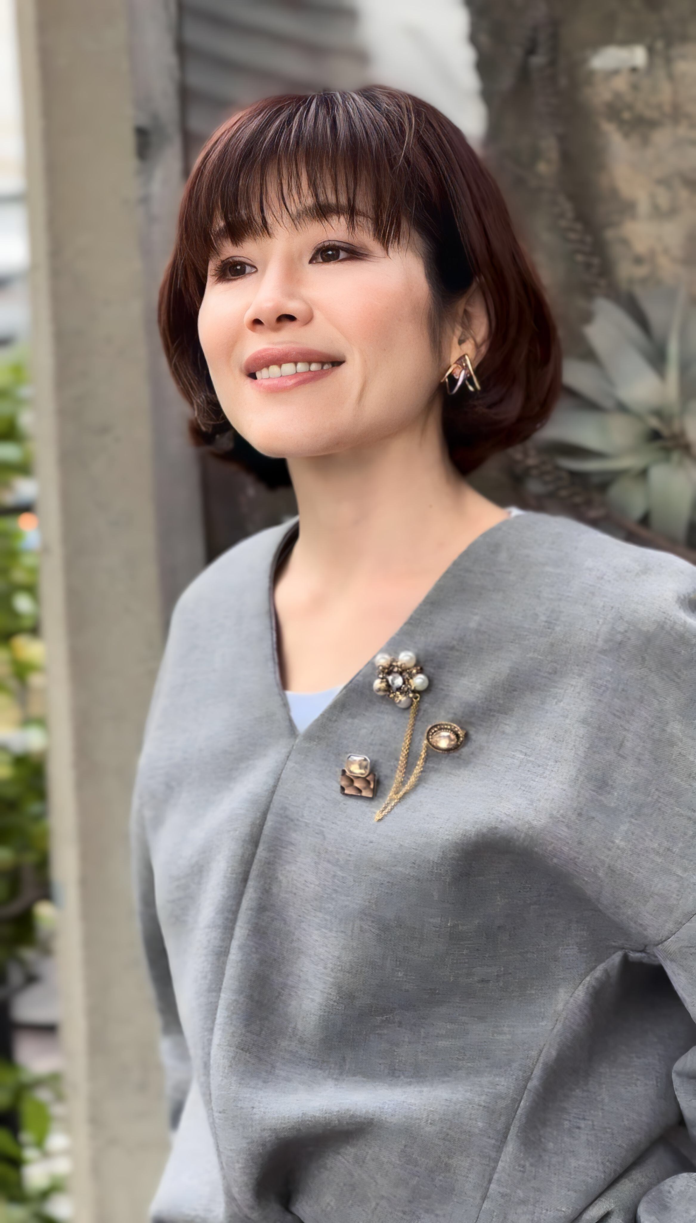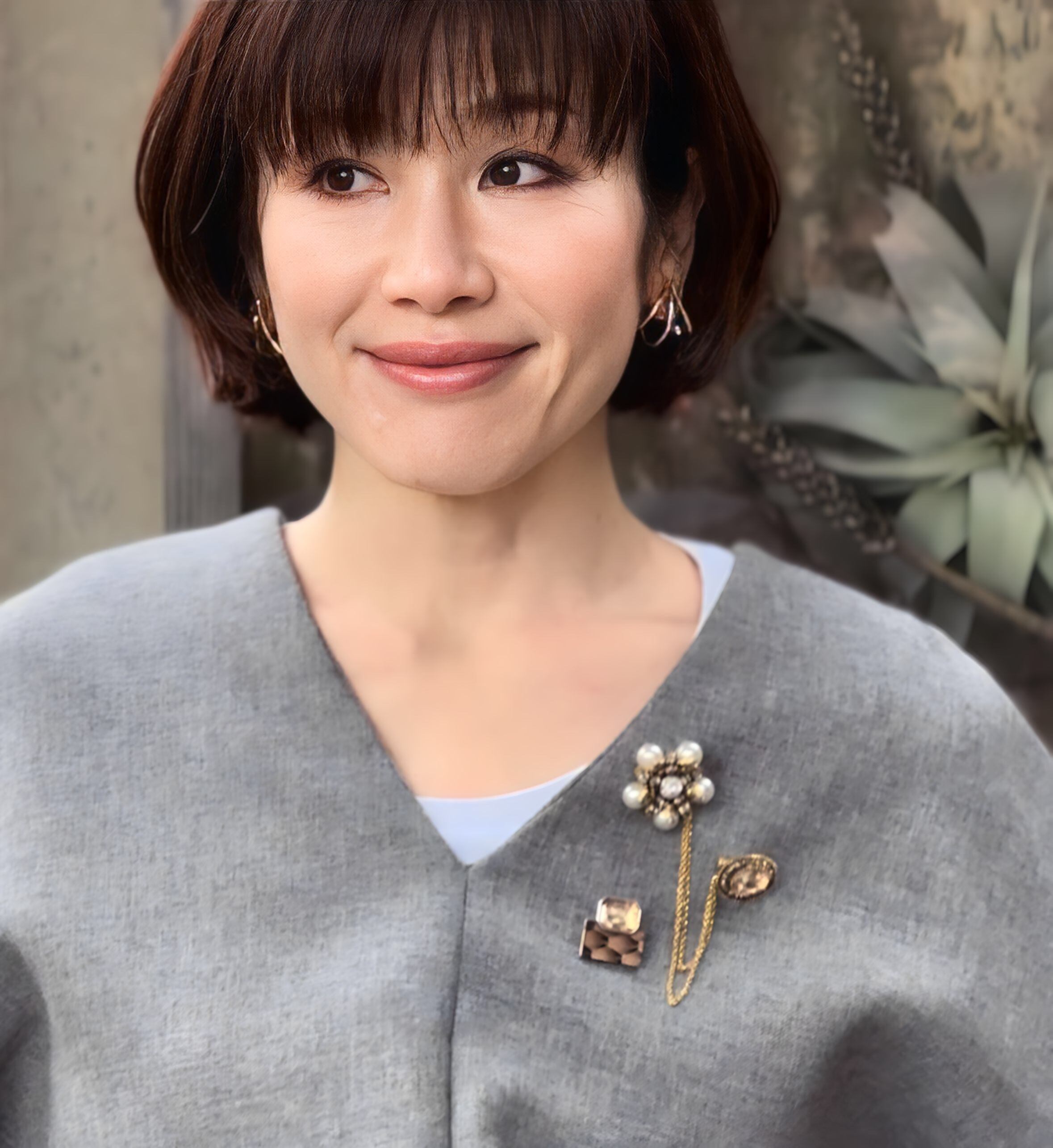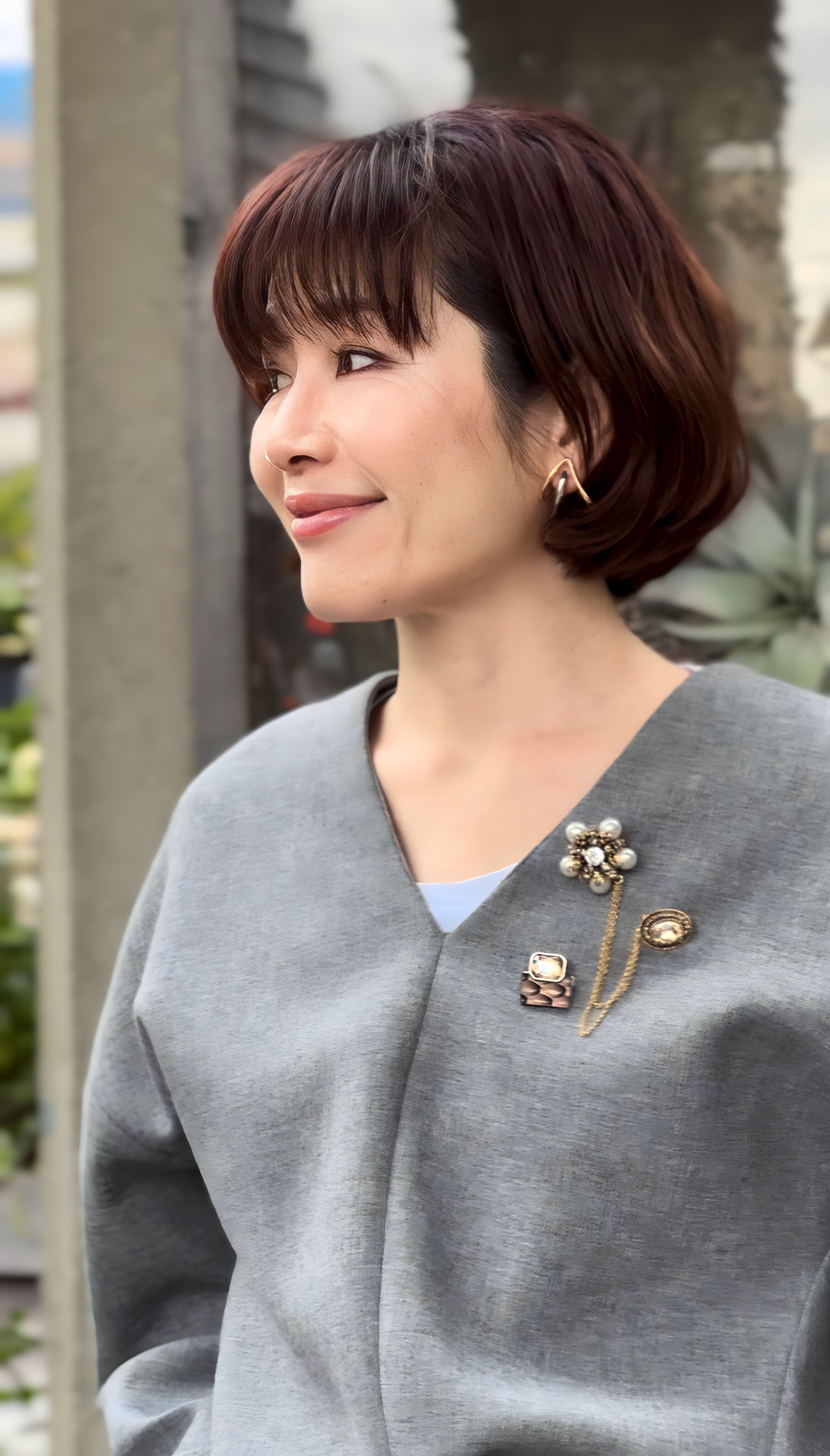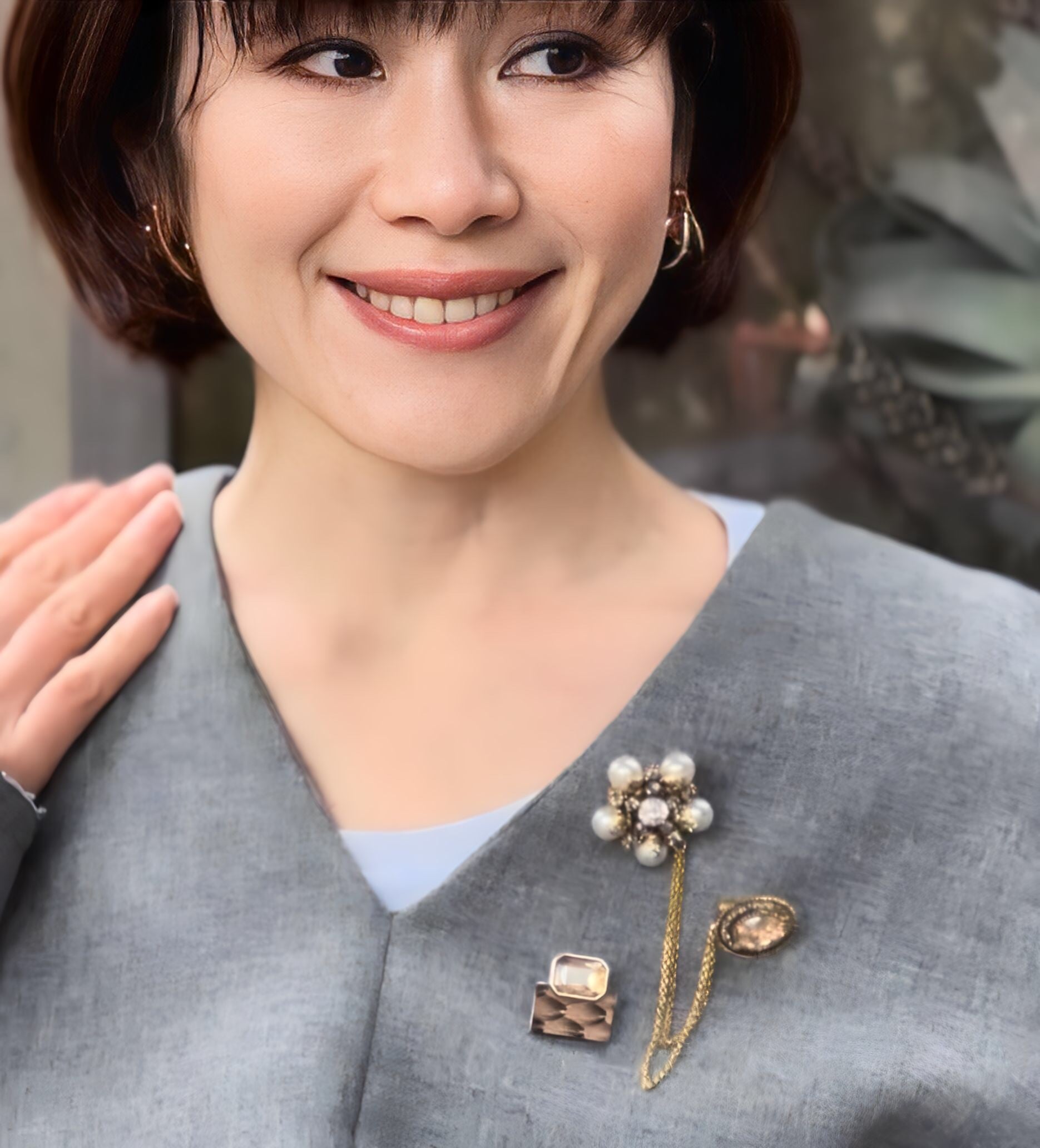 他のブローチやネックレスとの重ね付けをするとより個性が際立ちますね☆