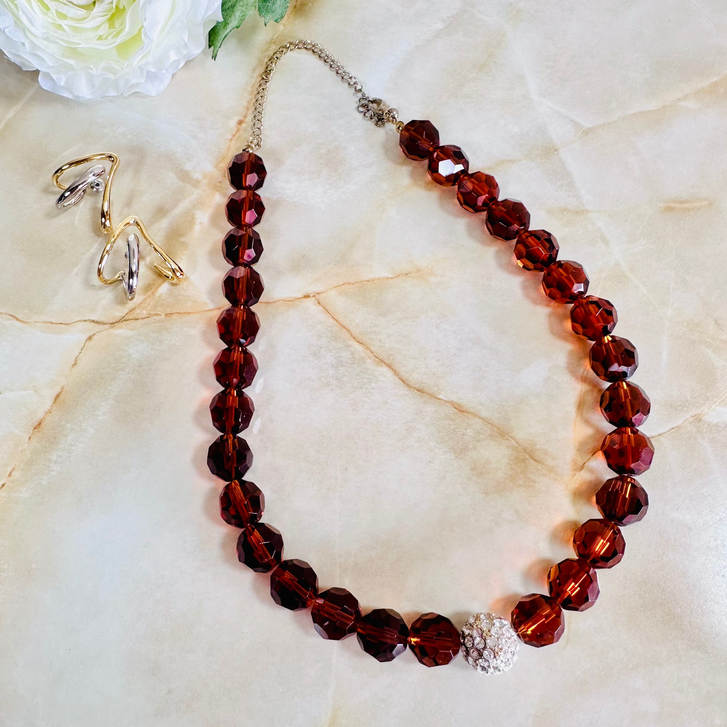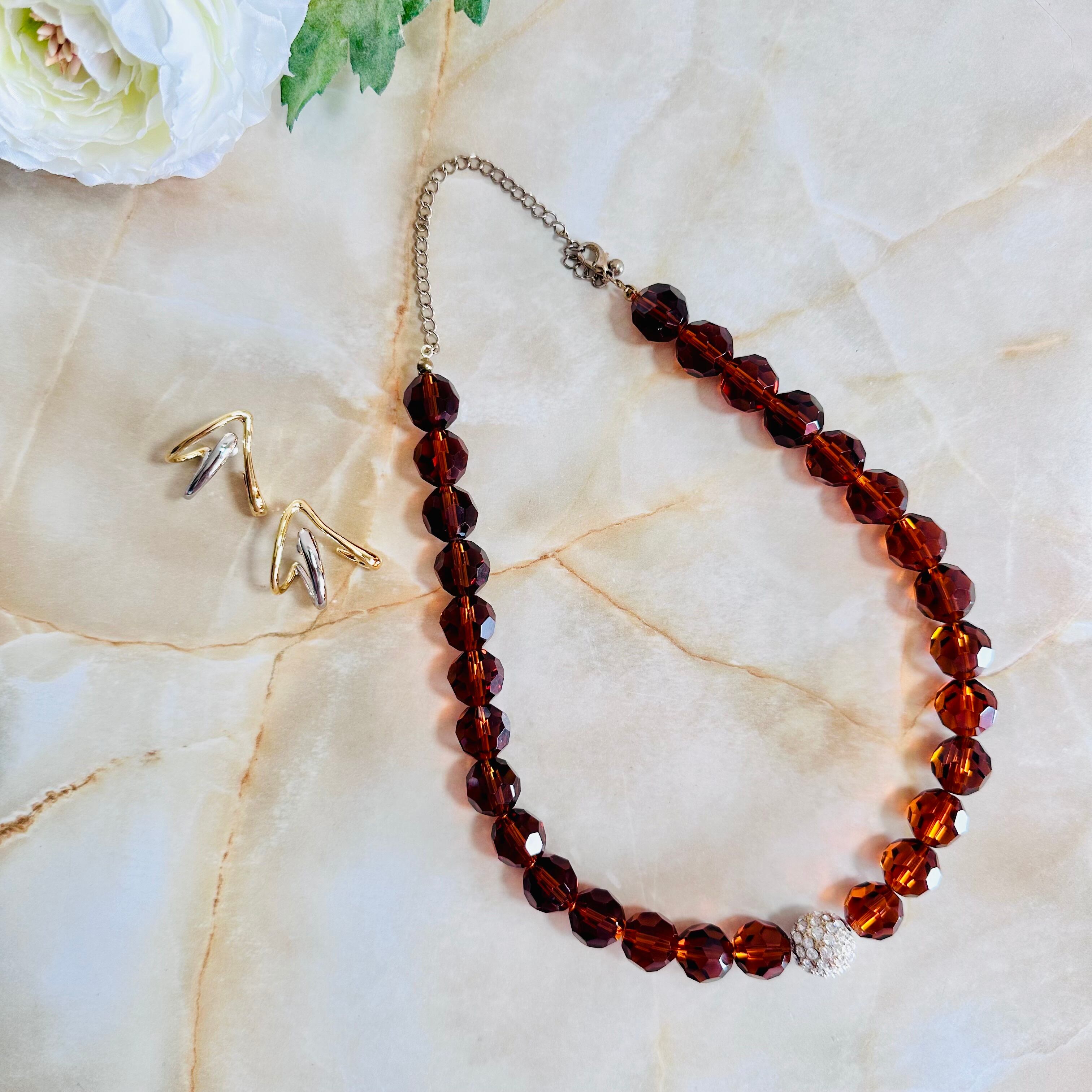 ブラウン、クリア✖️アンティークゴールドカラーのネックレスです。
