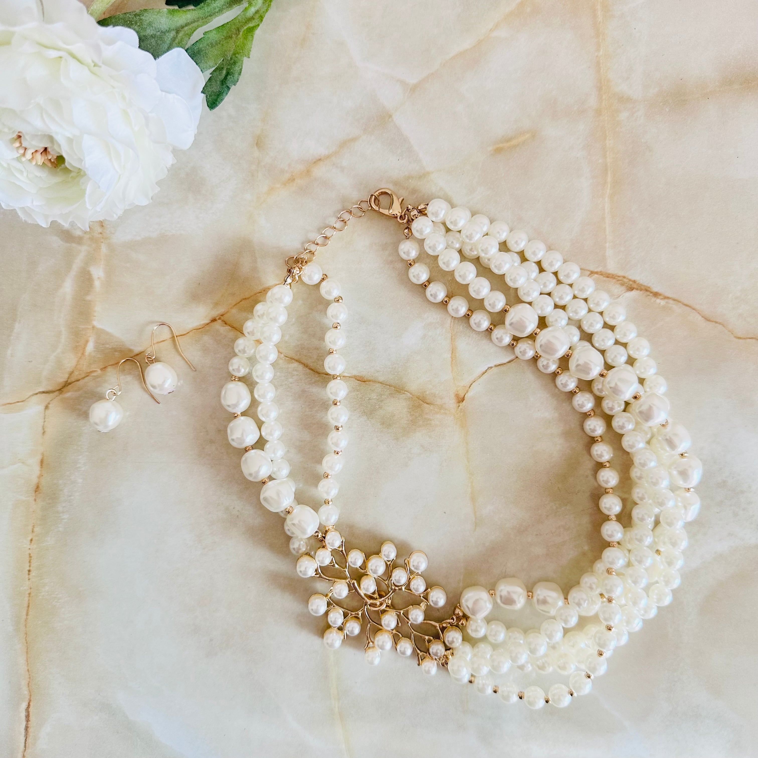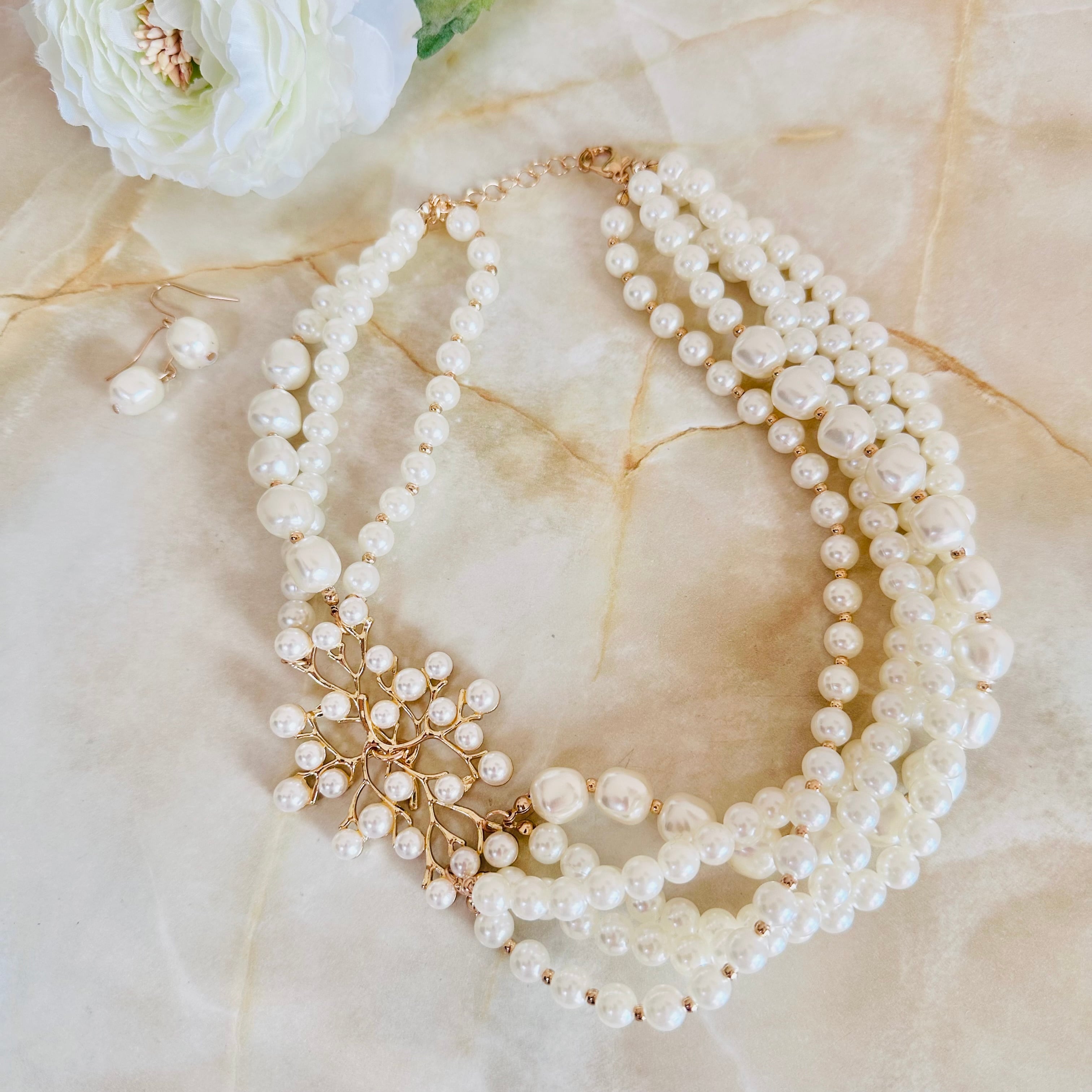 パール✖️ゴールドカラーのネックレスと同じパールを使用したピアスのセットです。