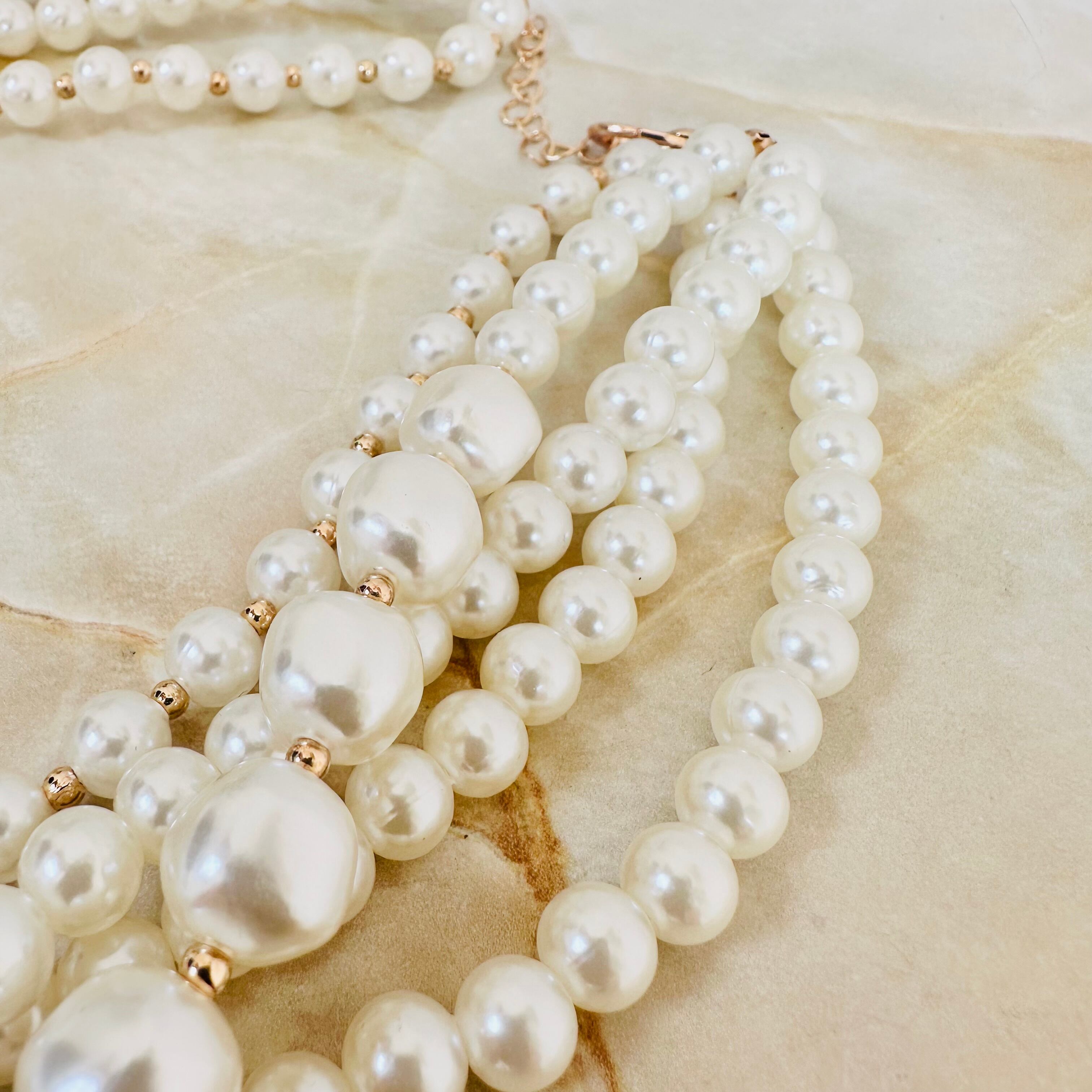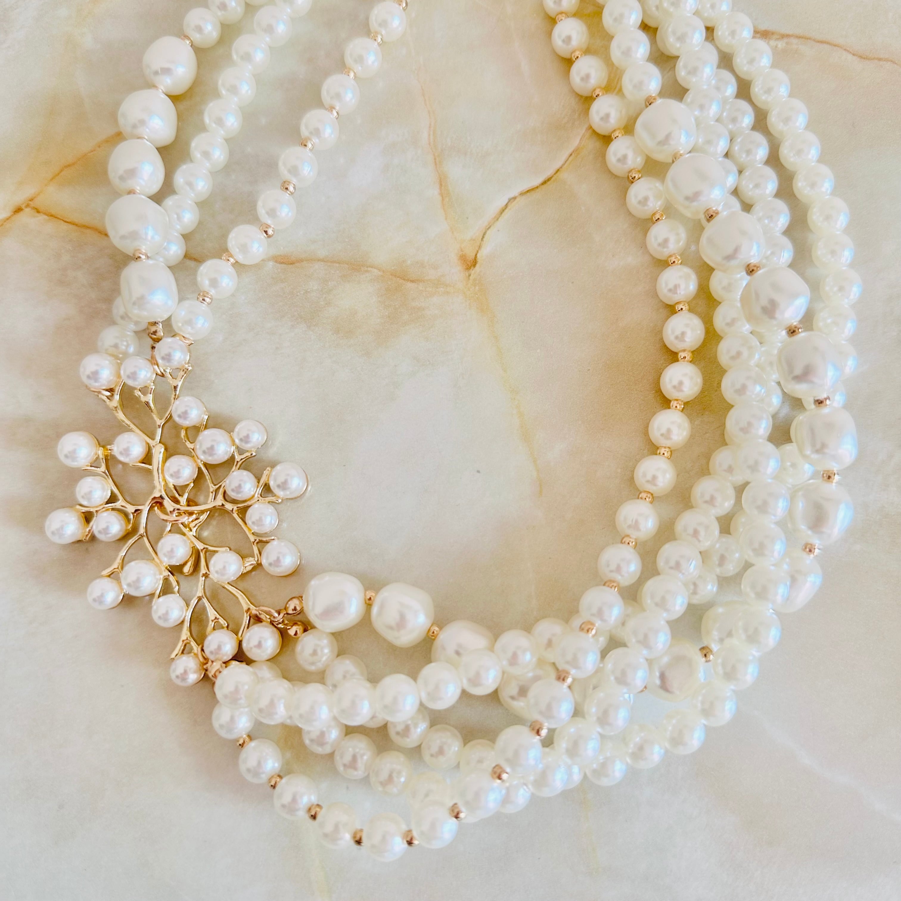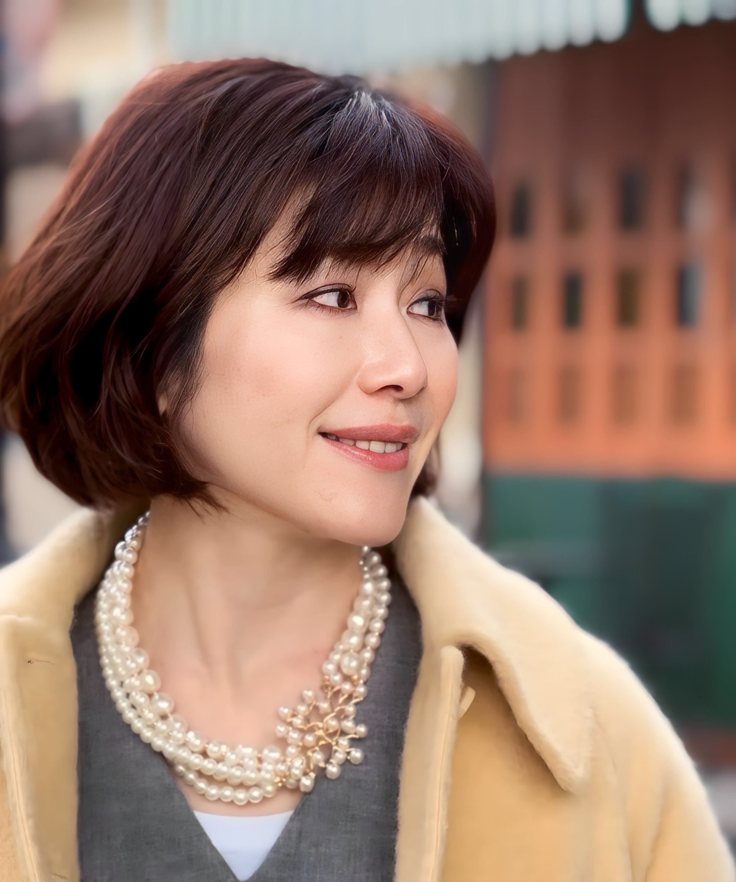 上品なパールの輝きが、首元を優雅に演出してくれます。