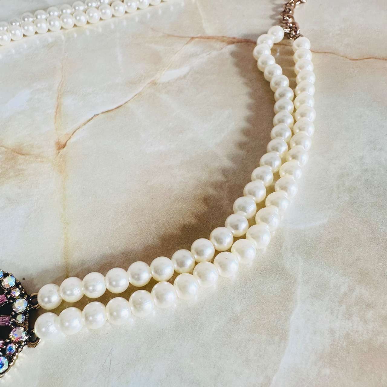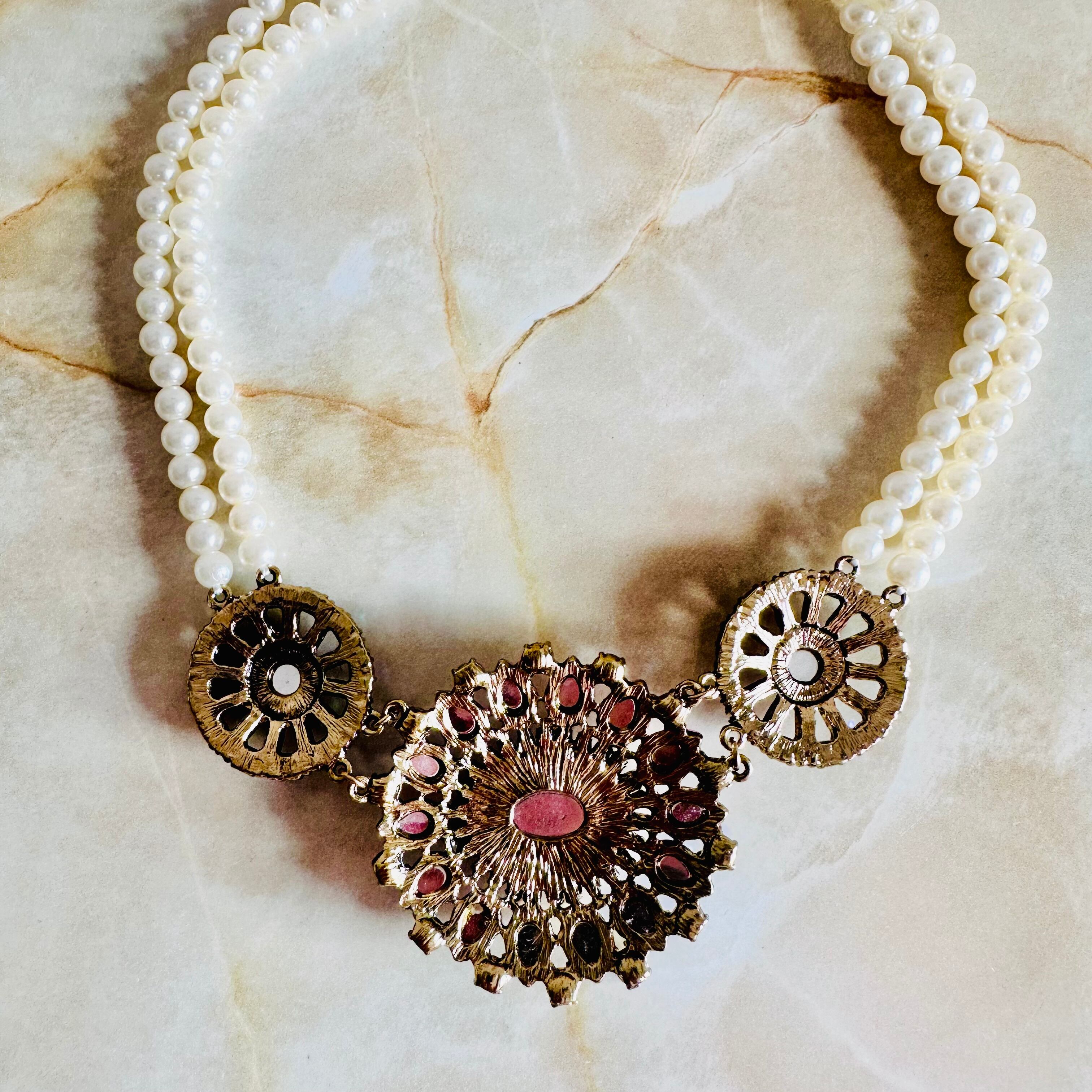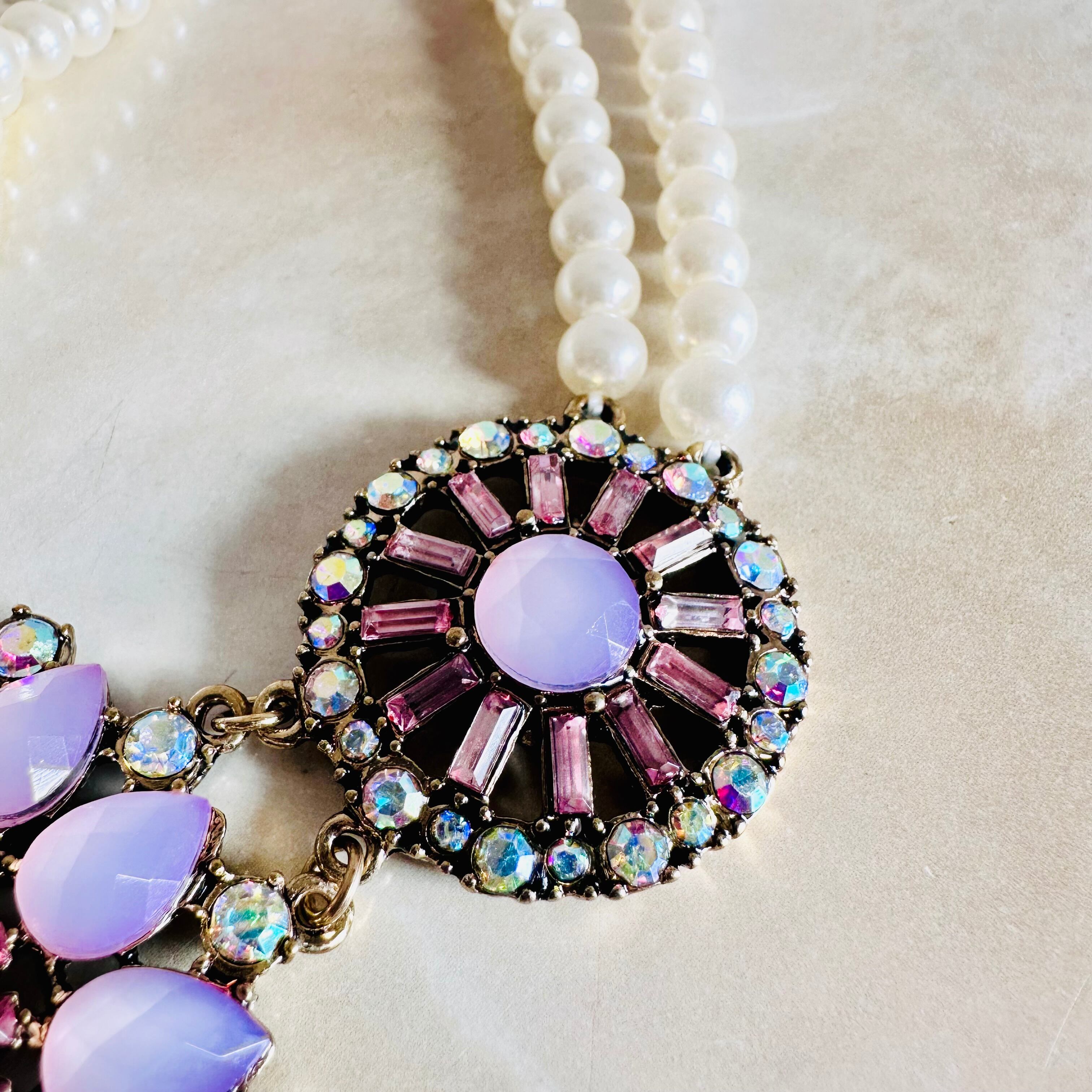 パール、ピンク、オーロラ✖️アンティークゴールドカラーのネックレスです。