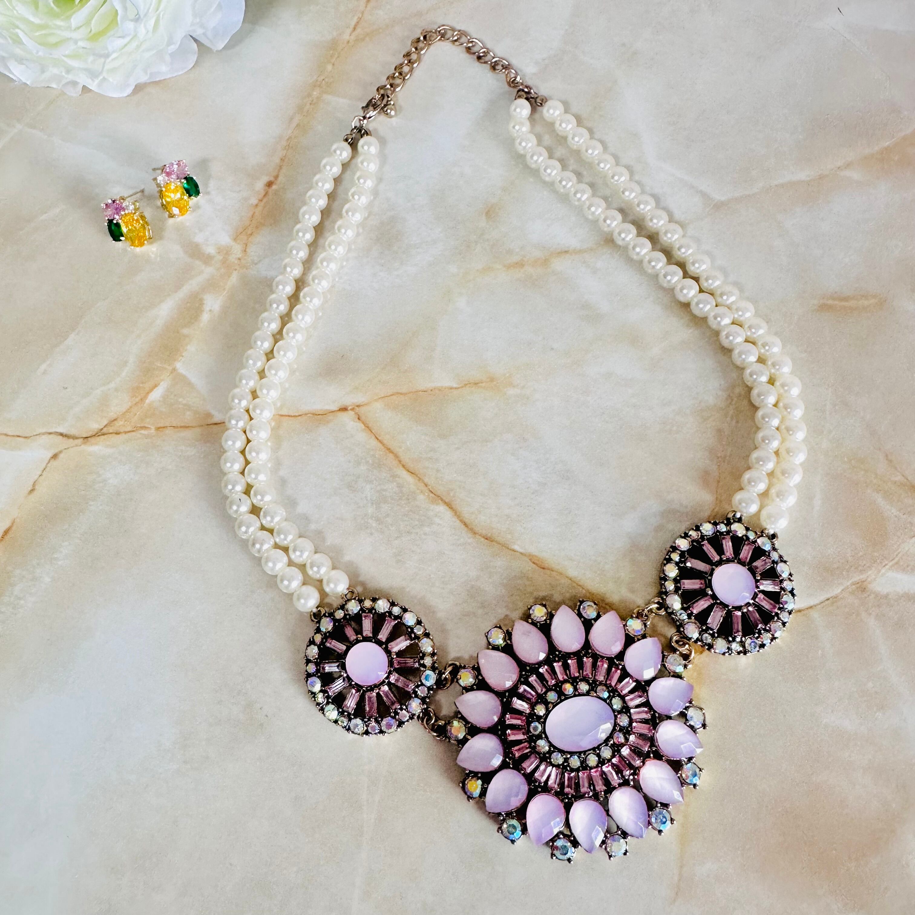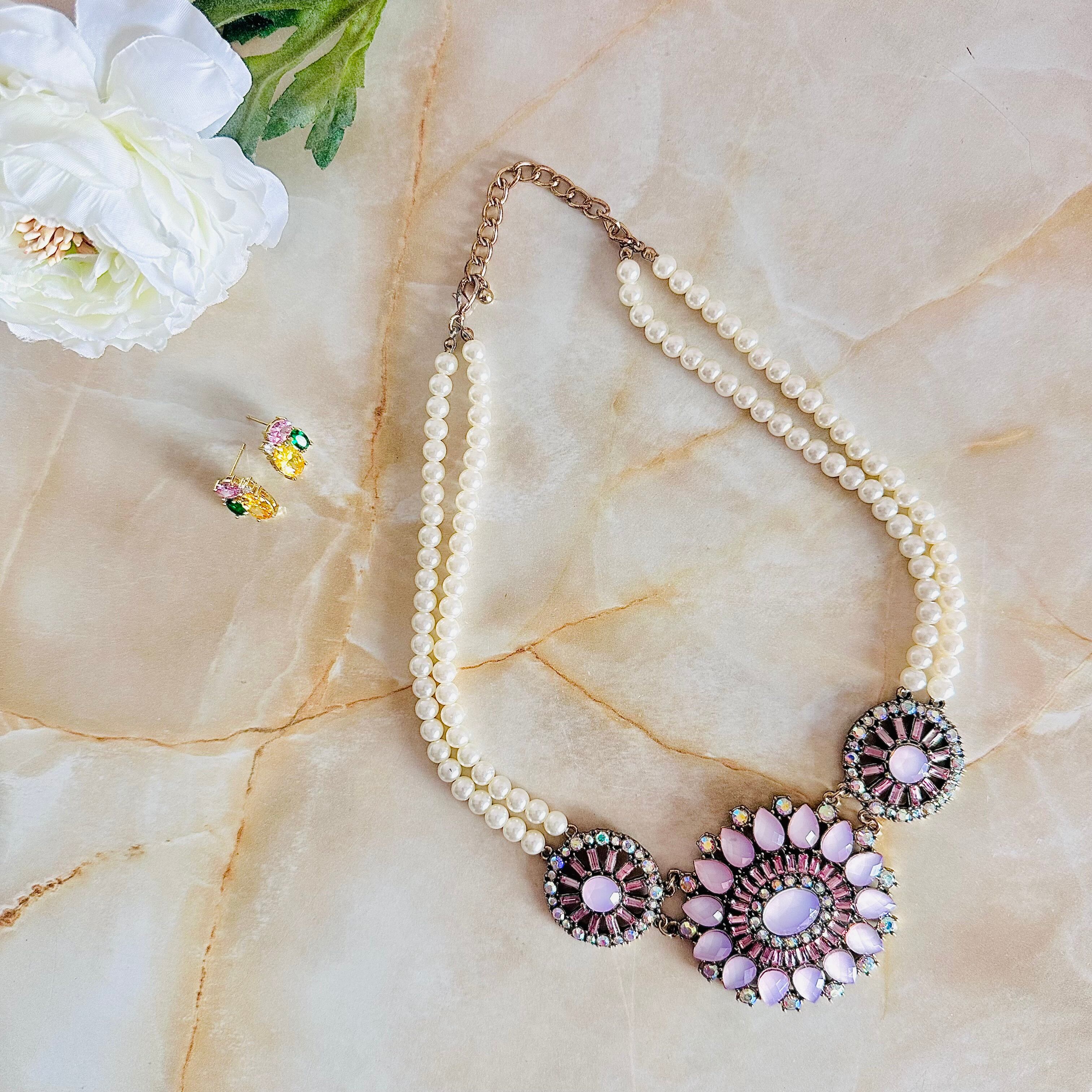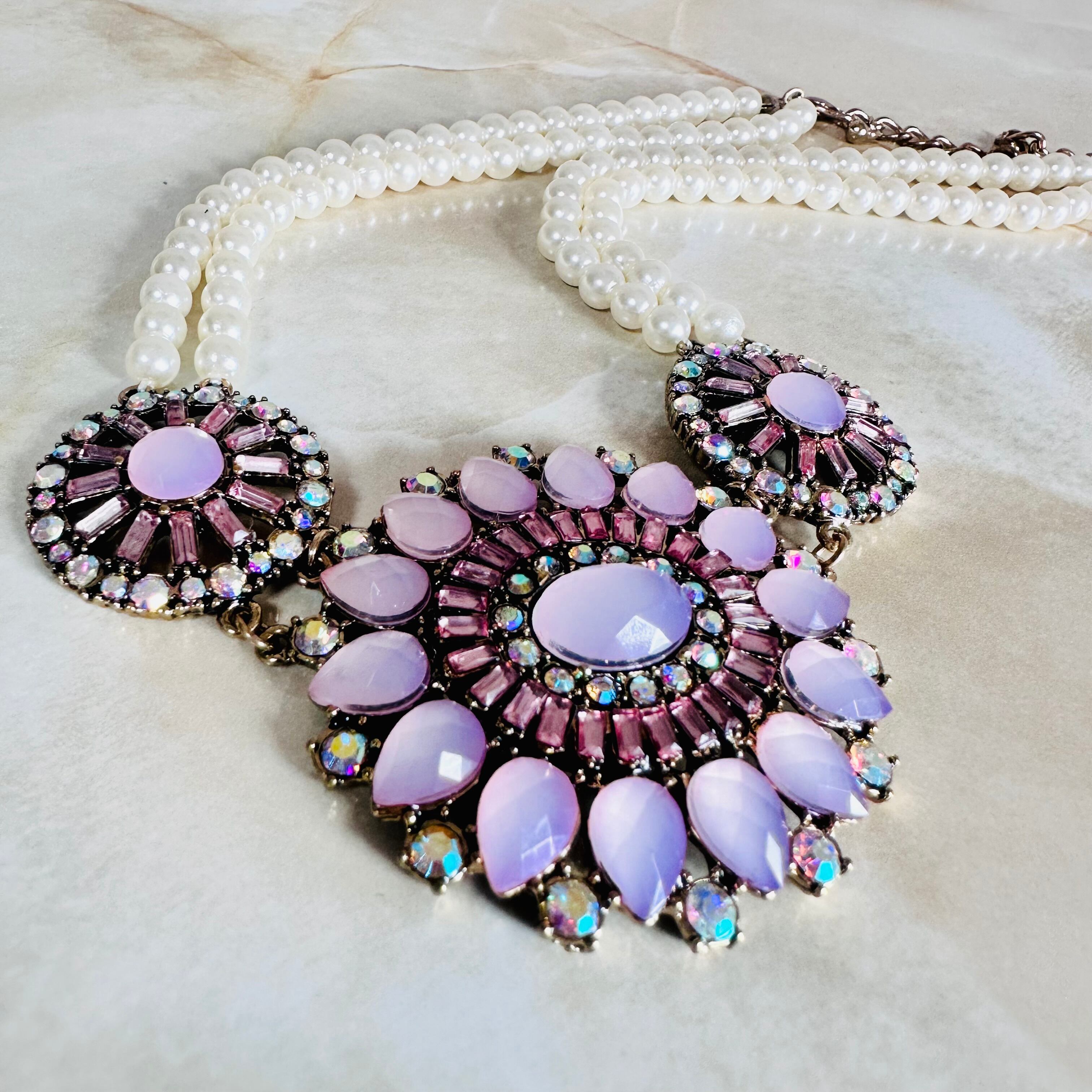 パール、ピンク、オーロラ✖️アンティークゴールドカラーのネックレスです。