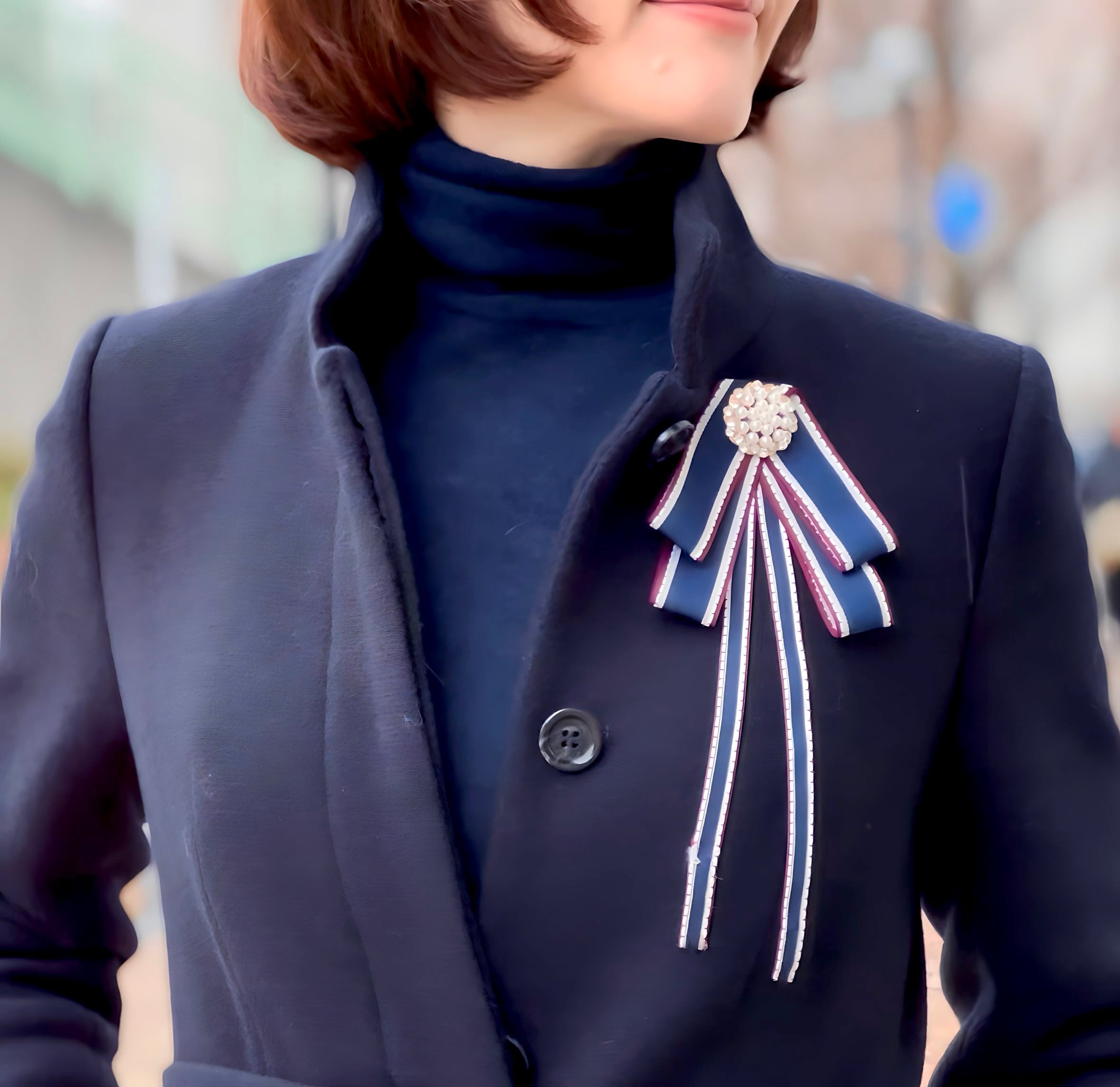 ネイビー、パール✖️シルバーカラーのブローチです。
