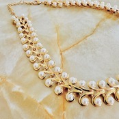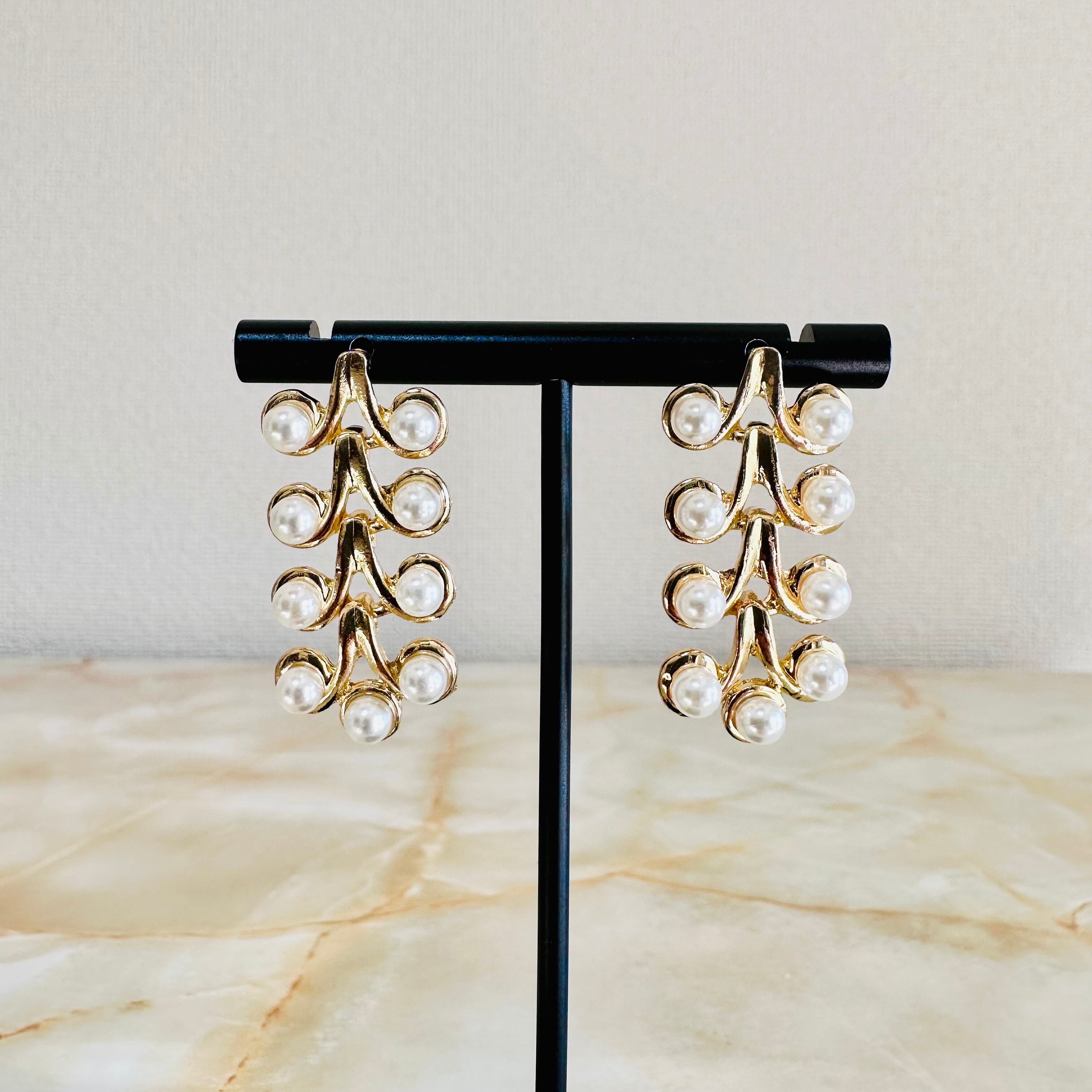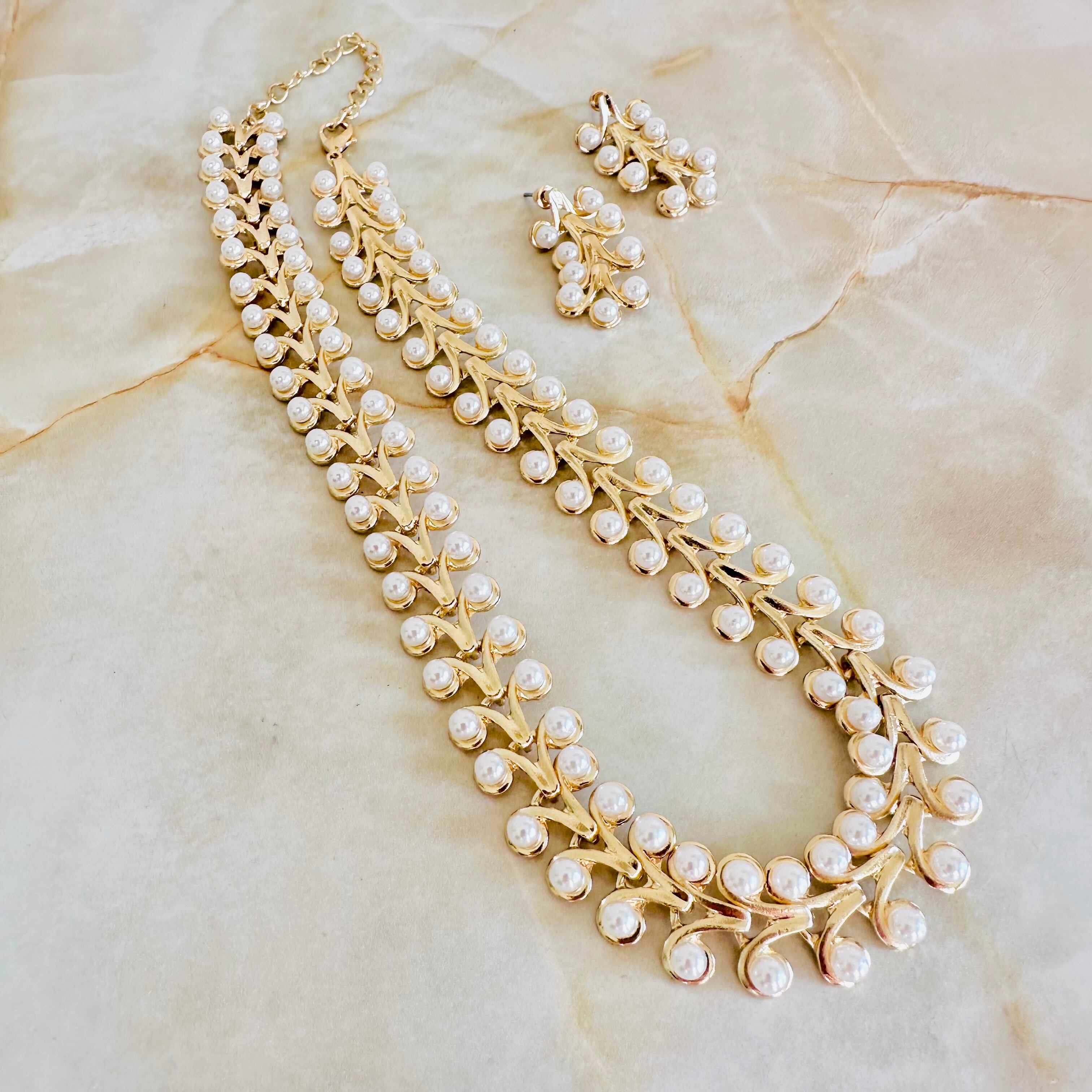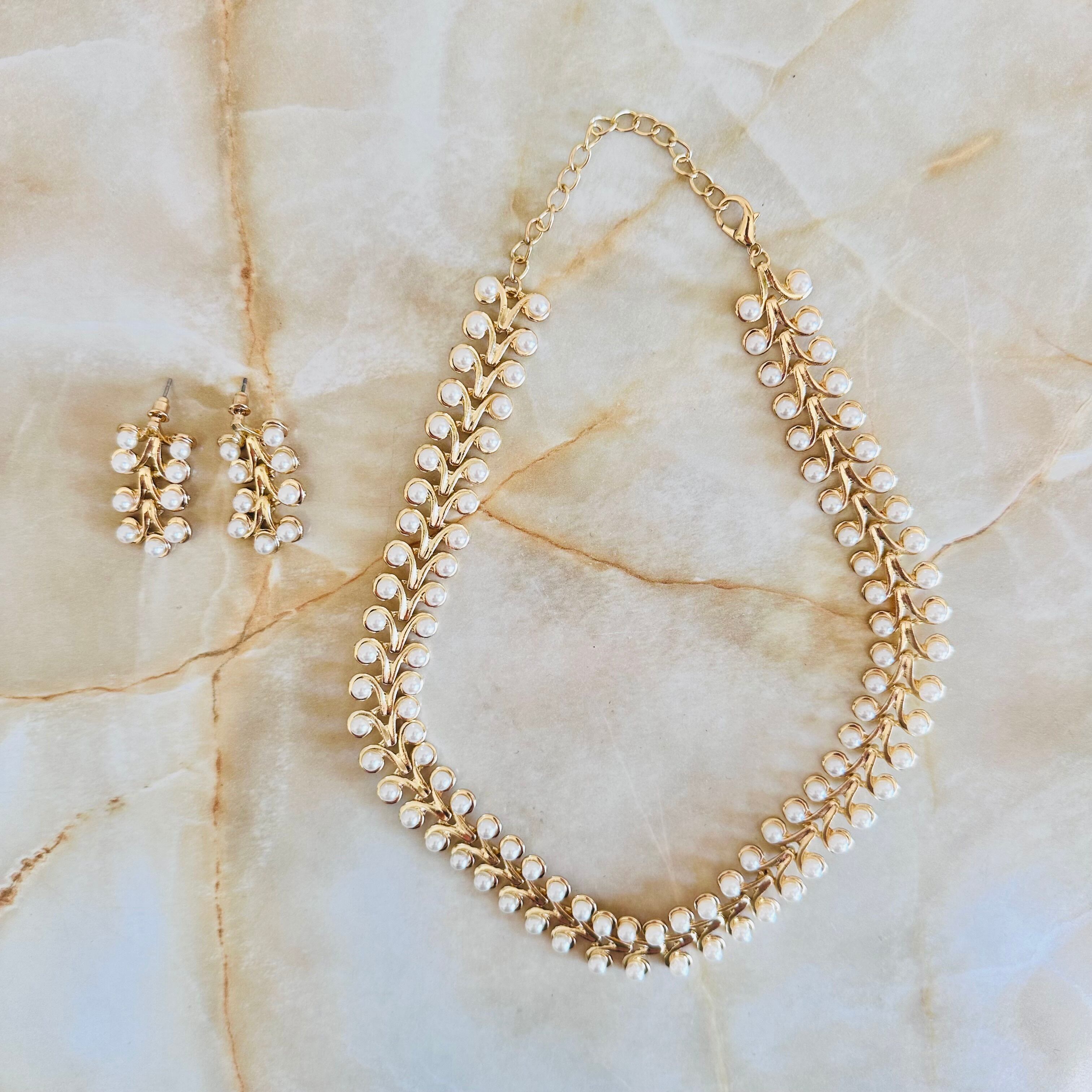パール、ゴールドカラーのネックレスとピアスのセットです。