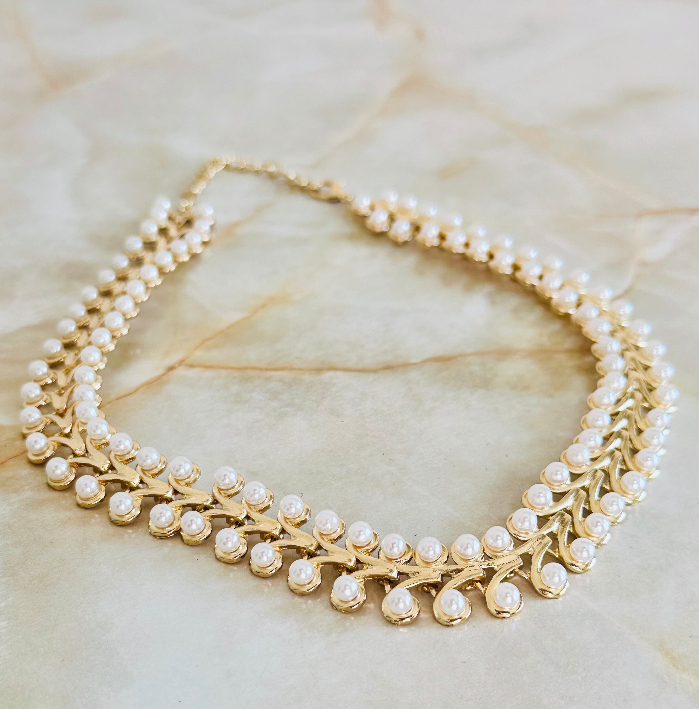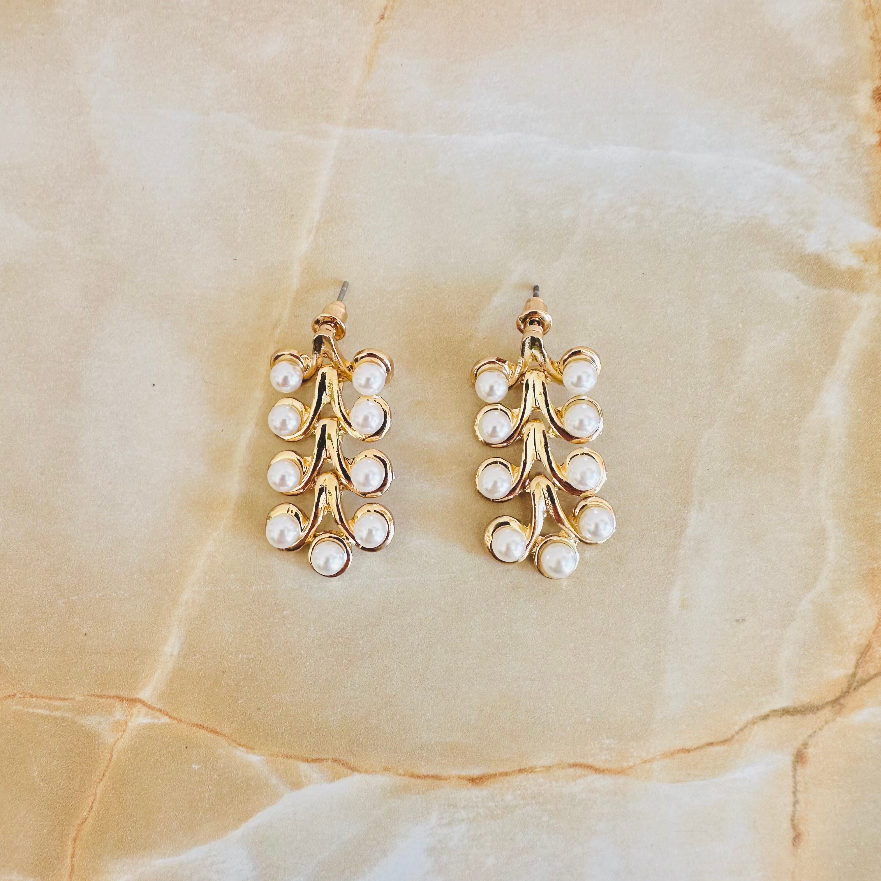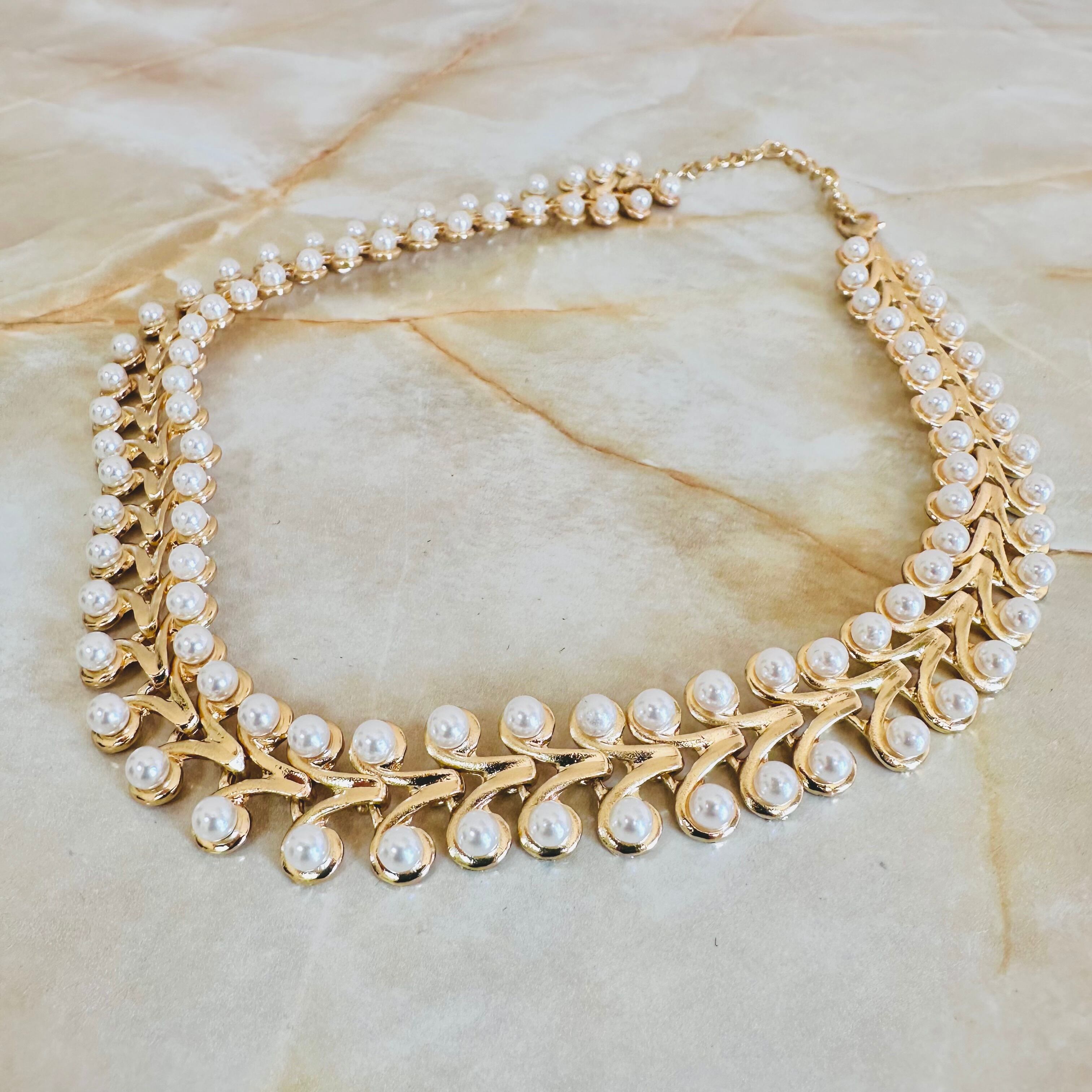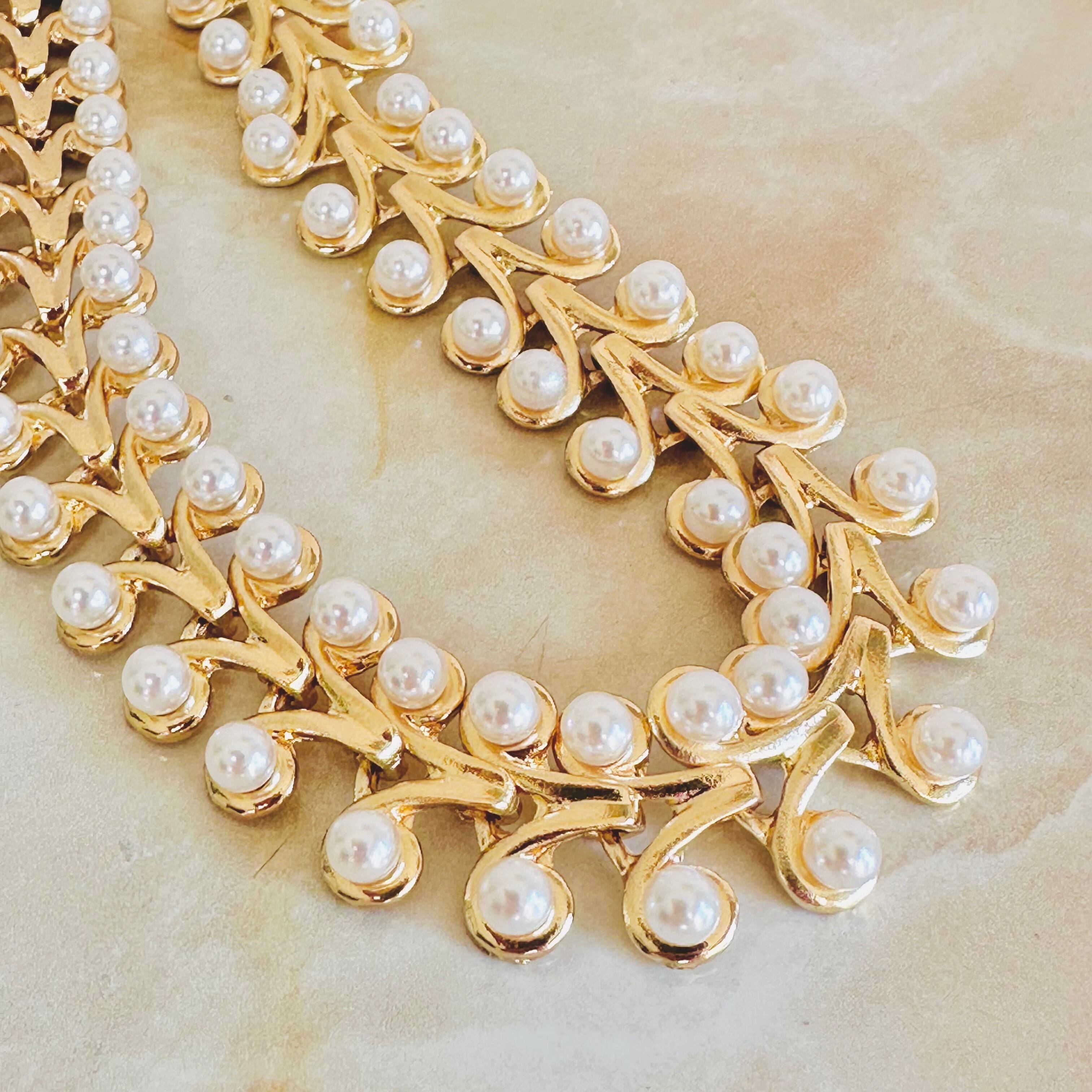 パール、ゴールドカラーのネックレスとピアスのセットです。