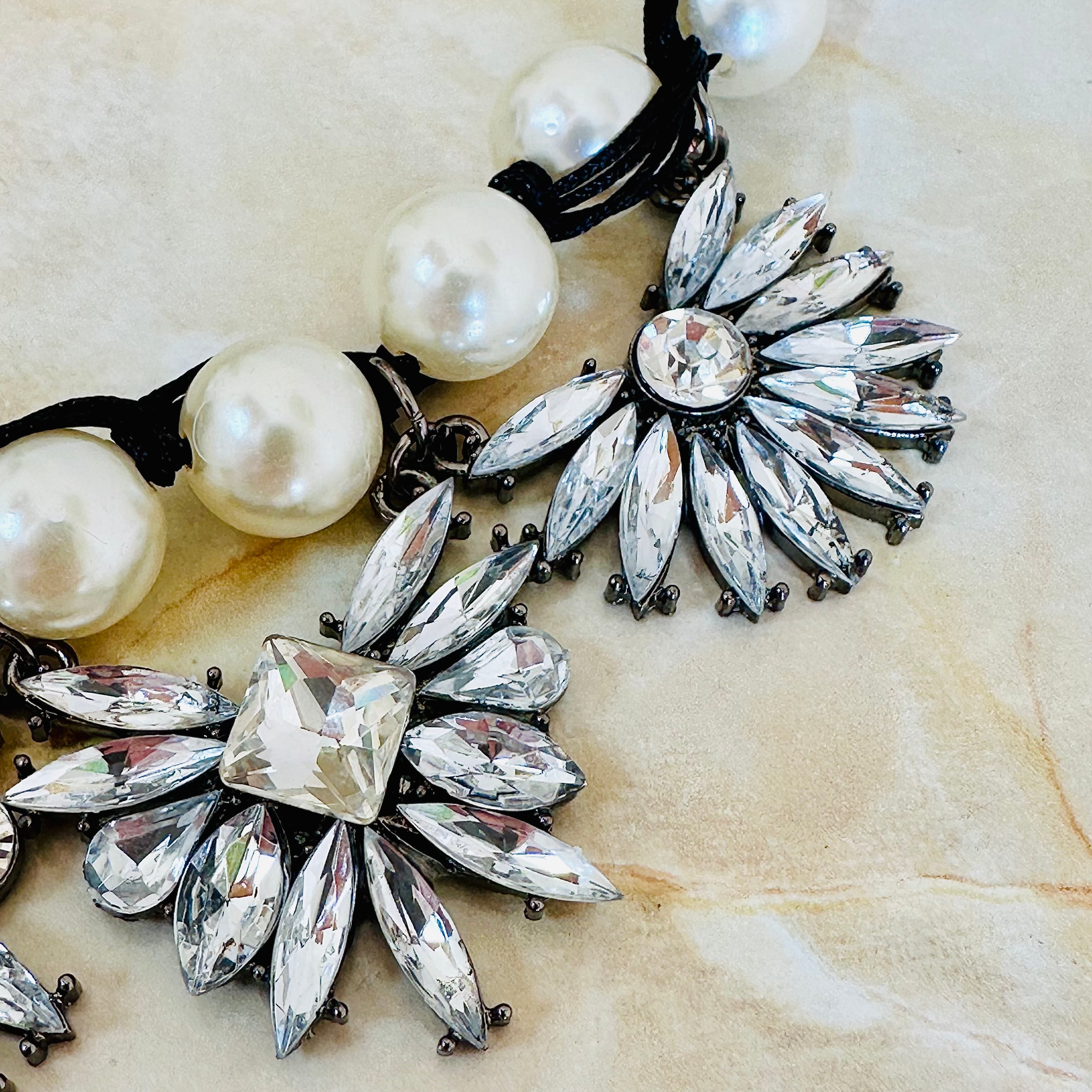 パールに華やかなフラワーモチーフのビジューをプラスしたゴージャスなデザインが目を惹きます。