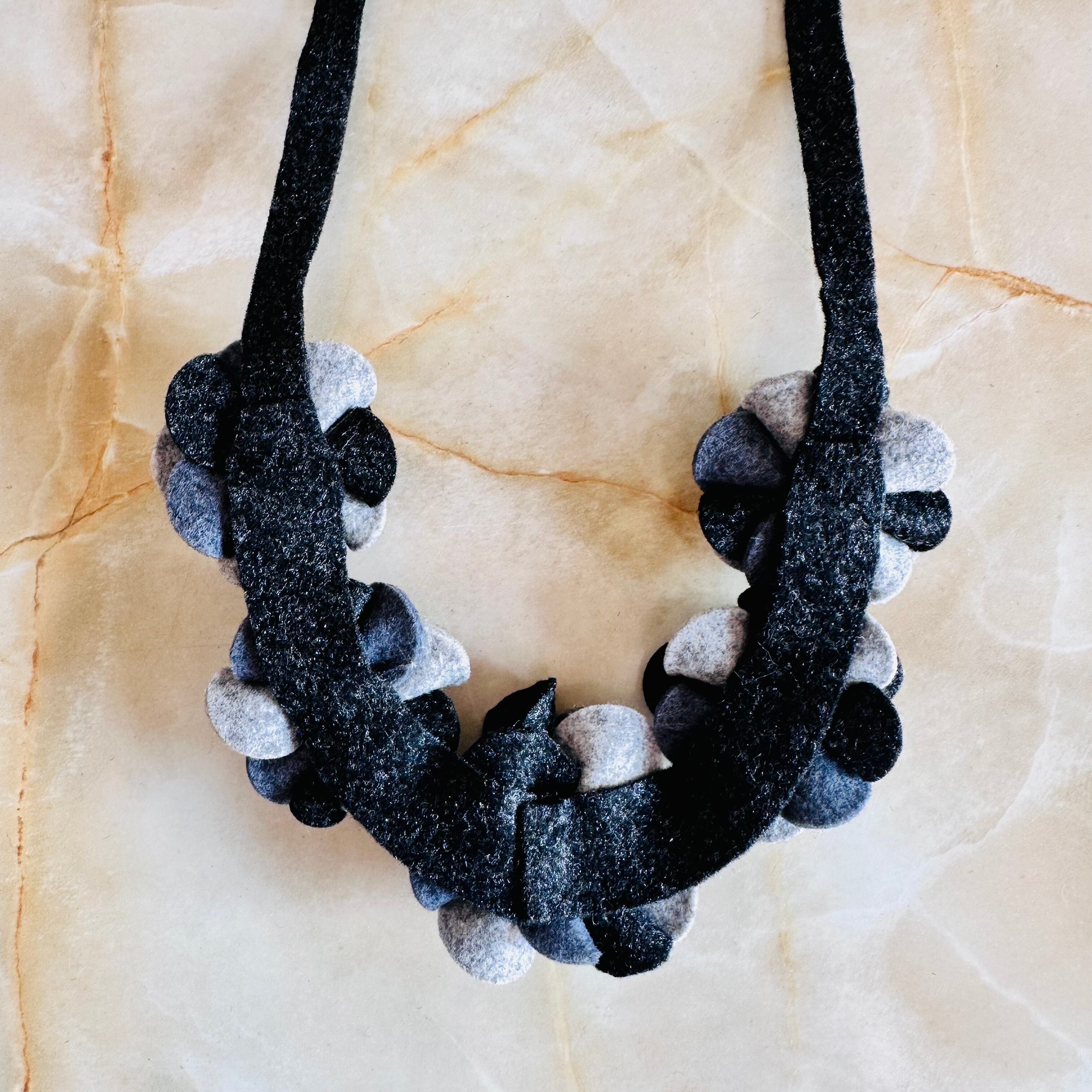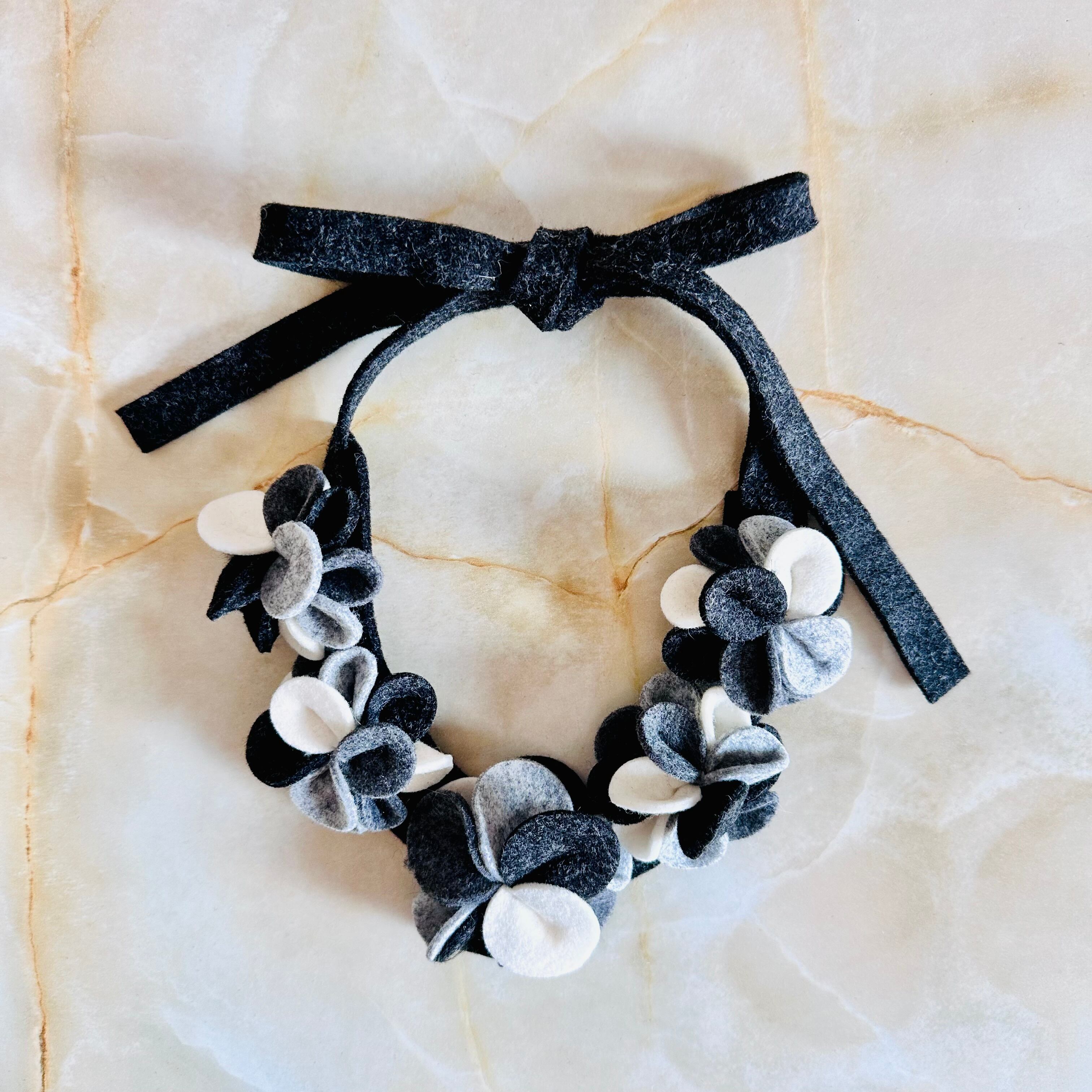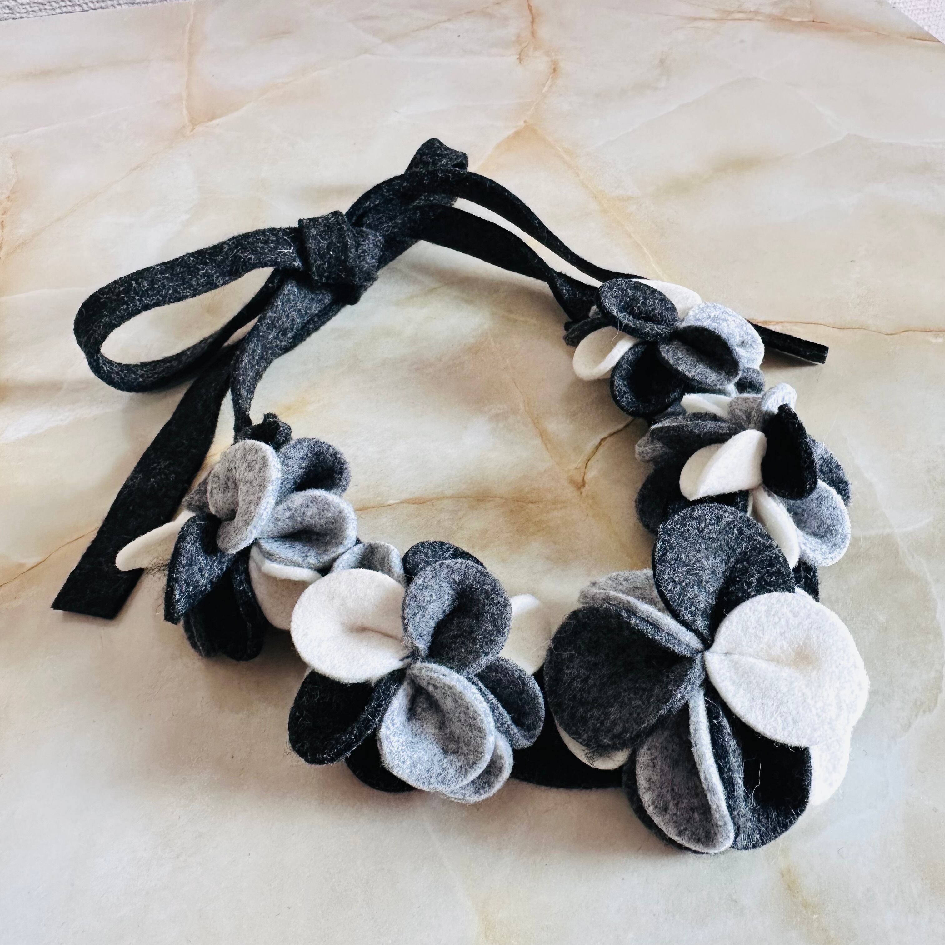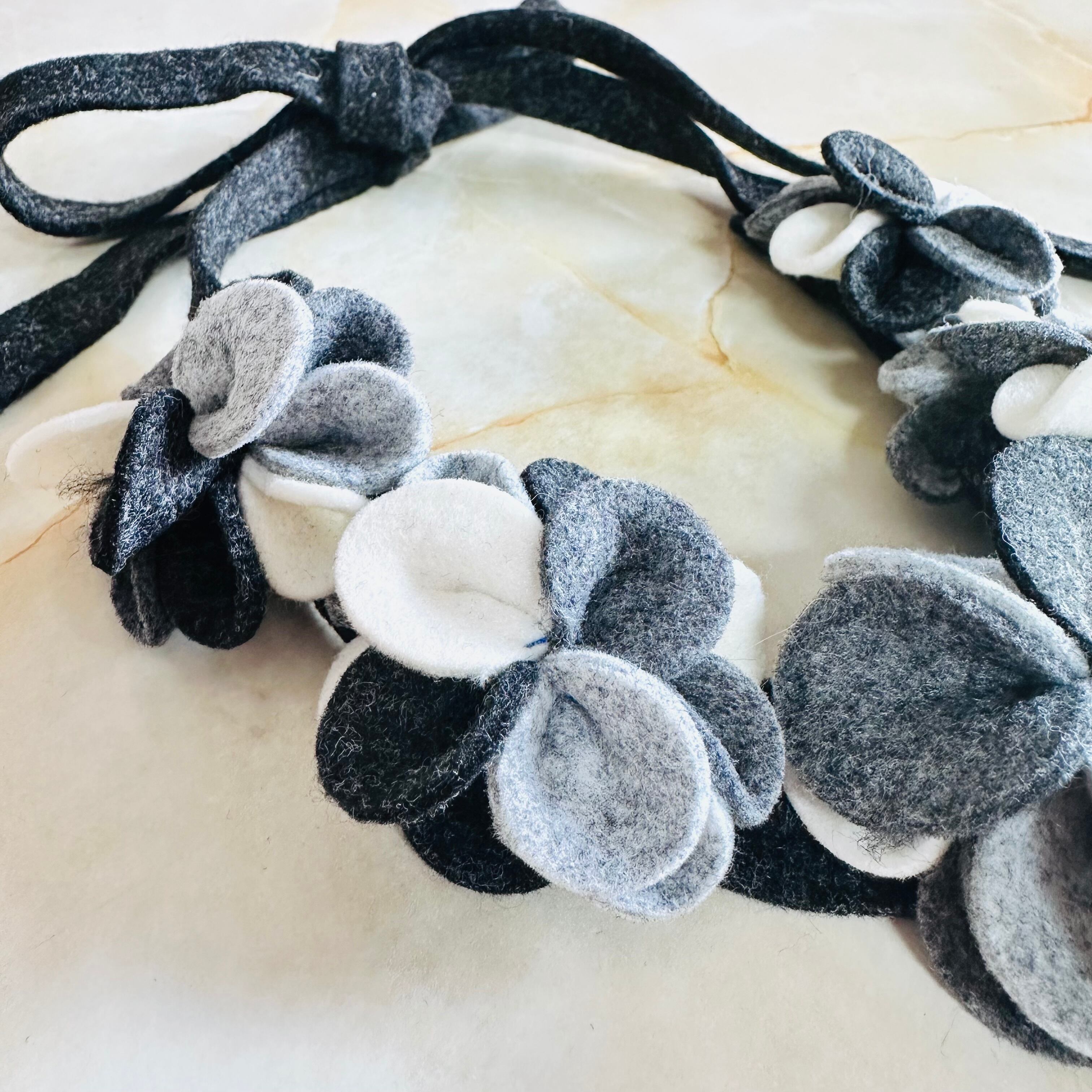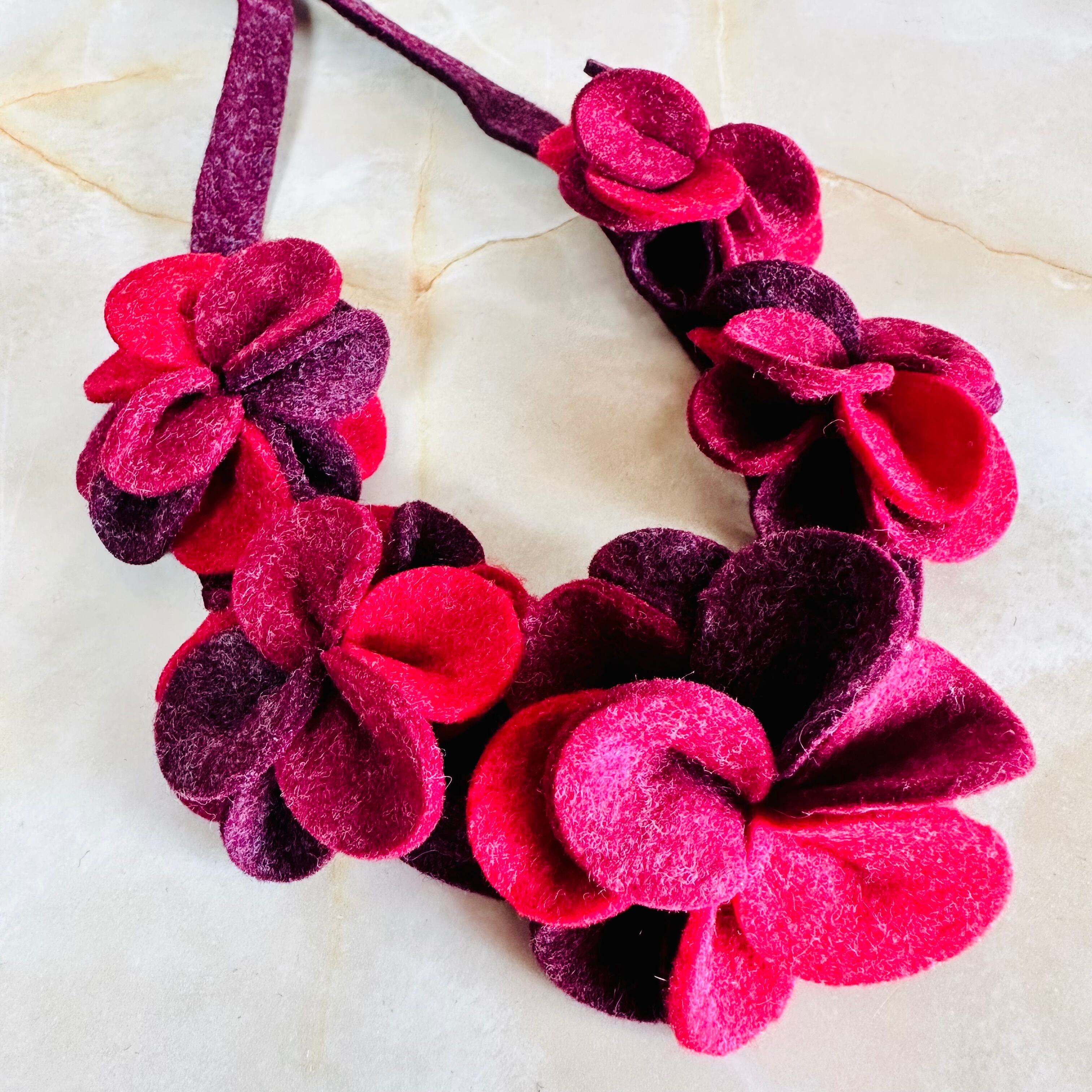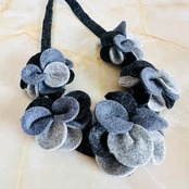 それぞれ同系の3色のフェルトを使用して、キュートなフラワーモチーフに仕上げました。