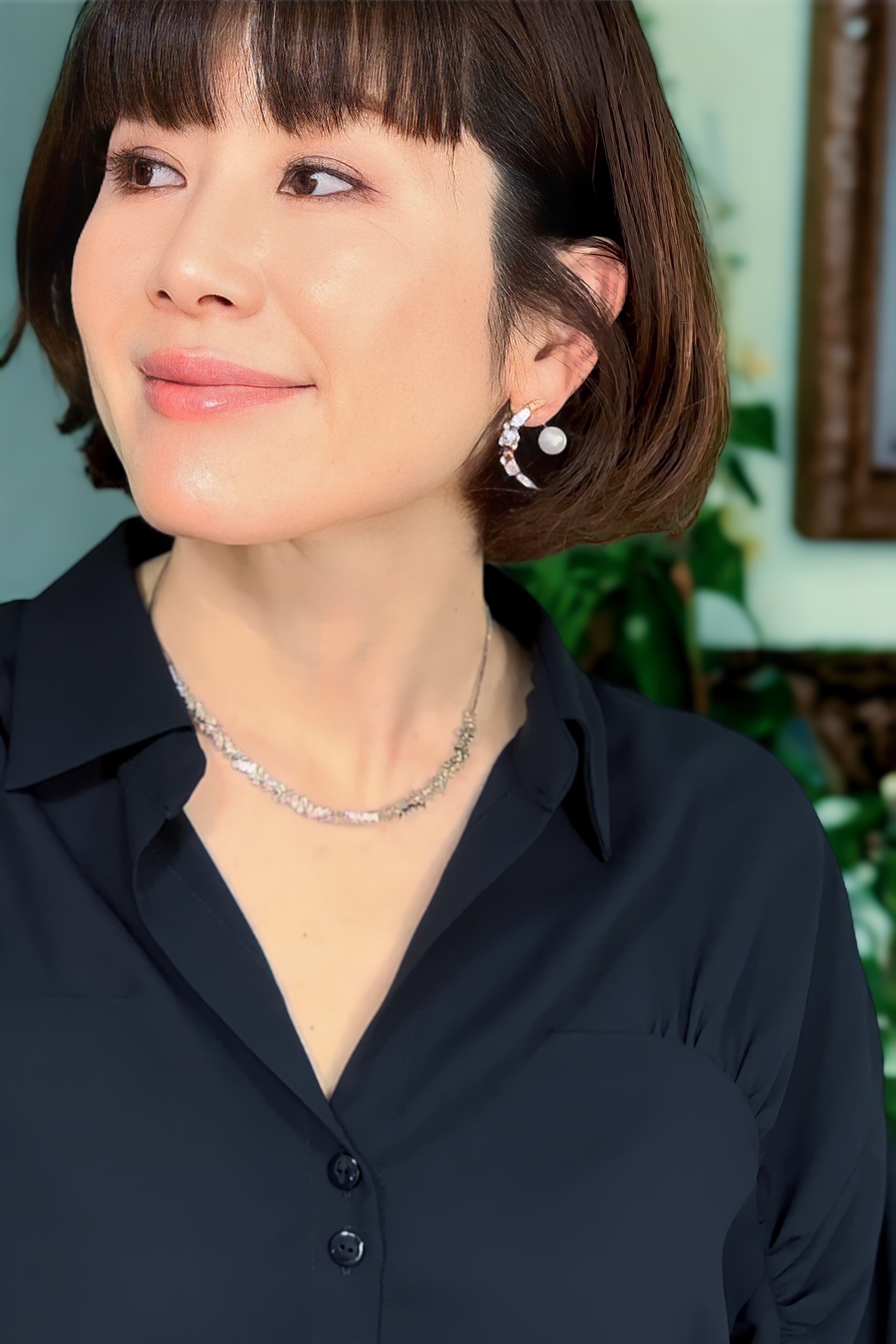 天然淡水パールを使用しキャッチャーにもデザインのある2wayで楽しんでいただけるデザインです。