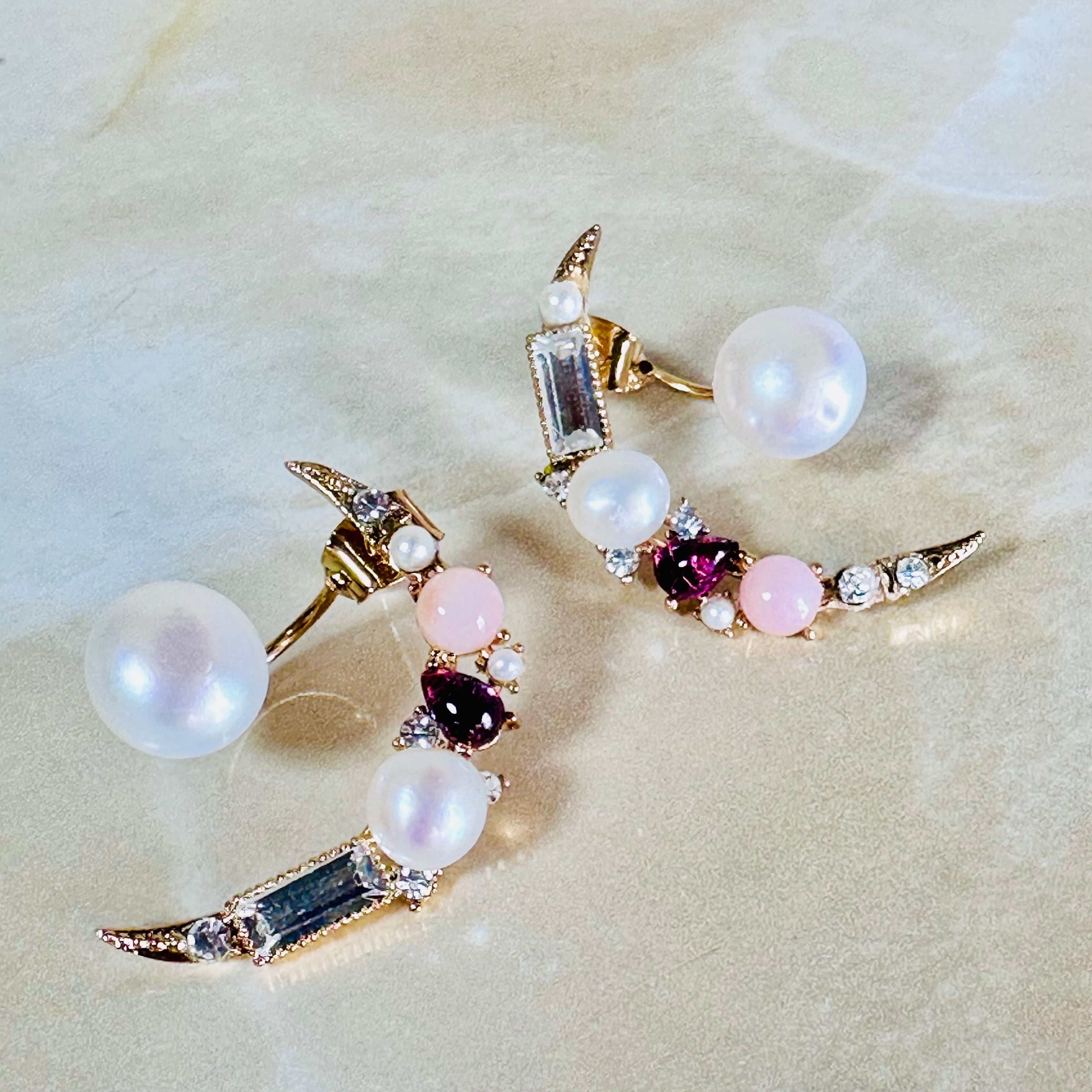 パール、クリア、ピンク、パープル✖️ゴールドカラーのピアスです。